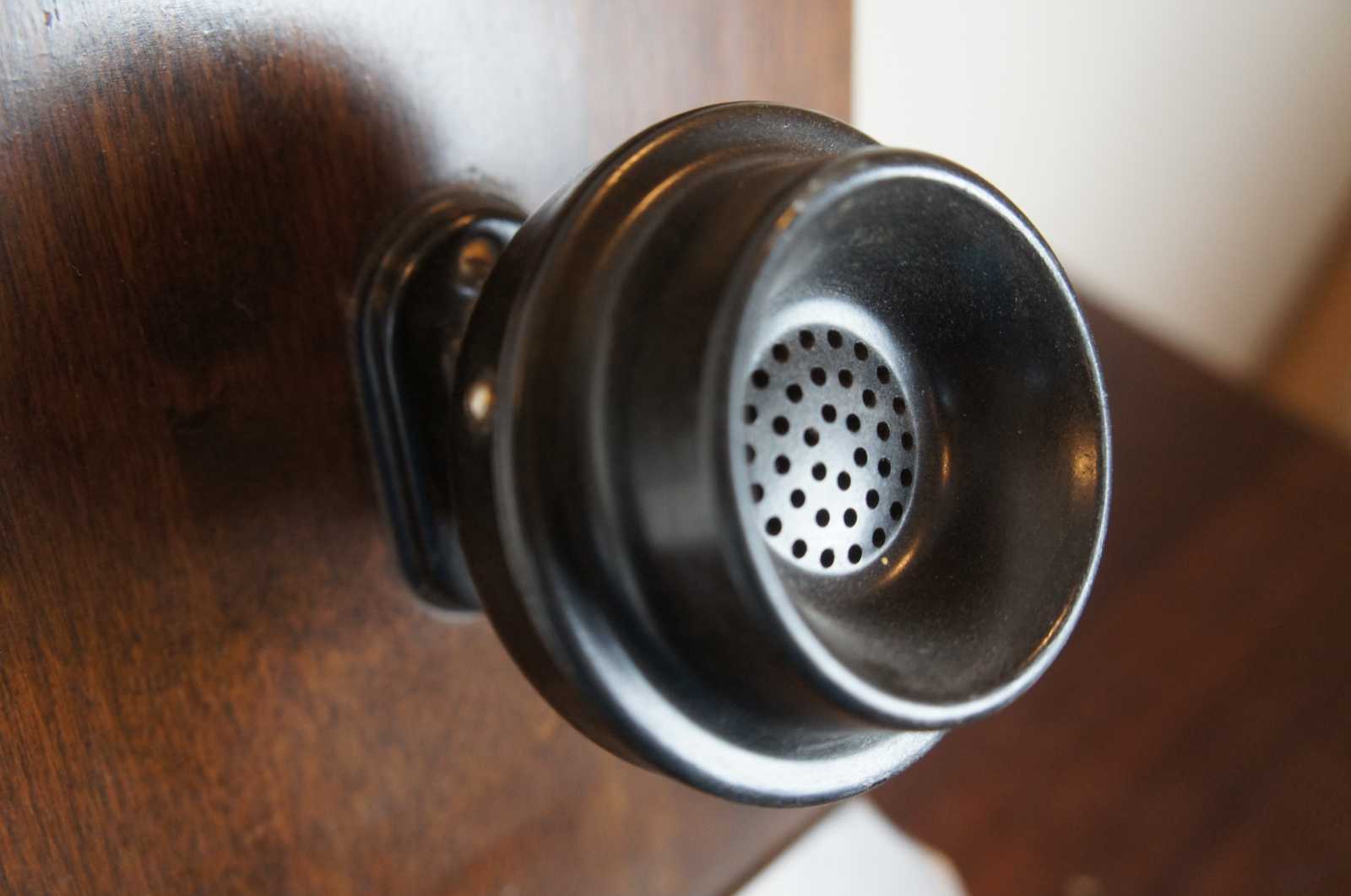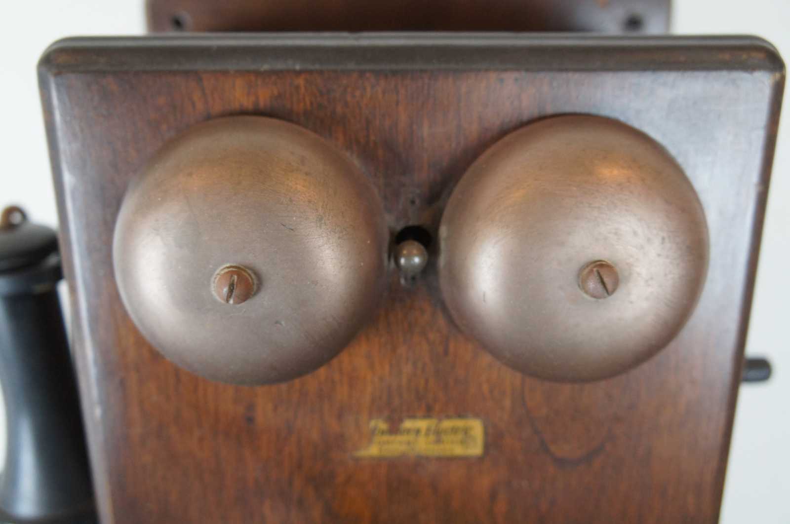 Antique Northern Electric Companyhand crank magneto telephone. Made of oak circa 1910s in Montreal Canada.