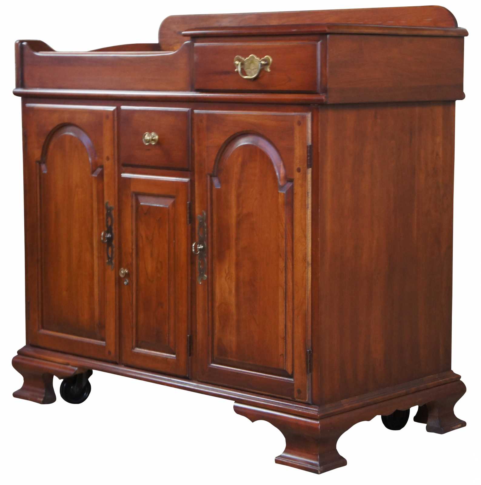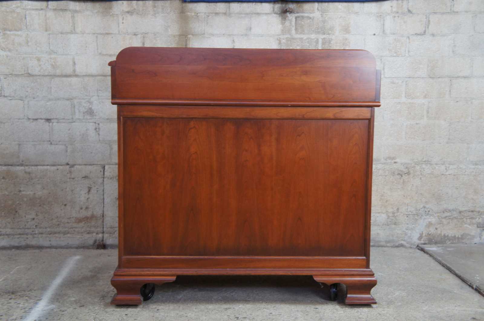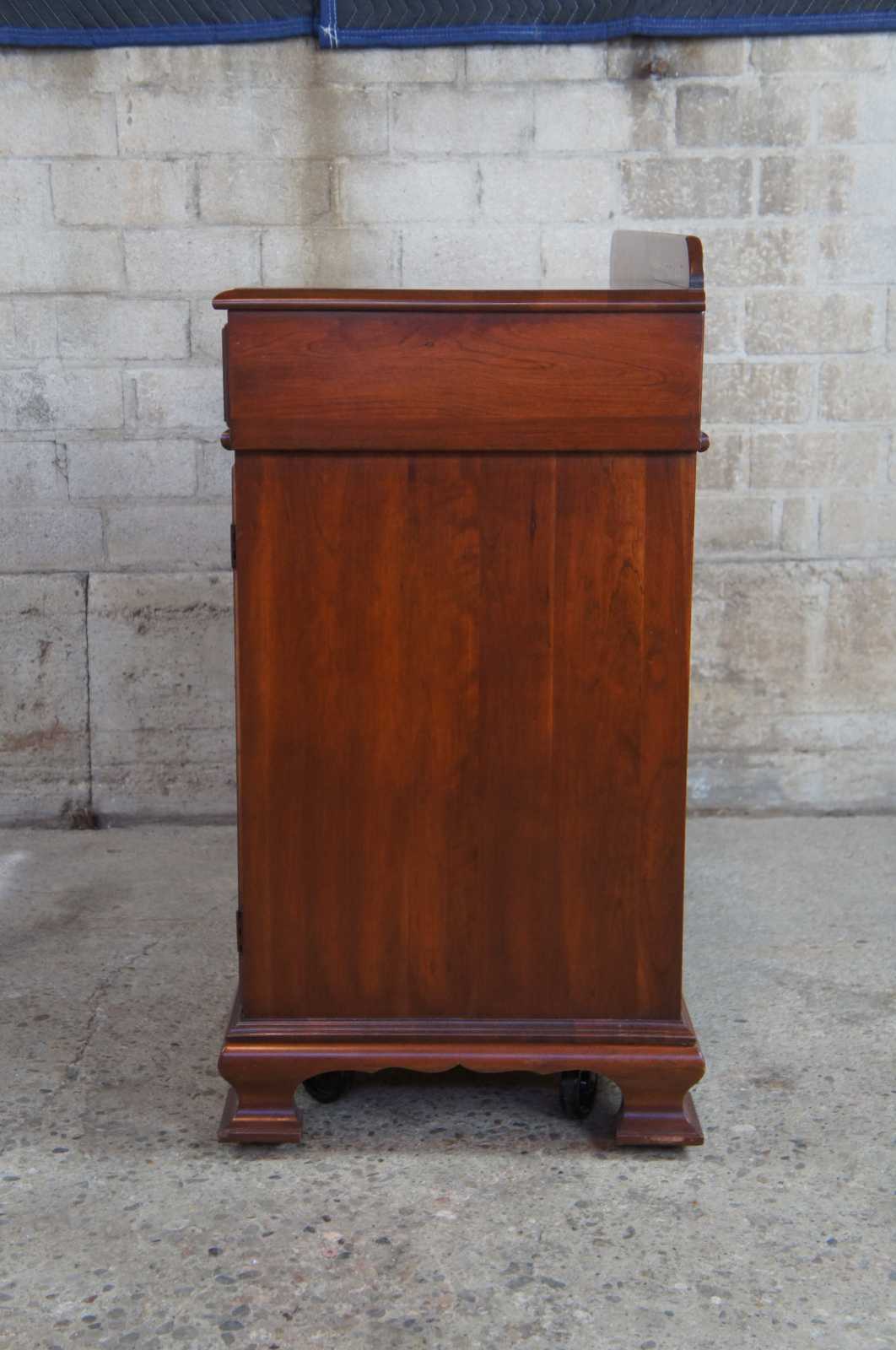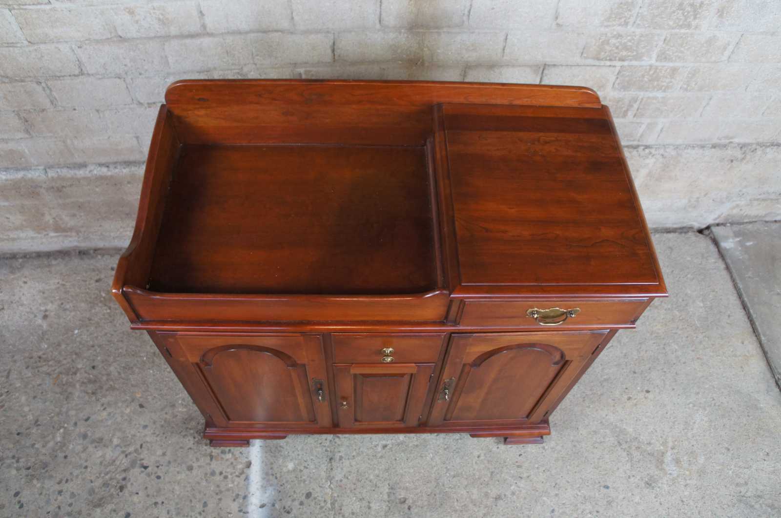 Circa 1960s Pennsylvania House cherry dry sink. Includes copper insert, two drawers and lower cabinet space. On wheels for ease of movement.