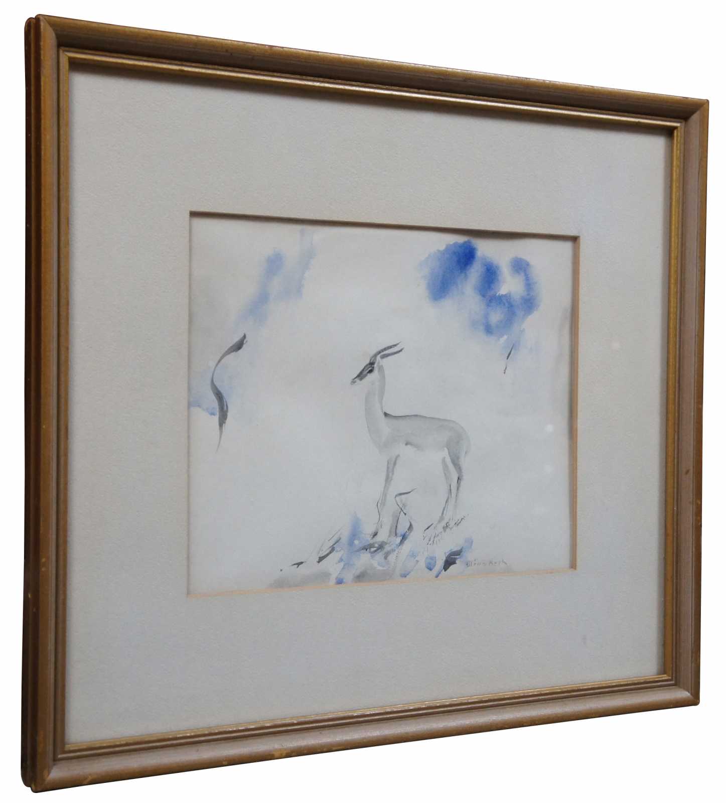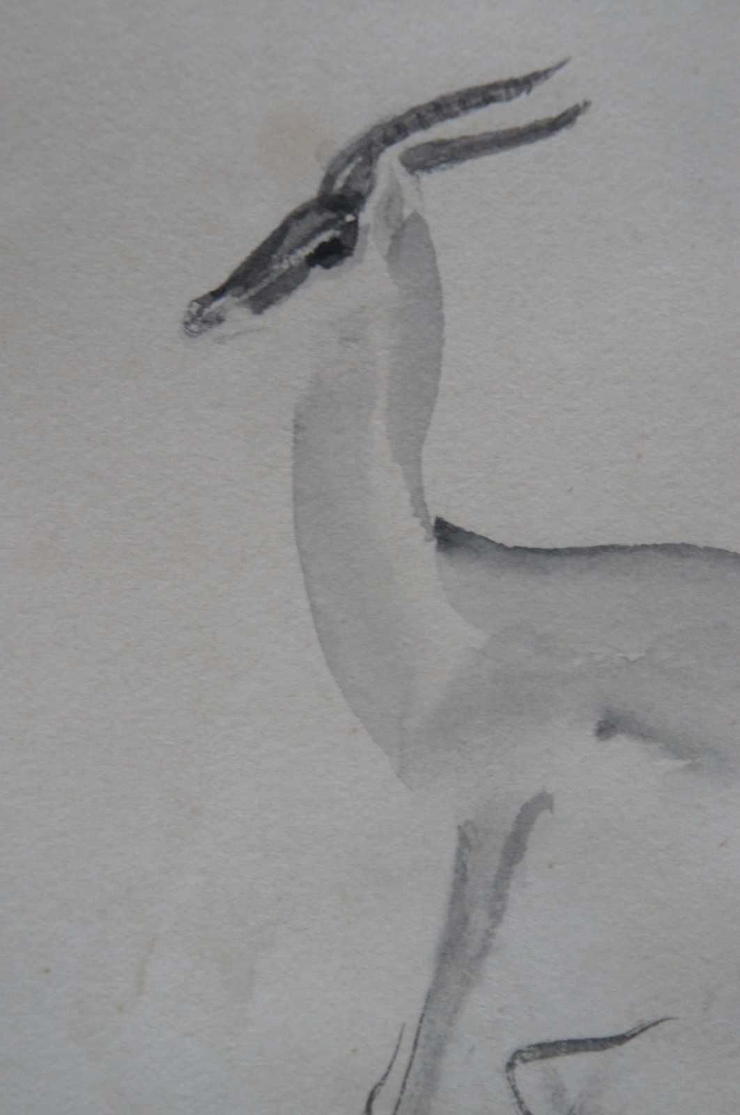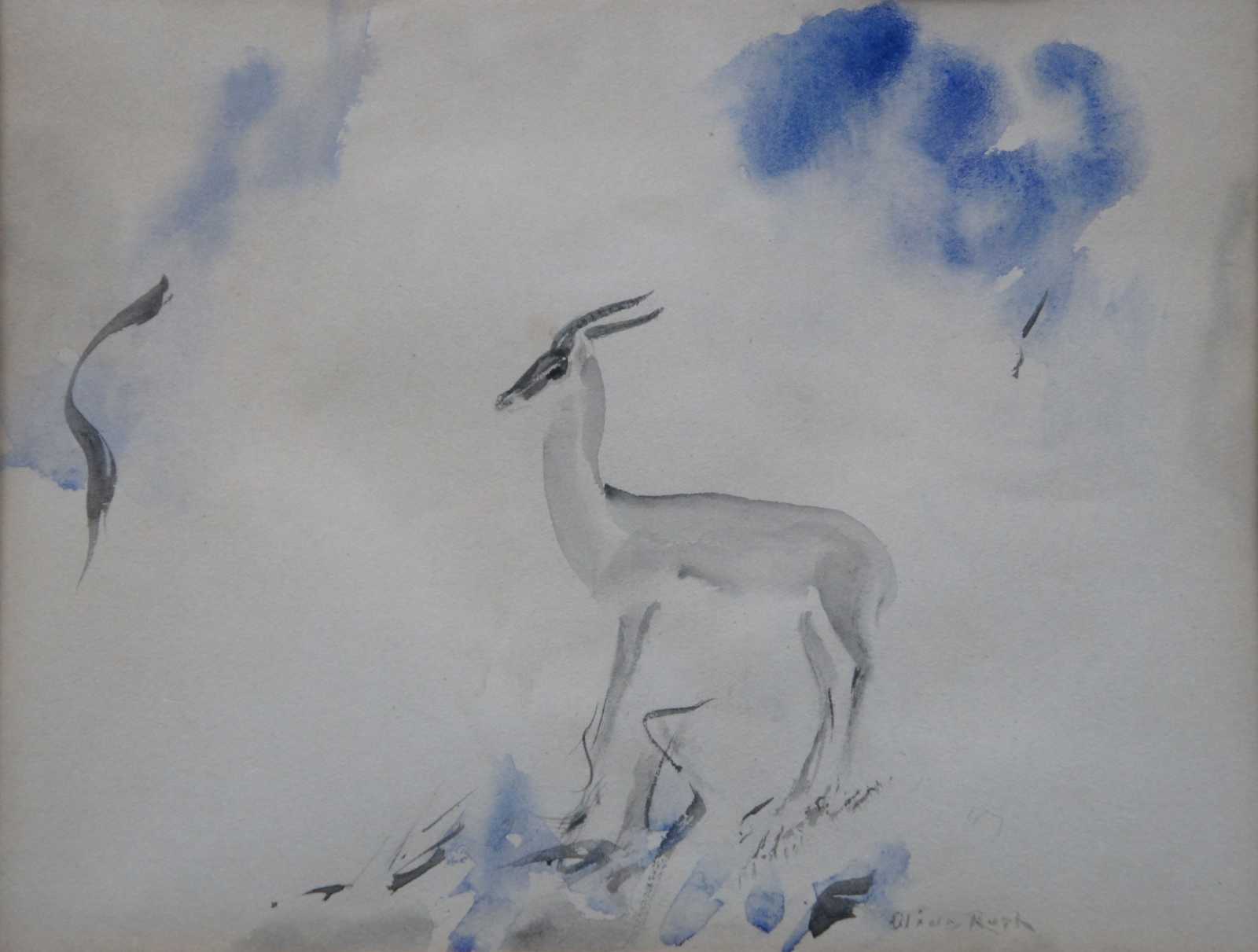 Vintage watercolor on paper gazelle painting by Olive Rush. “Known as one of the early 20th-century American women to be fully dedicated as an art professional, Olive Rush said: ""You must learn your own best way of living and creating. You are an individual in art as in life. Another way is not your way."" (32)