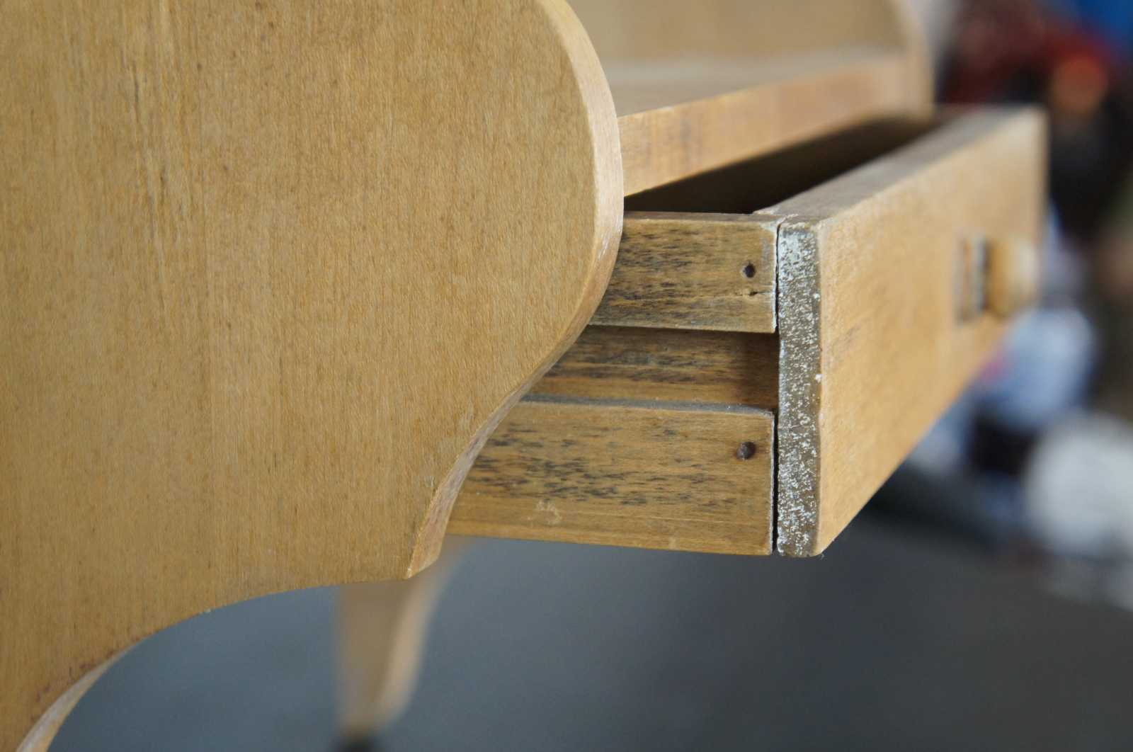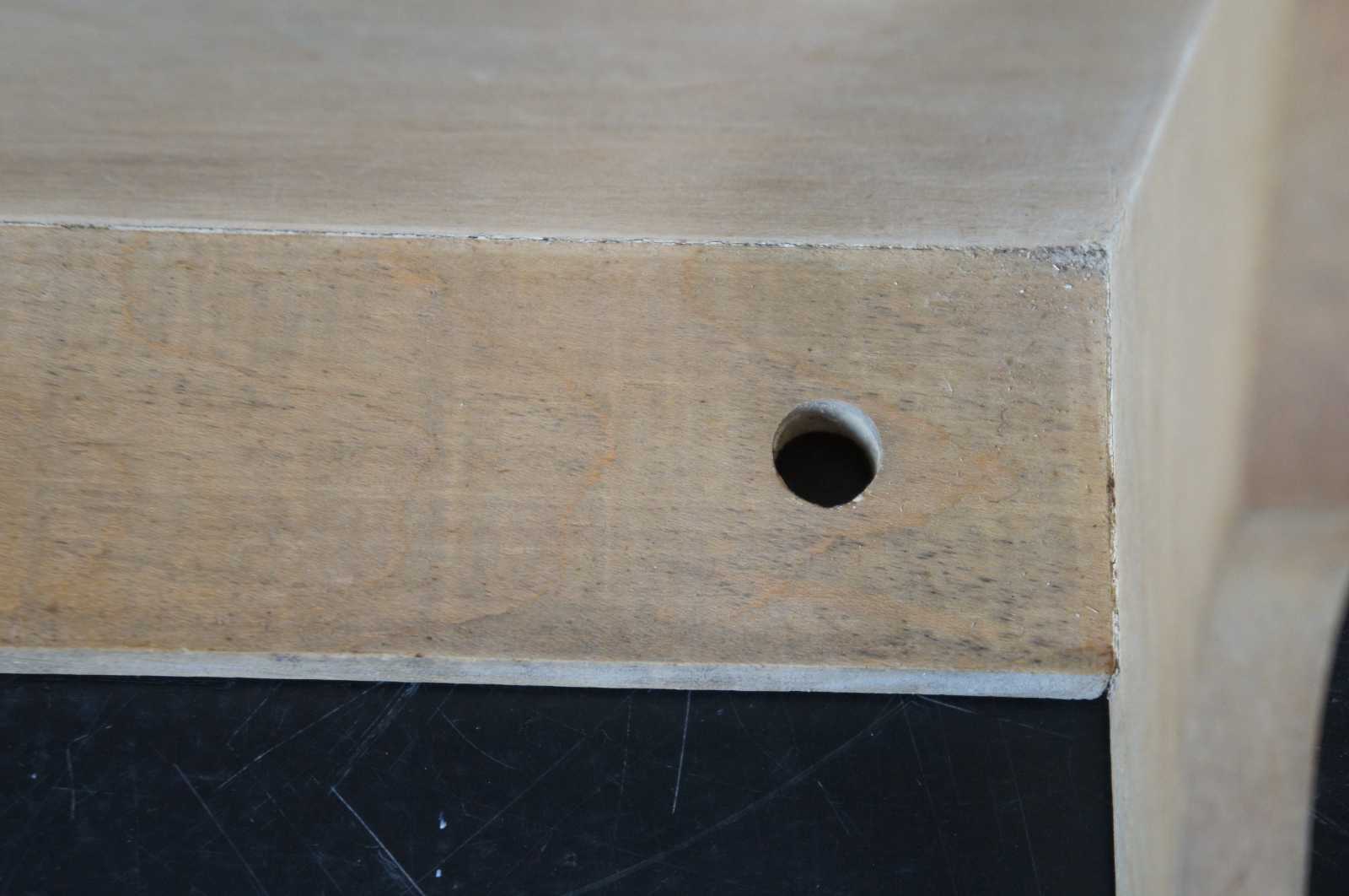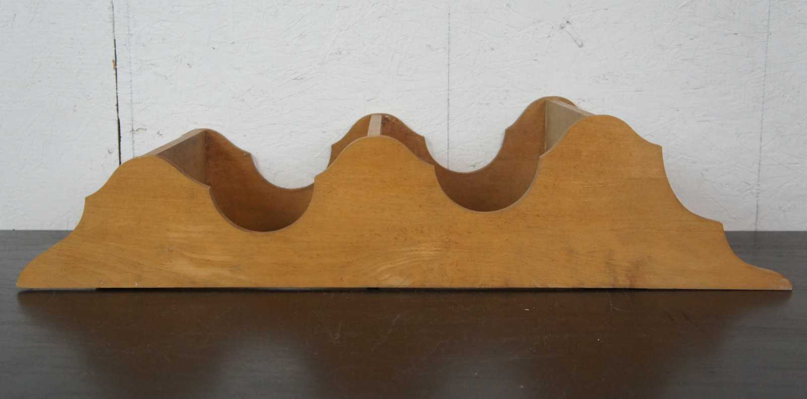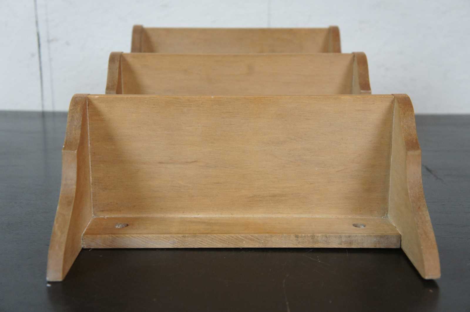 Early American style wall shelf with serpentine sides framing three shelves and a lower drawer.