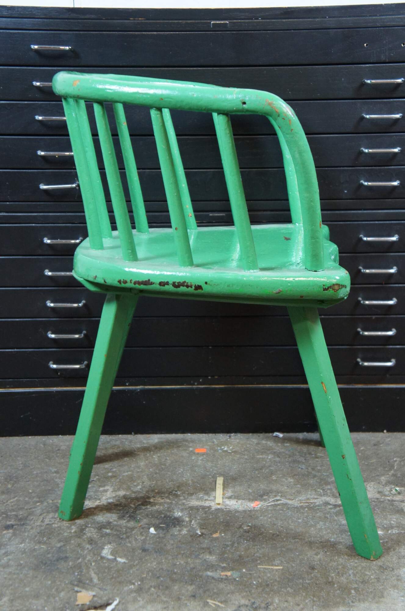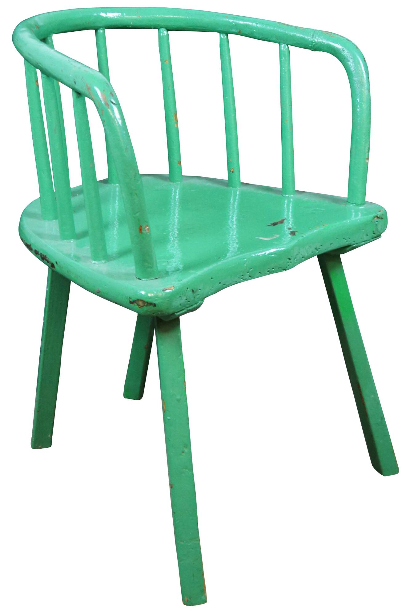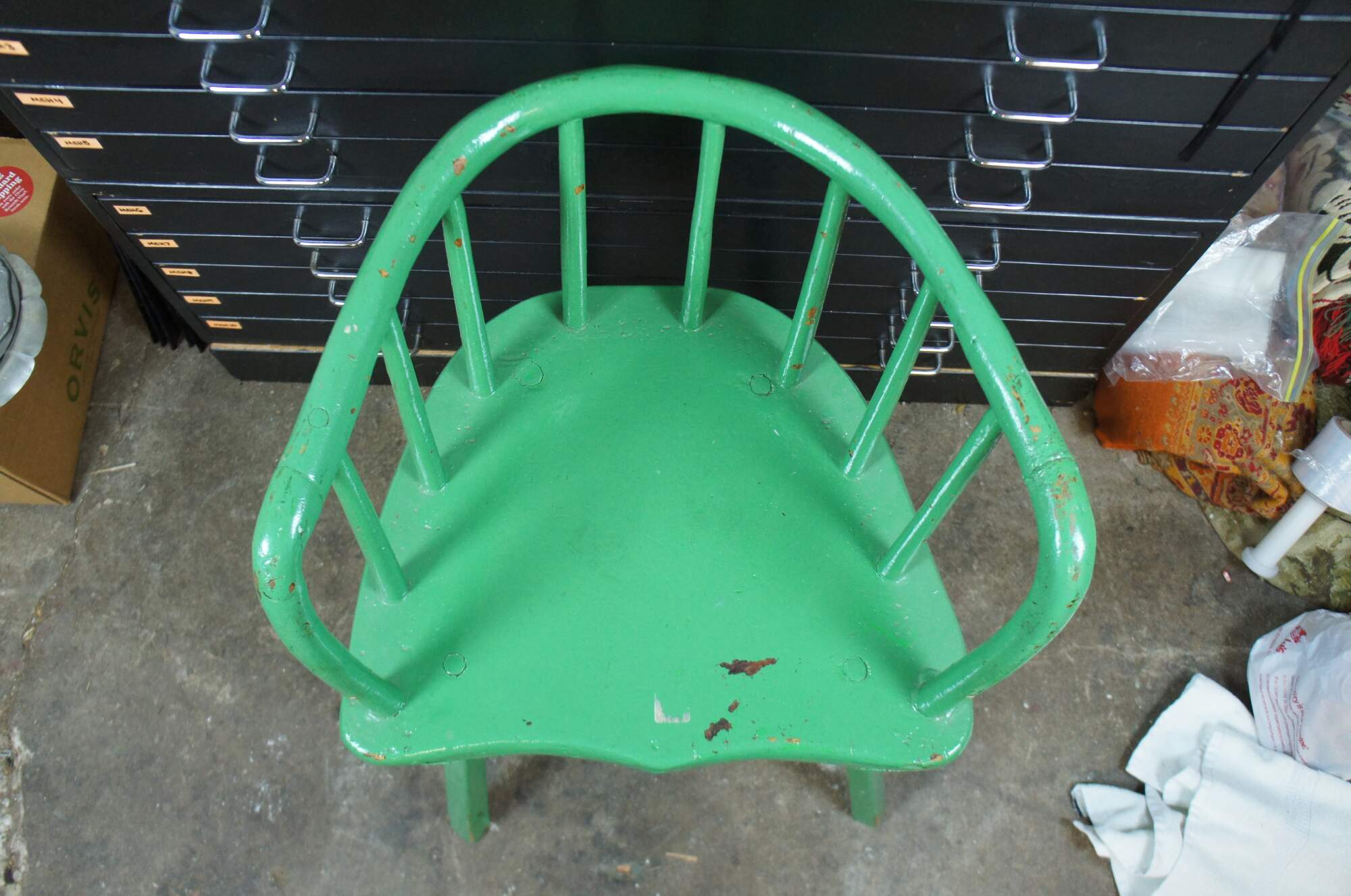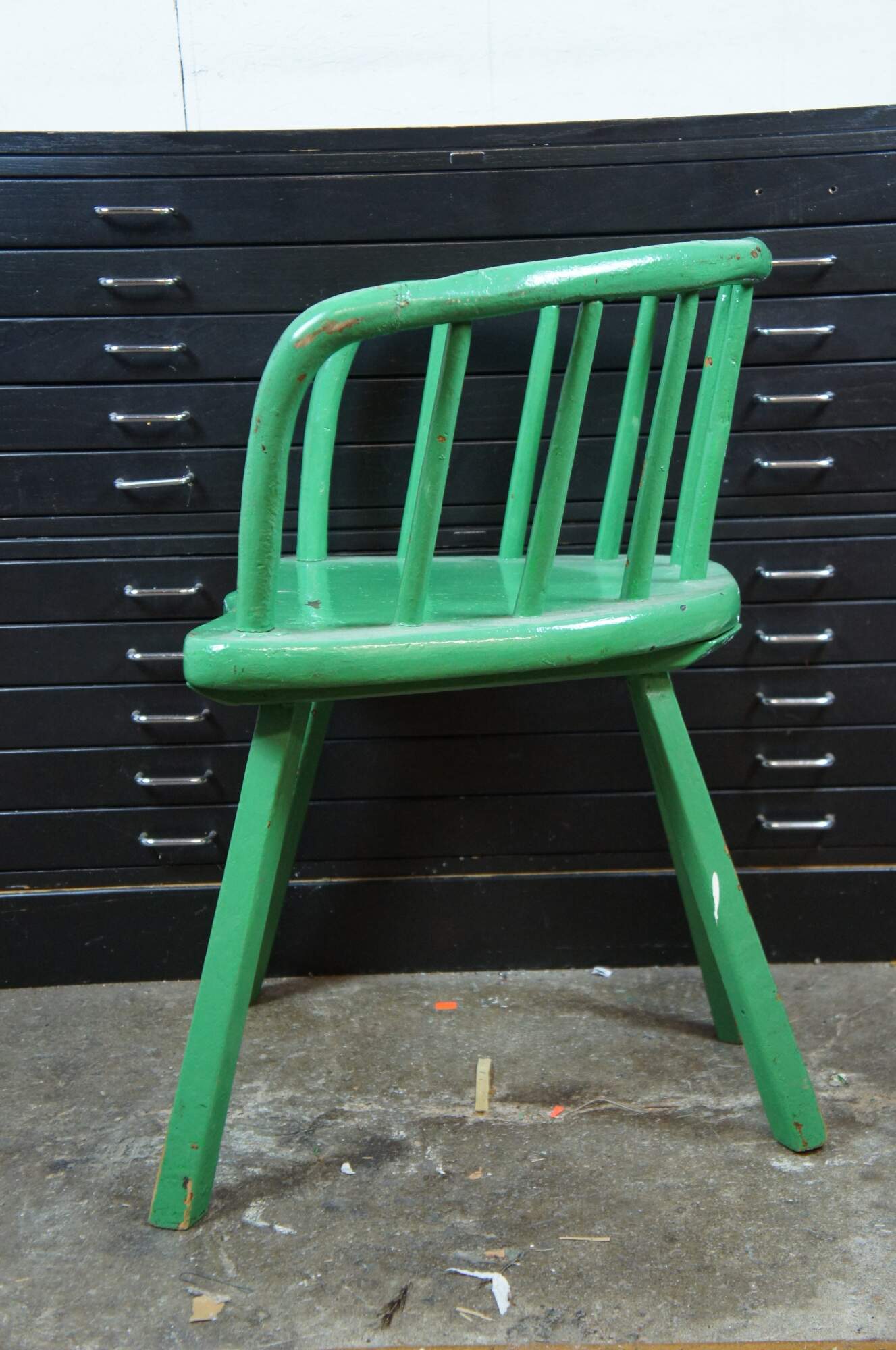 Antique barrel back windsor style chair finished in apple green enamel paint.