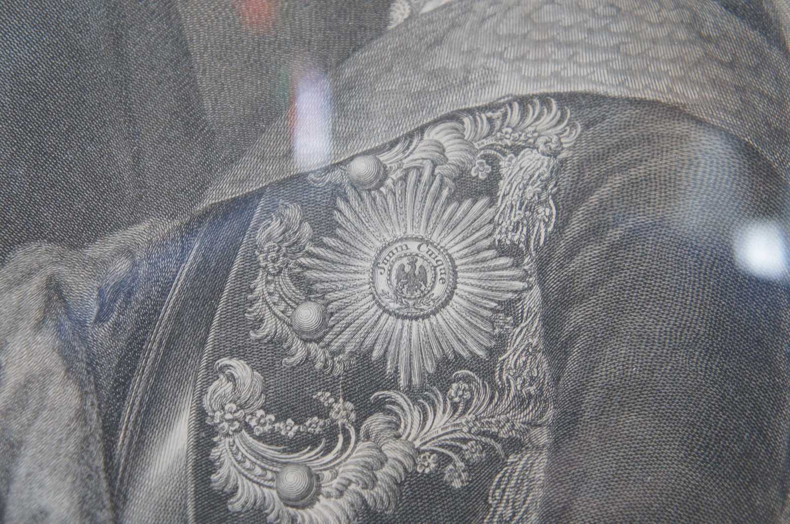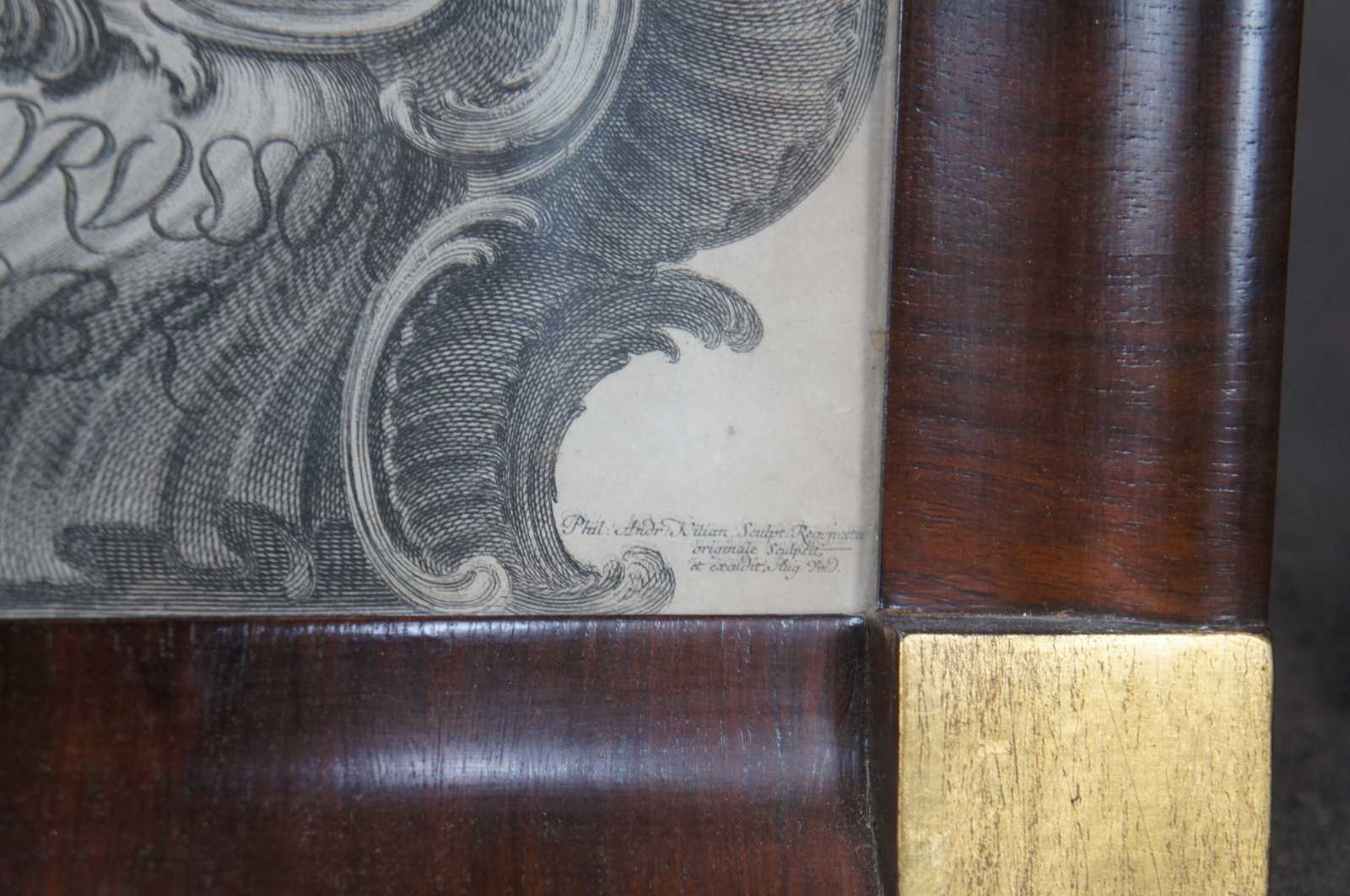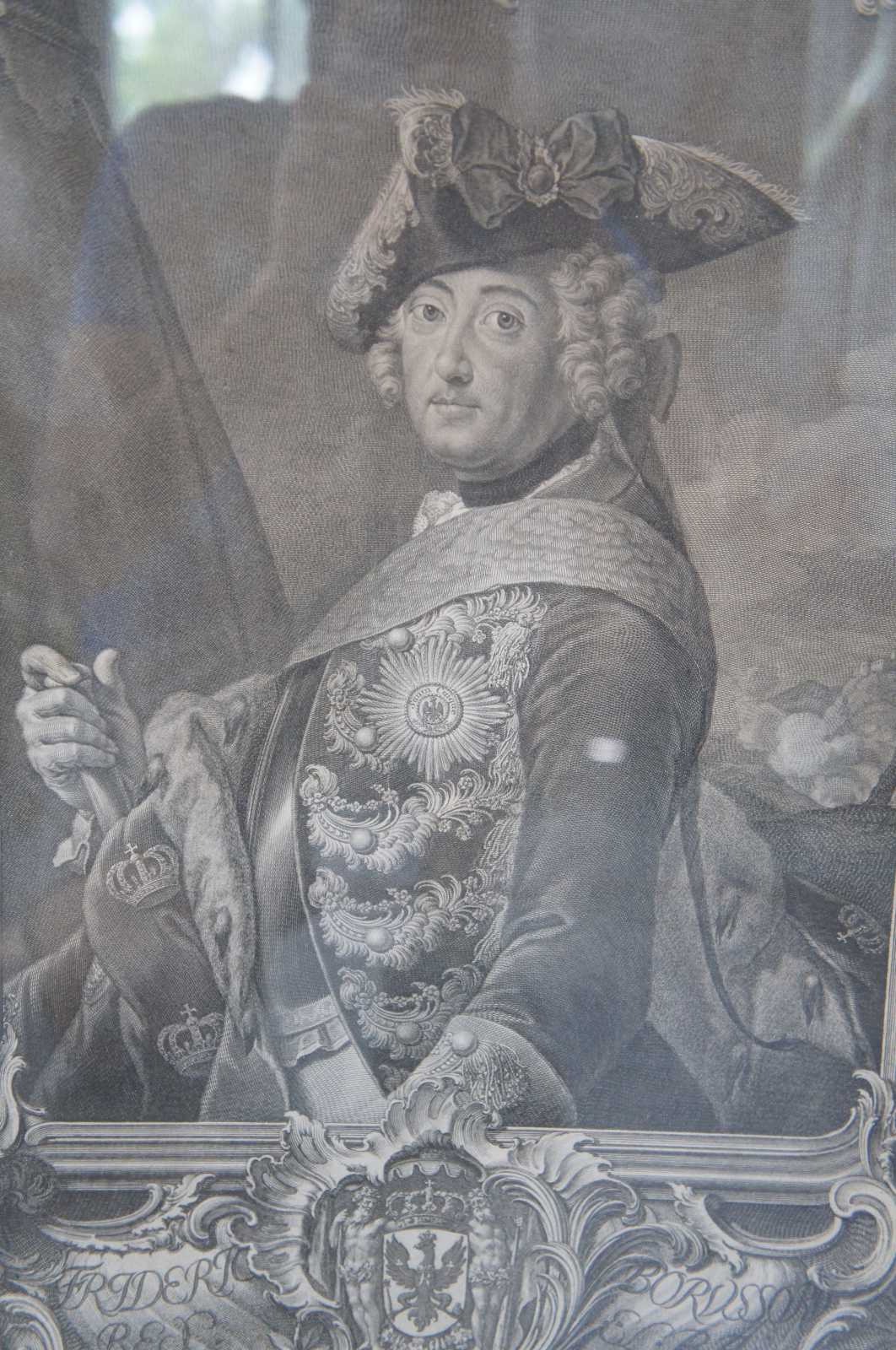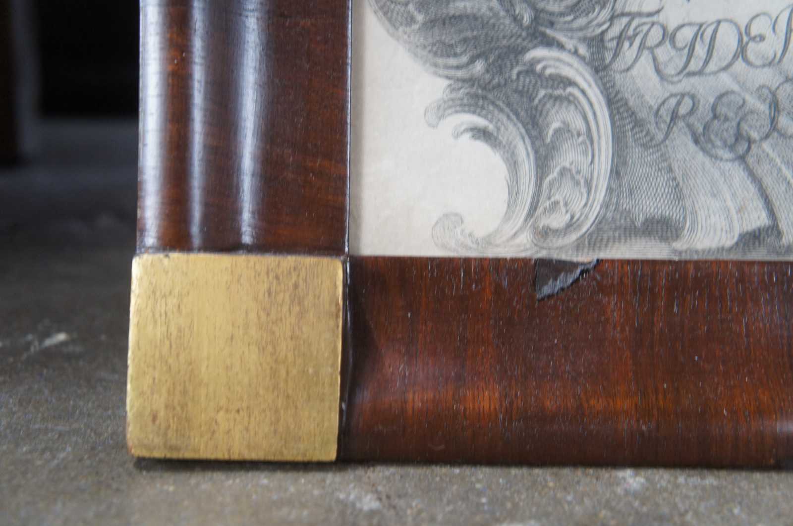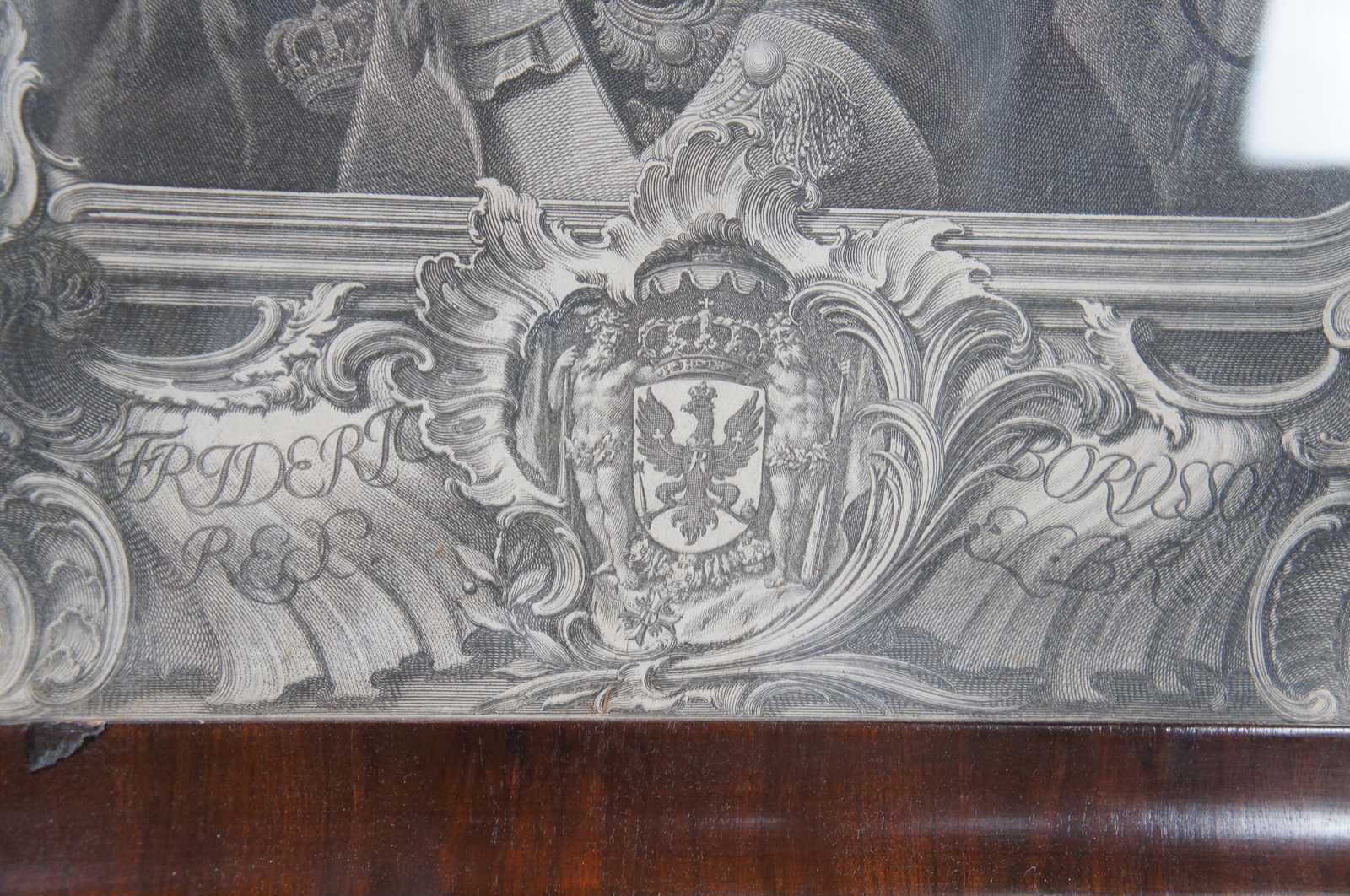 Antique mahogany framed engraving featuring a portrait of Frederick II, The Great (1712-86), engraved by Kilian, Phillip Andreas.