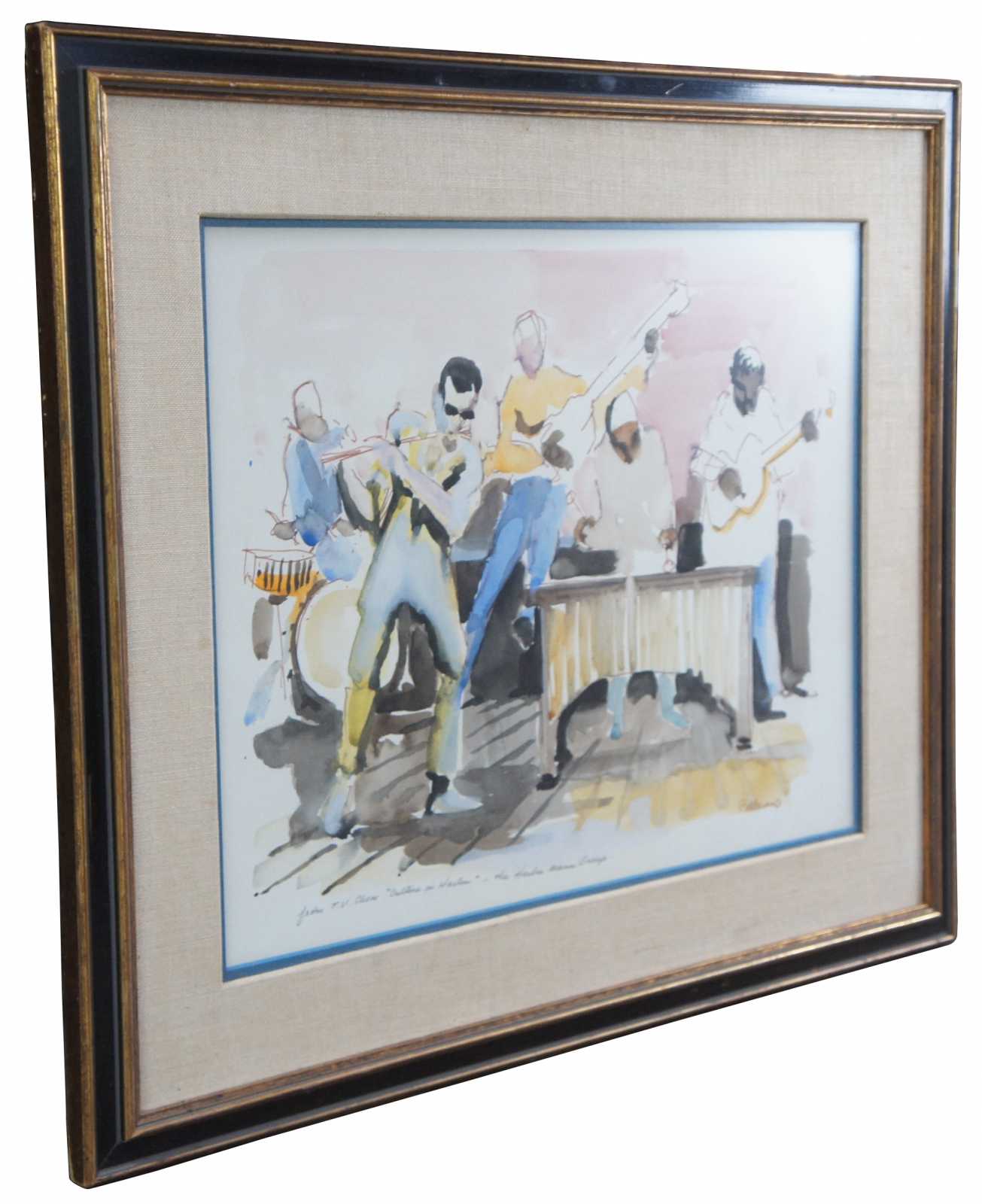 Vintage watercolor painting by John Pellerano featuring the Herbie Mann group from their apperance on the TV show Culture in Harlem.