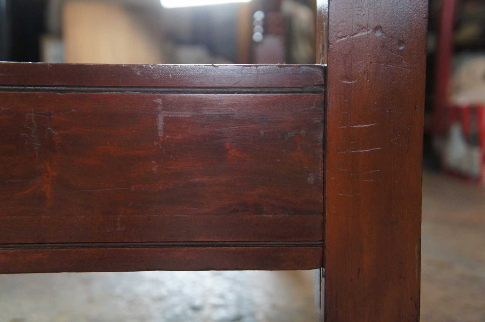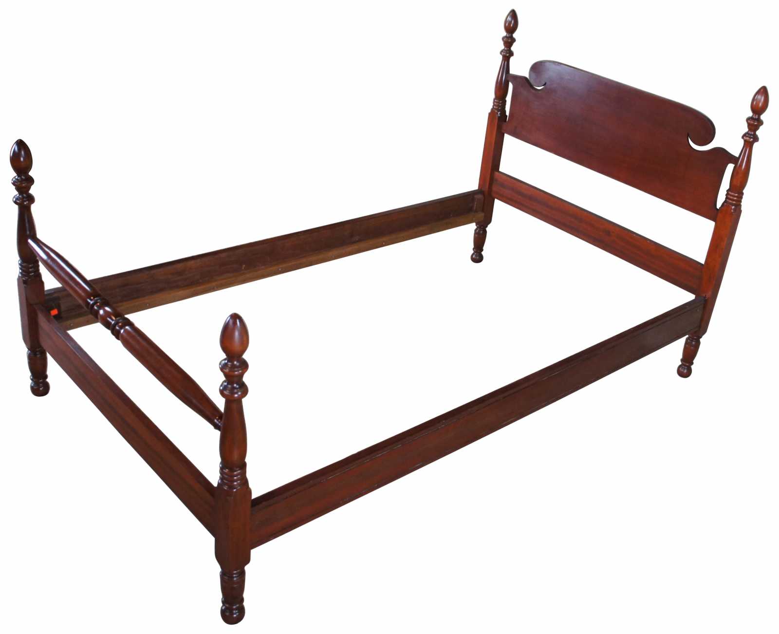 Antique Georgian style full or double poster bed. Made of mahogany featuring four turned posts and a bun foot.