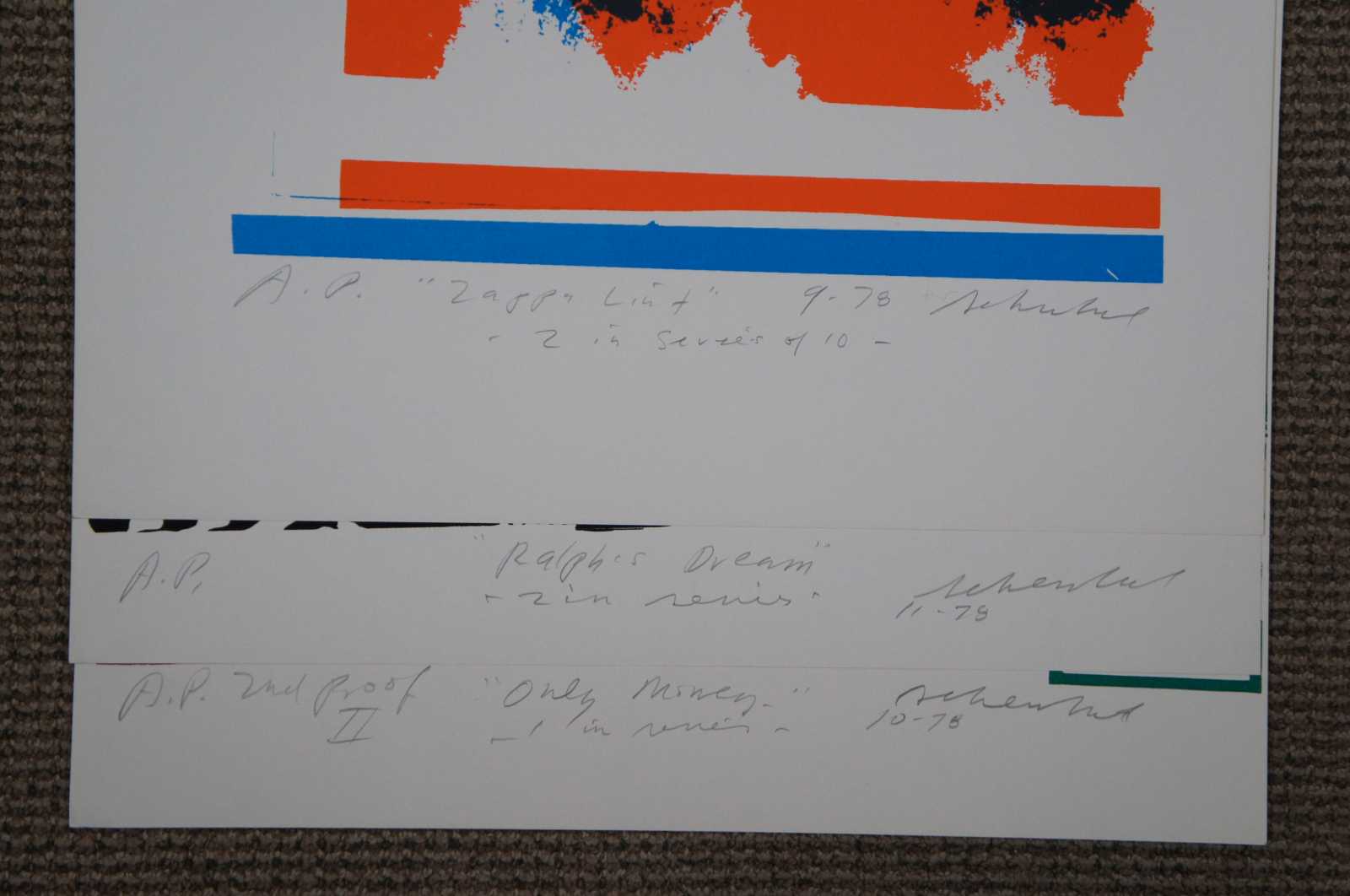 An original collection of silkscreen lithographs signed by Cal Schenkel, creator of many Mothers of Invention and Captain Beefheart album covers.