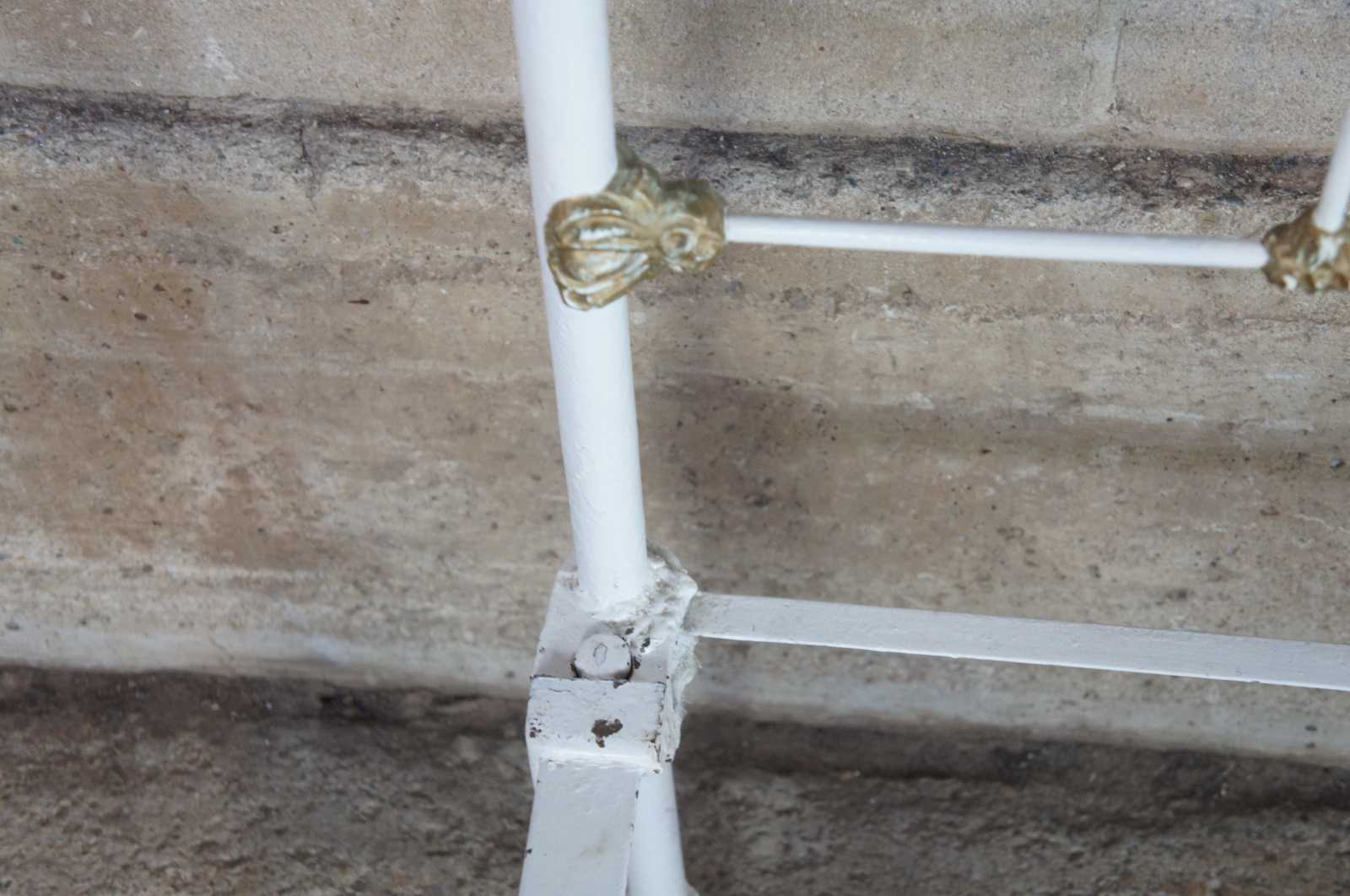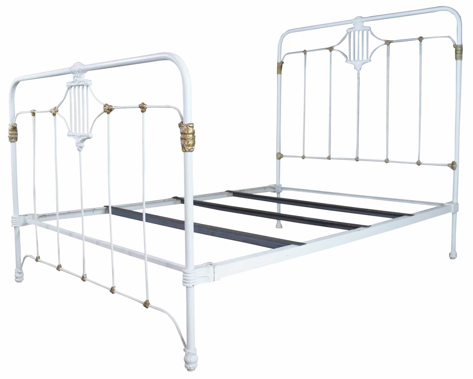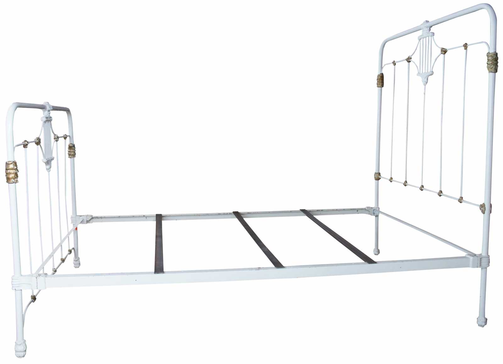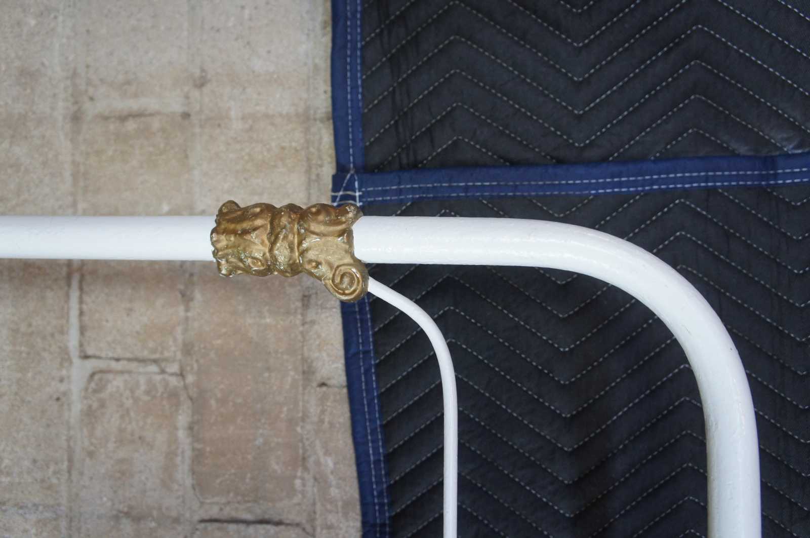 Antique cast iron bed frame. Painted white and gold with French styling.