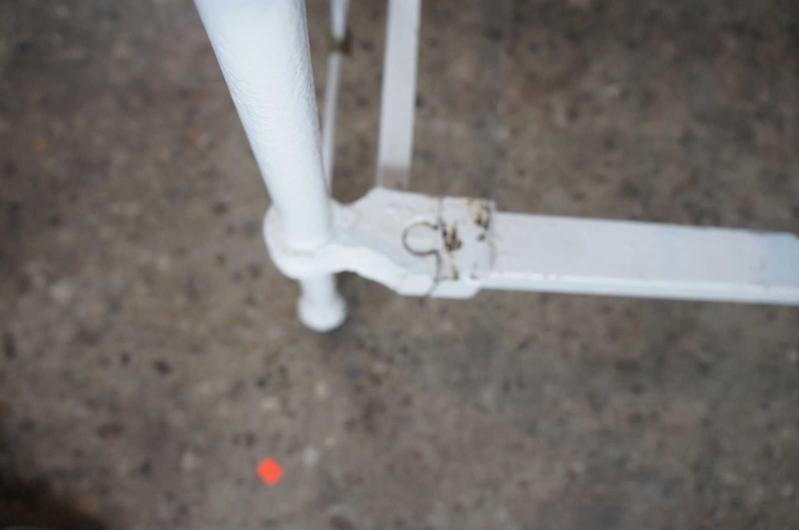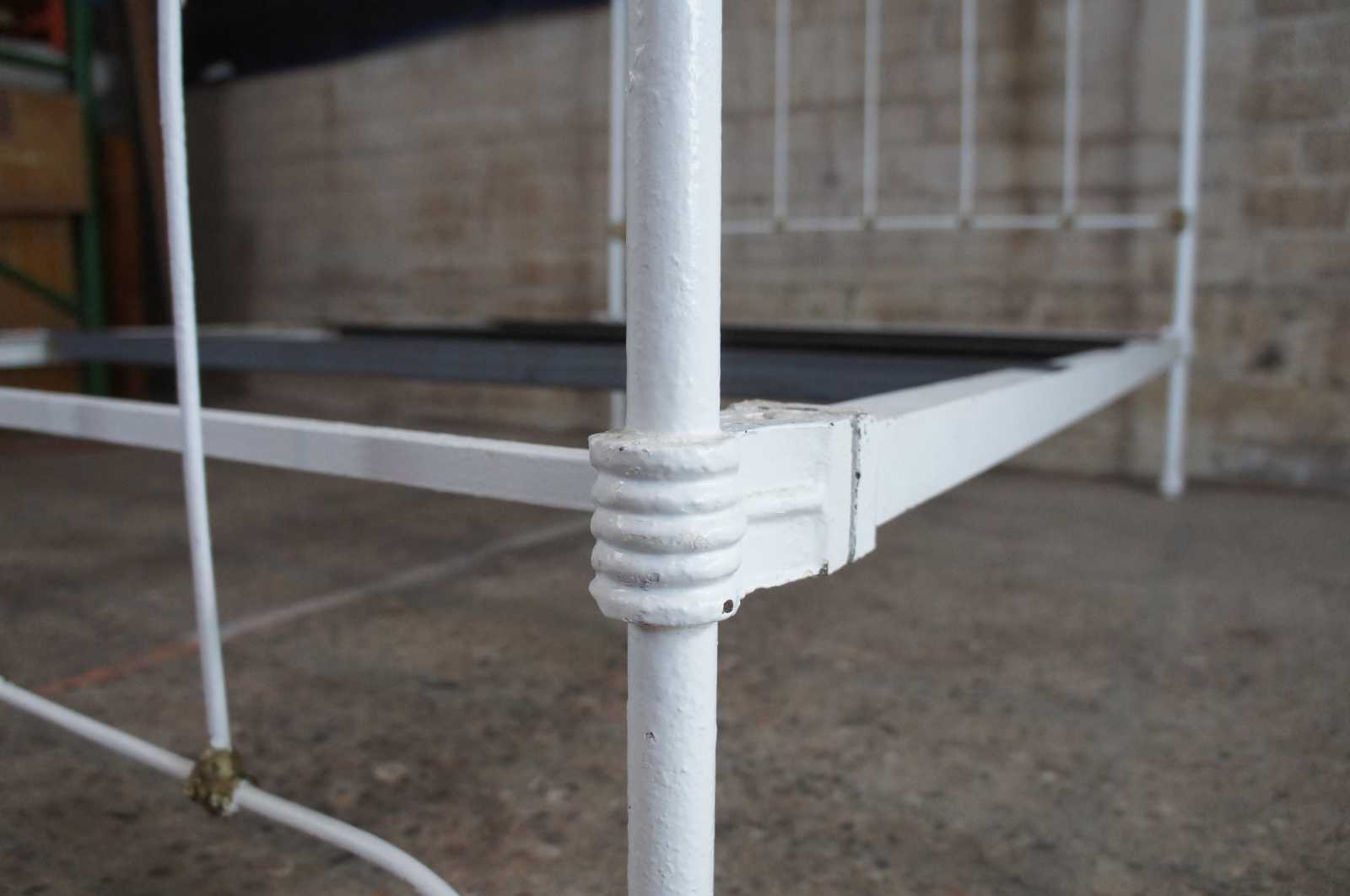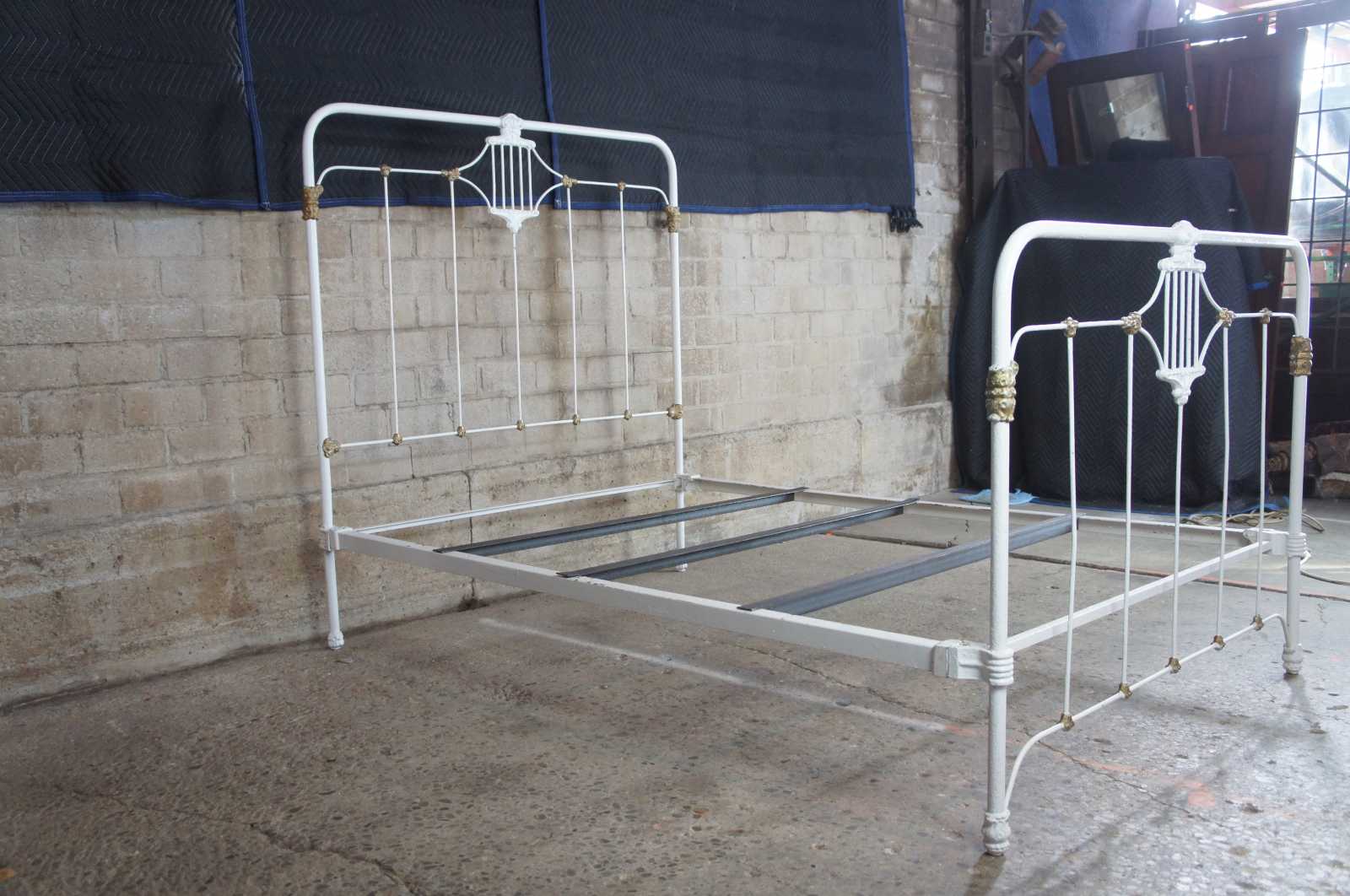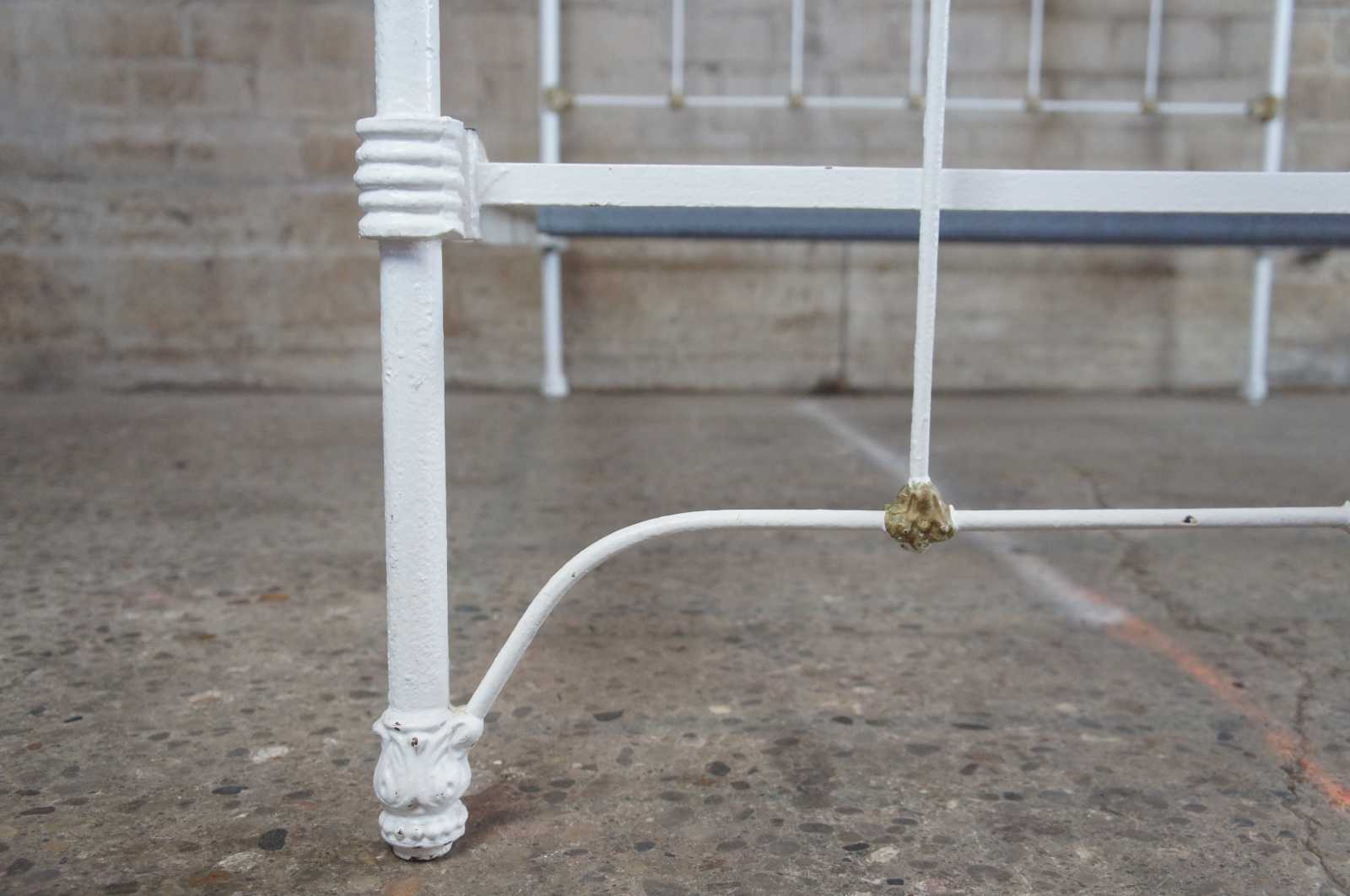 Antique cast iron bed frame. Painted white and gold with French styling.