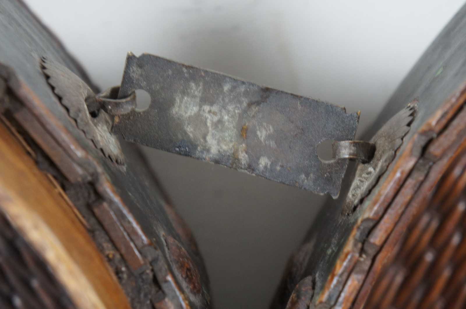 Good Antique Condition - Top and bottom dented/bowed inward; wear to painted border; tarnish/rusting to metal; see pictures