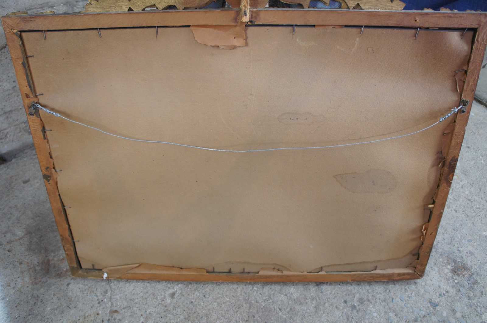 Fair condition, wear and distressing, split and missing gesso left corner, see pictures.