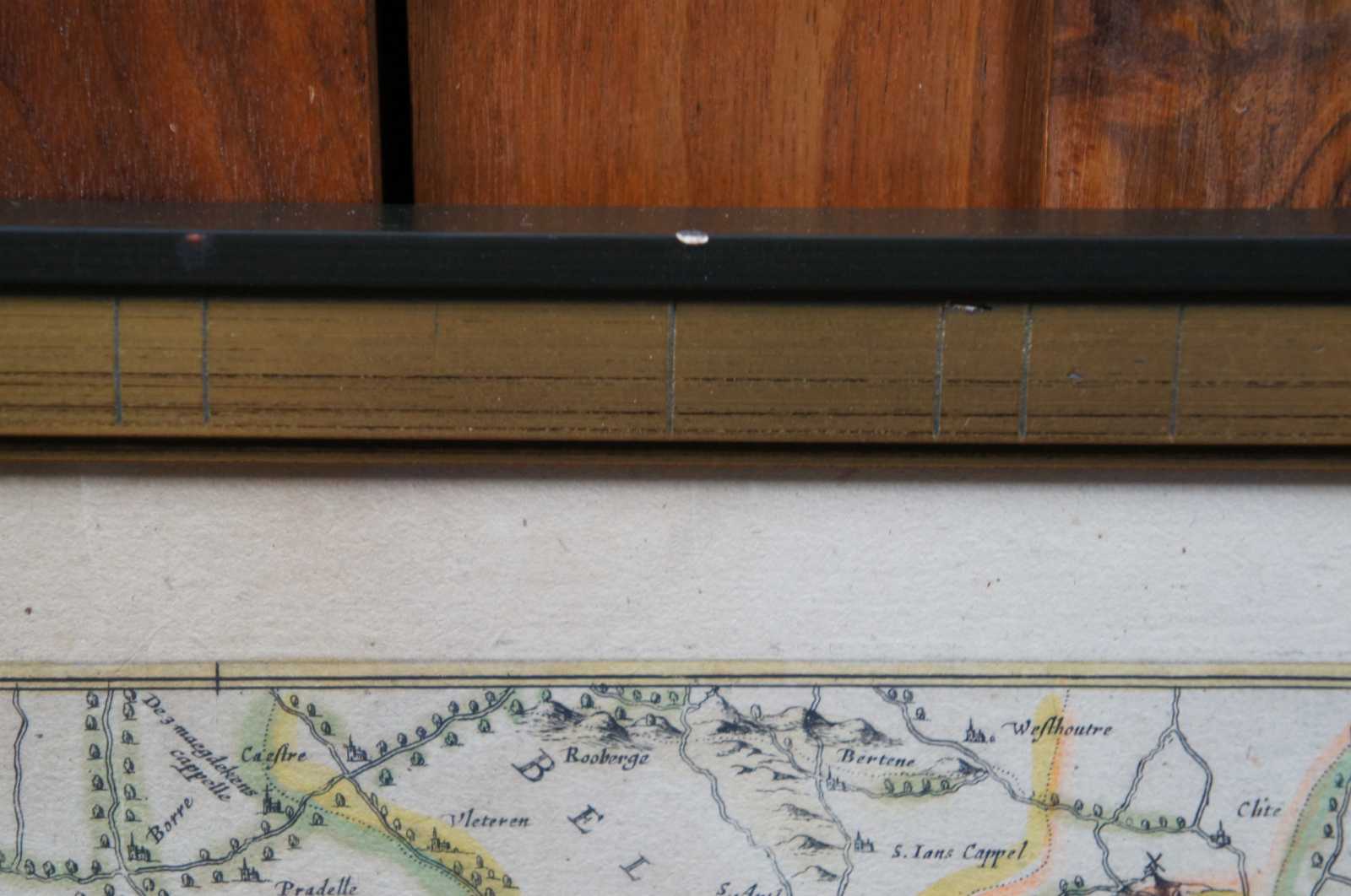 Antique hand colored map of Flanders, Belgium, circa 1630, engraved by Henricus Hondius. “Henricus Hondius II (1597 – 16 August 1651) was a Dutch engraver, cartographer, and publisher. He was born in Amsterdam, the son of the famous cartographer Jodocus Hondius who had started a map-making business in the city. Henricus obtained the original plates of the Mercator 1569 world map, and published a 1606 version of it. After his father died in 1612 Henricus co-ran the business with his brother-in-law.[1] In 1621 opened his own company in his hometown. The first time his name was mentioned in an atlas was in 1623 when he published the fifth edition of the Mercator-Hondius atlas. After 1628 Henricus partnered with the cartographer Jan Janssonius and together they continued the business. He died in Amsterdam.
