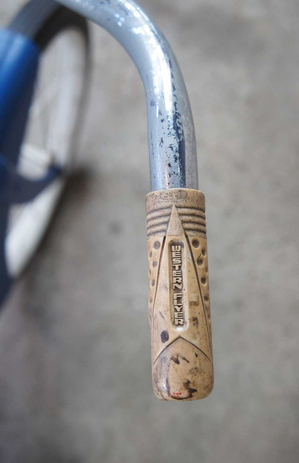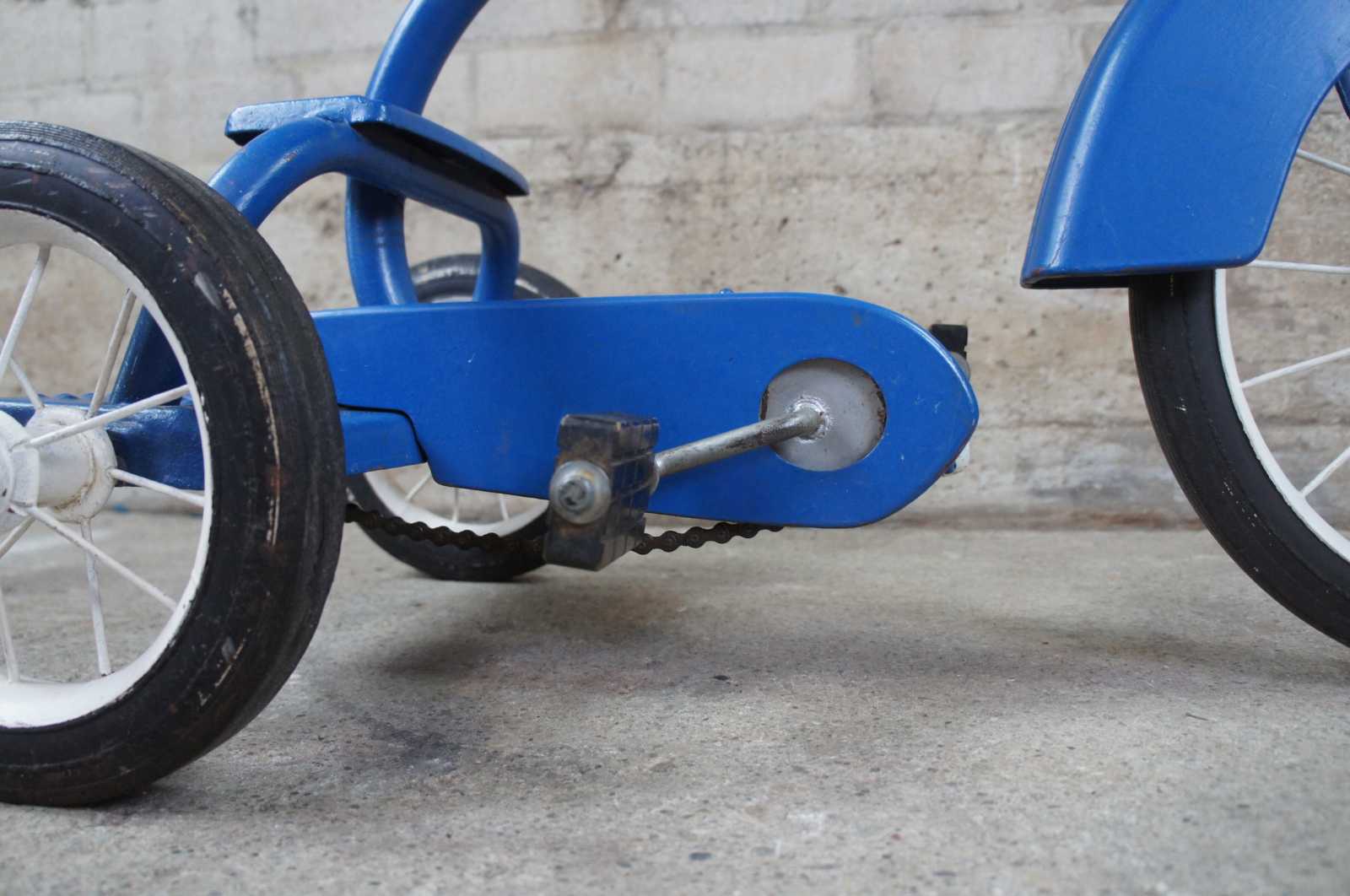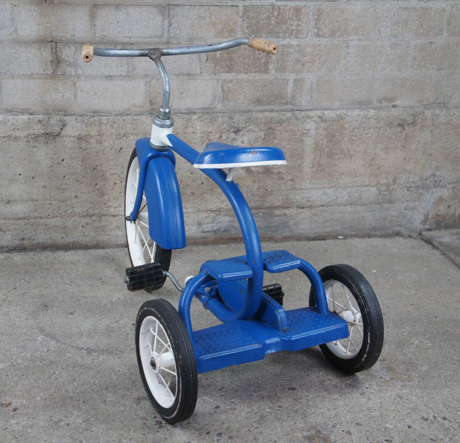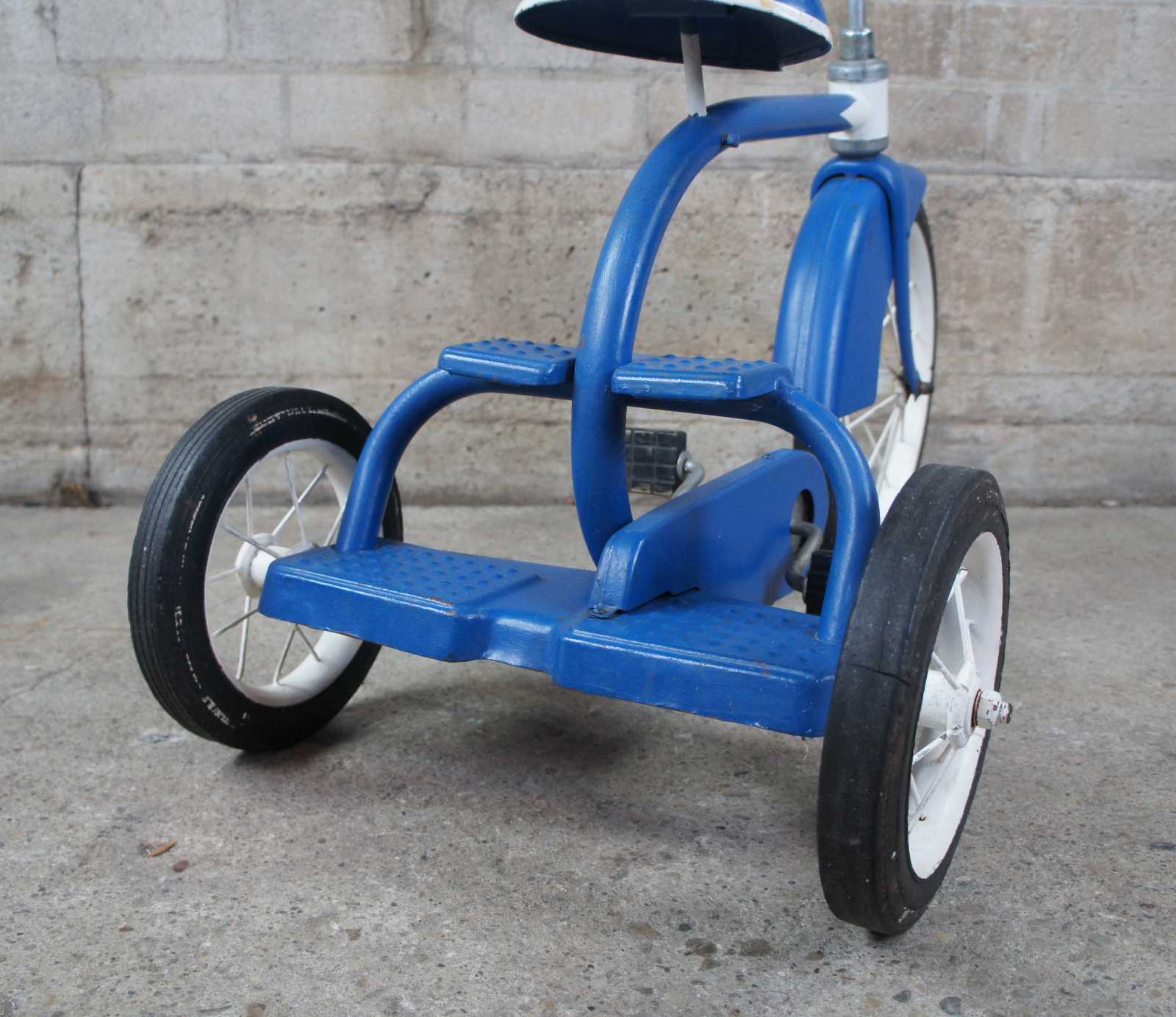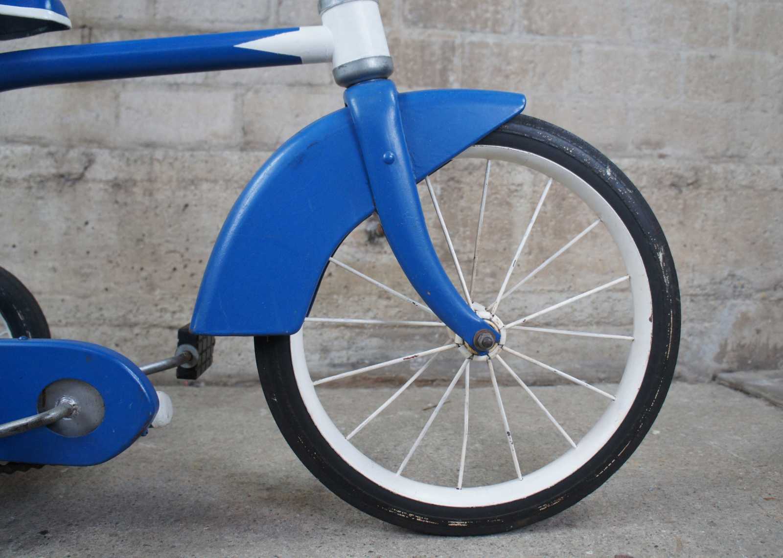 Vintage 1960s Western Flyer tricycle. Blue & White with black tires. Features a double step in the rear. Great for display and use!