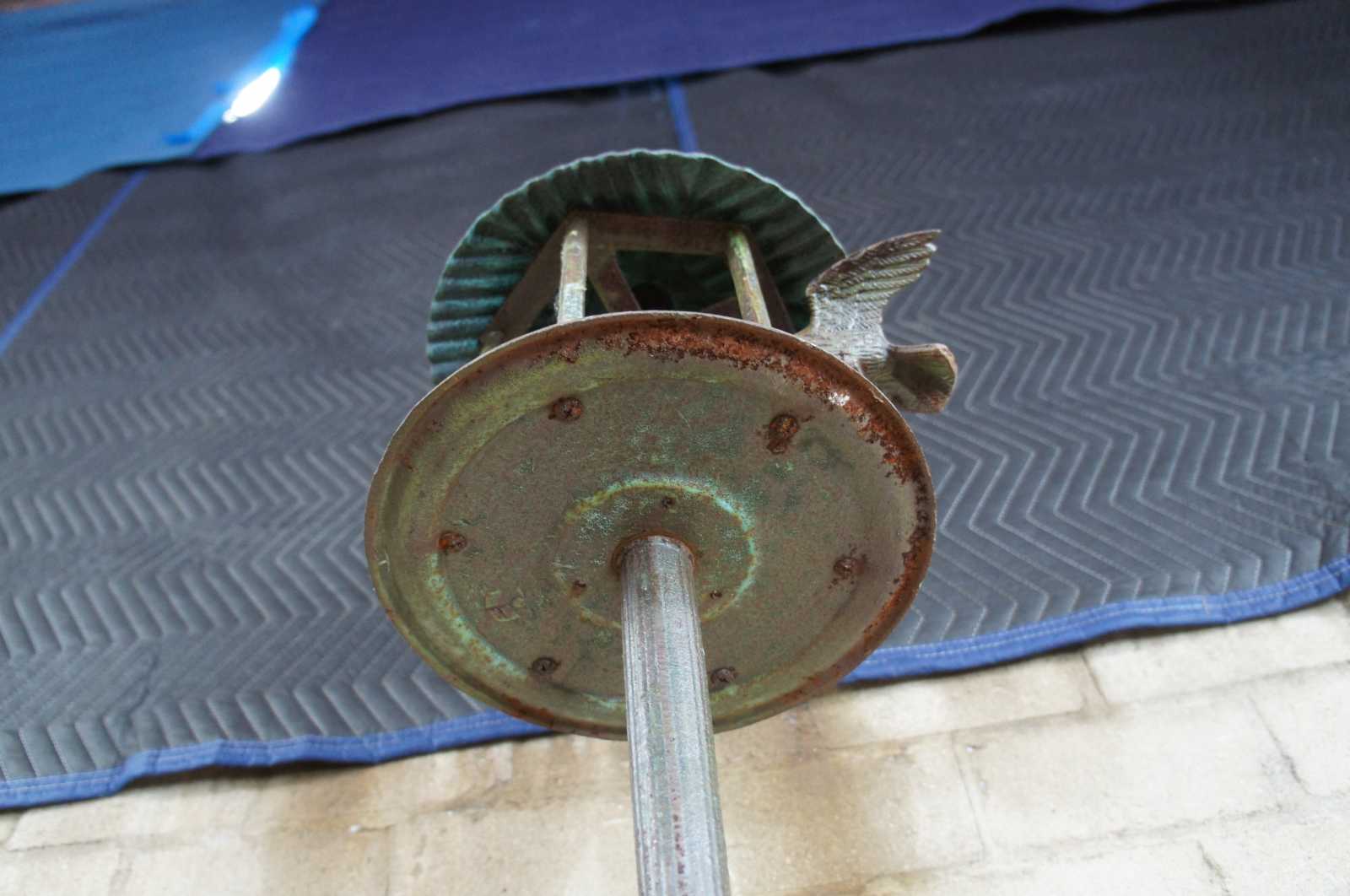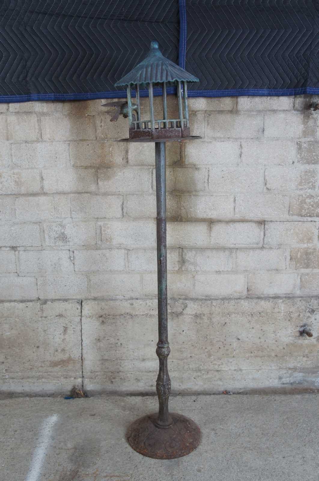 A unique vintage cast iron bird feeder. Features a gazebo with bird over a long post.