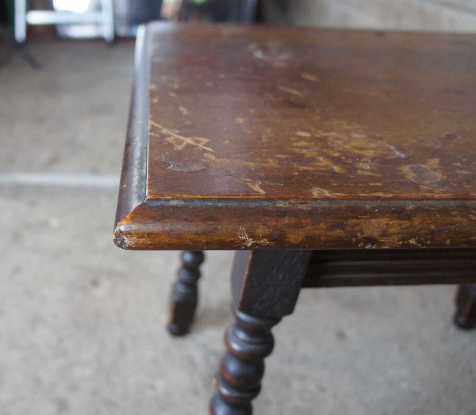 Distressing and wear comensurate with age. Some finish loss and scuffing. See Pictures