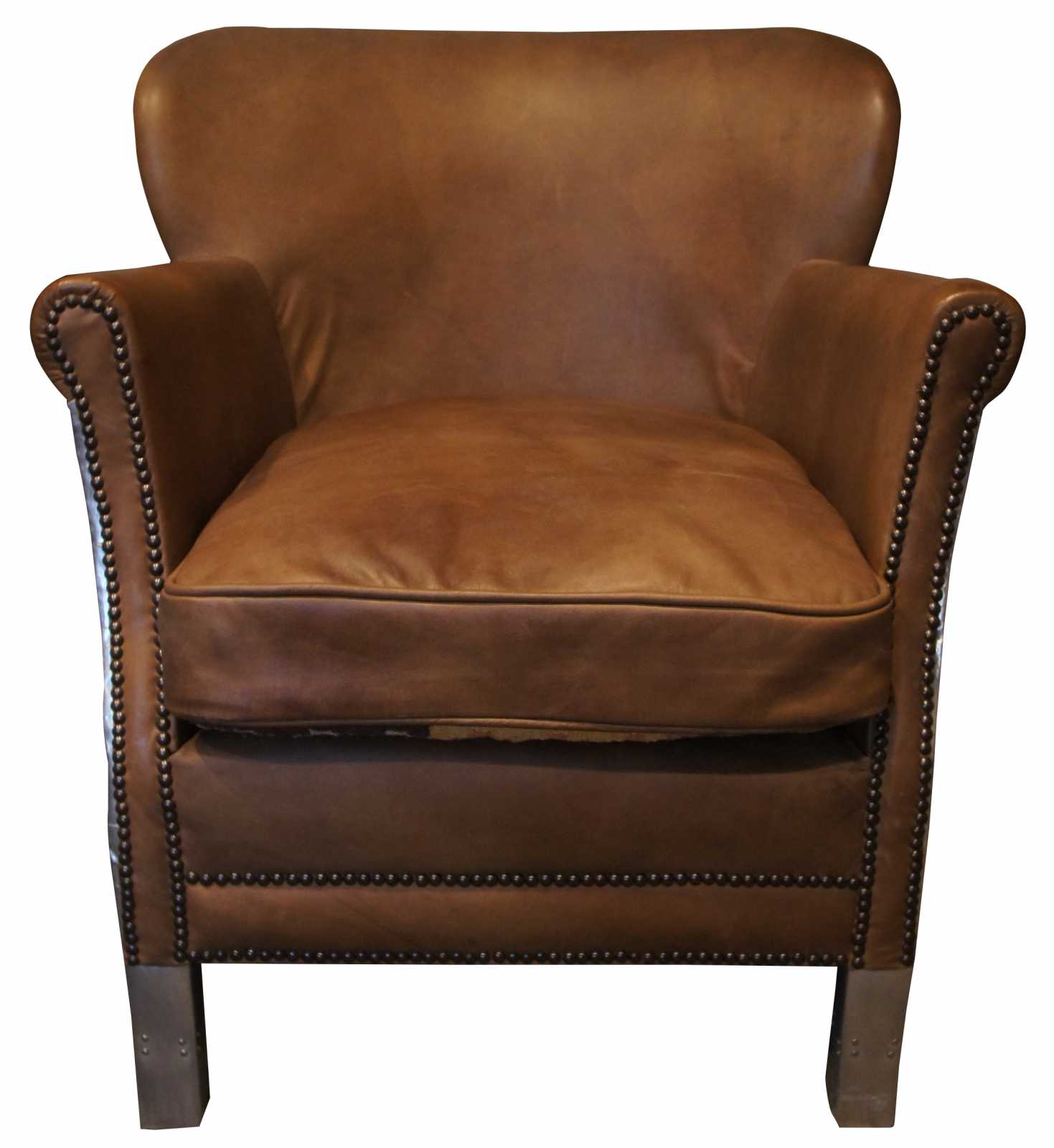Small in stature, grand in style, the Professor's Chair provides all the presence and comfort of its larger kin. A 1920s English wing chair by design, its petite proportions and enveloping embrace offer seating on a more intimate scale. Upholstered with a down-feather fill and tailored with refined welting and nailhead trim. A special version with the Aviator aluminum flare and southwestn fabric along one side of seat.