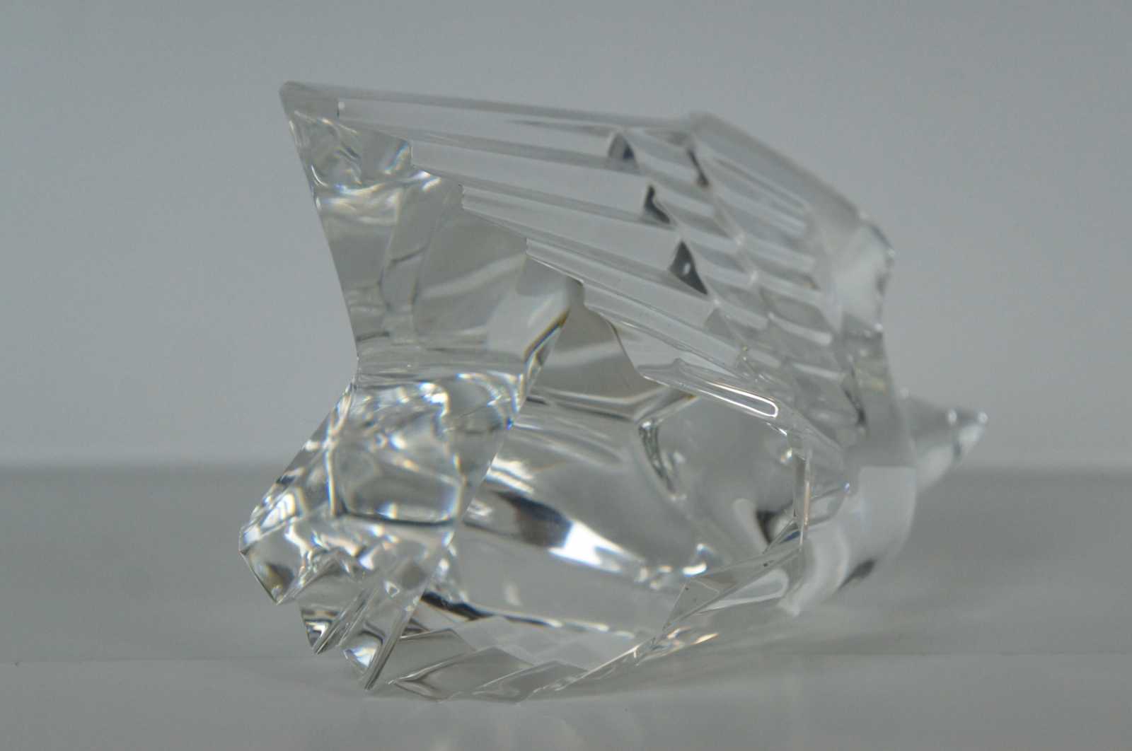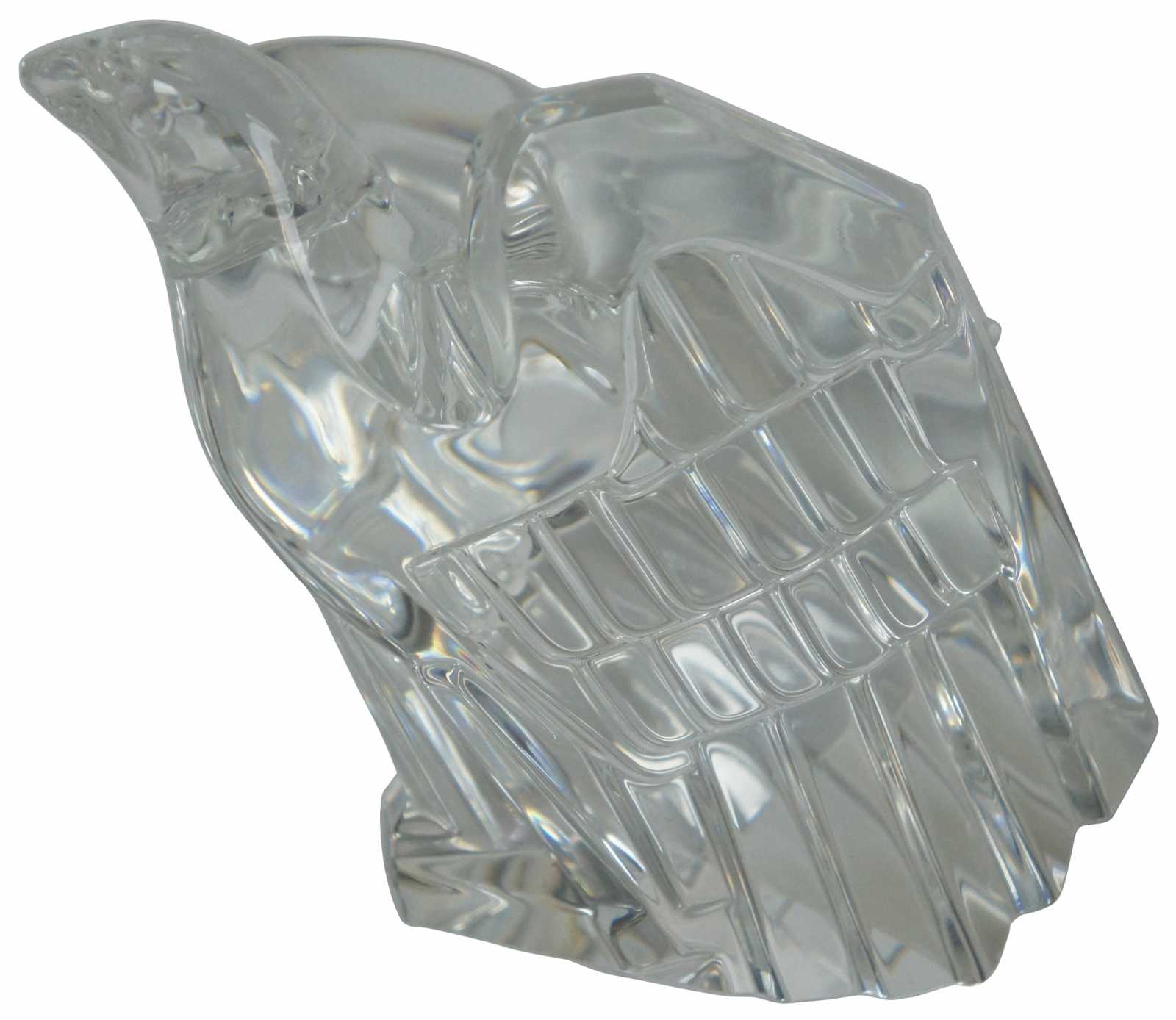 Steuben art glass figurine #8304 of a stylized American eagle in flight, designed by Donald Pollard.