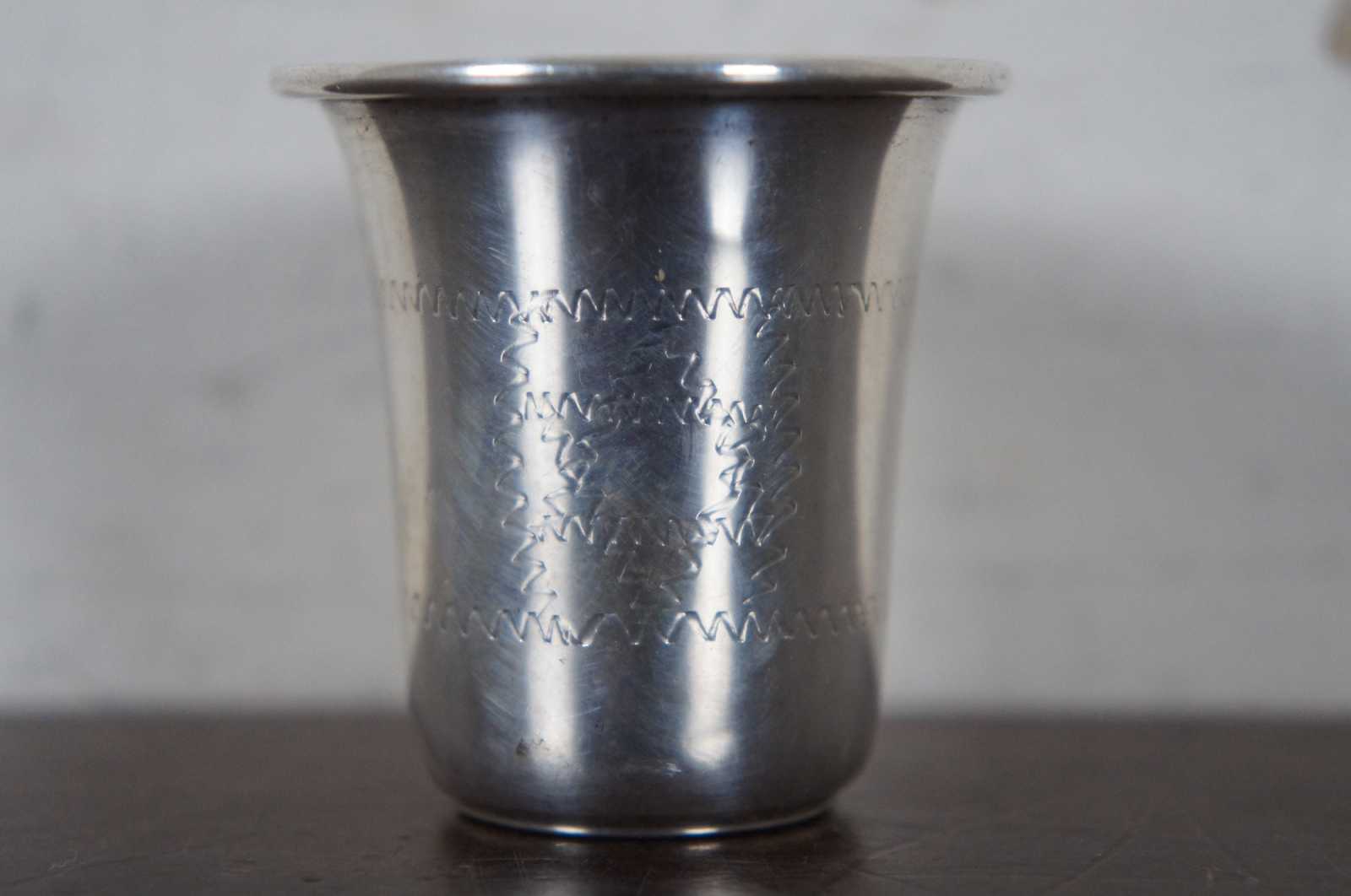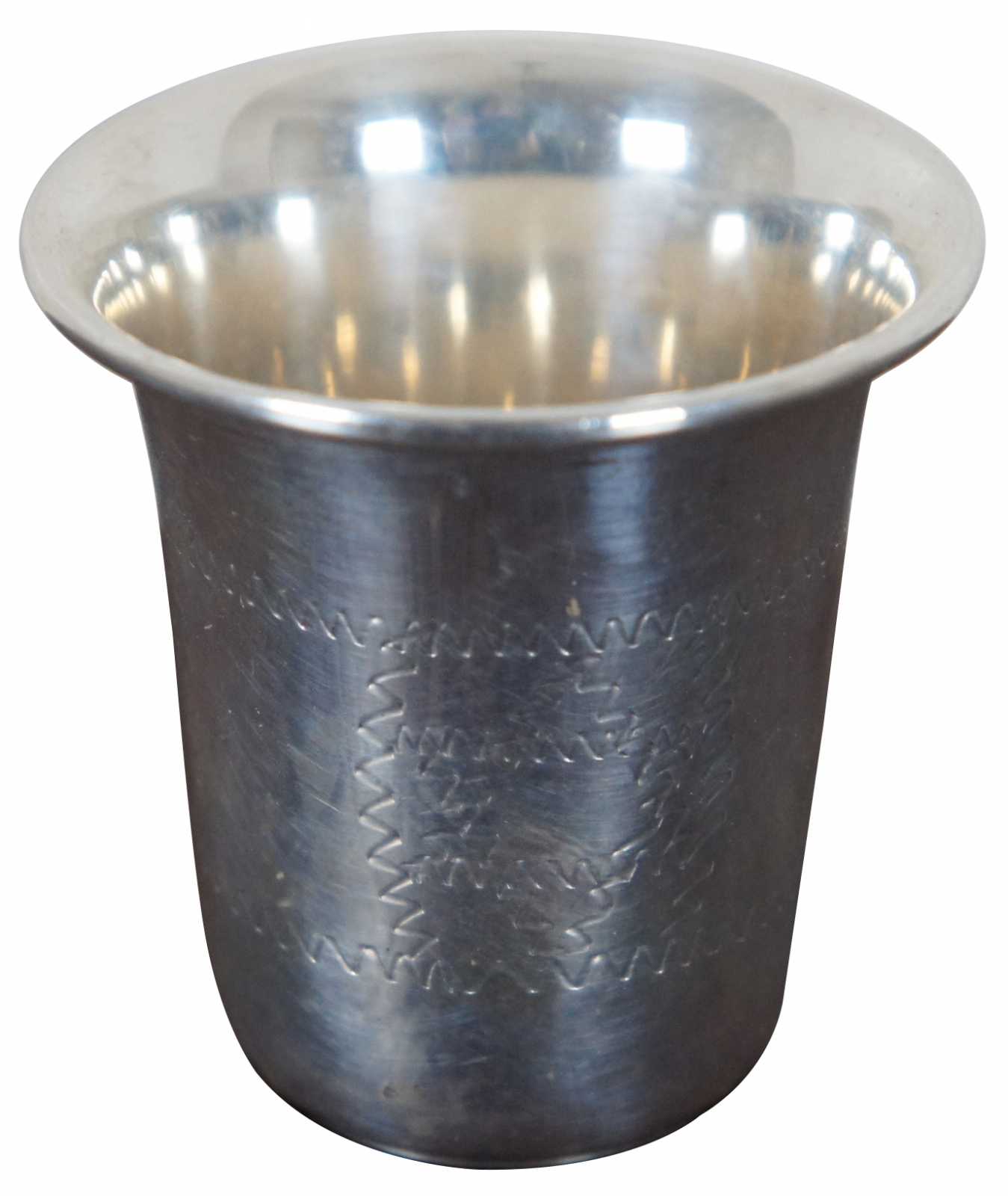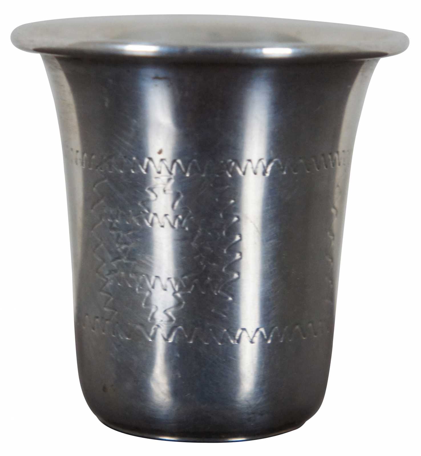 Antique sterling silver kiddush cup with engraved Star of David and leaf motif.