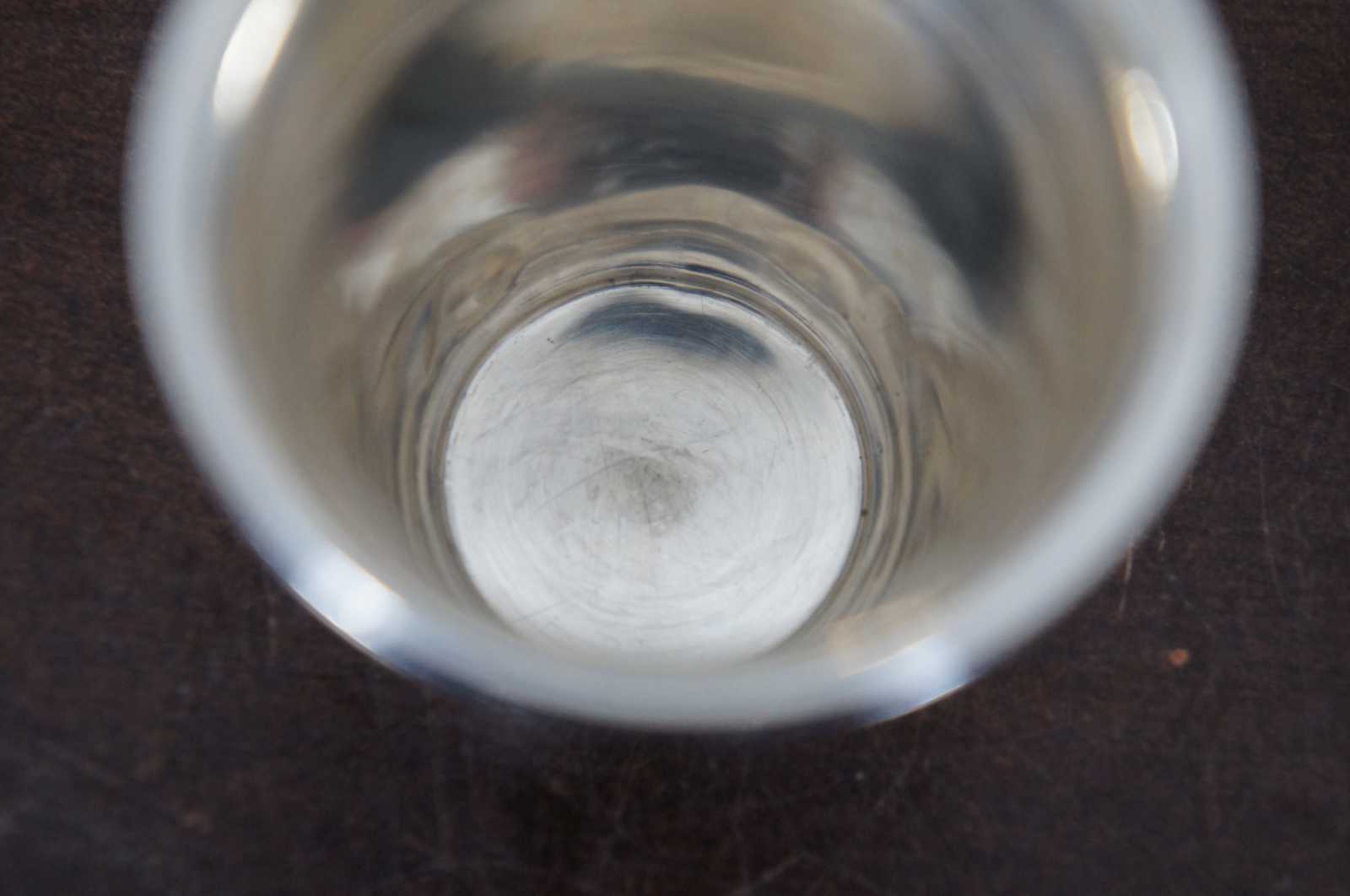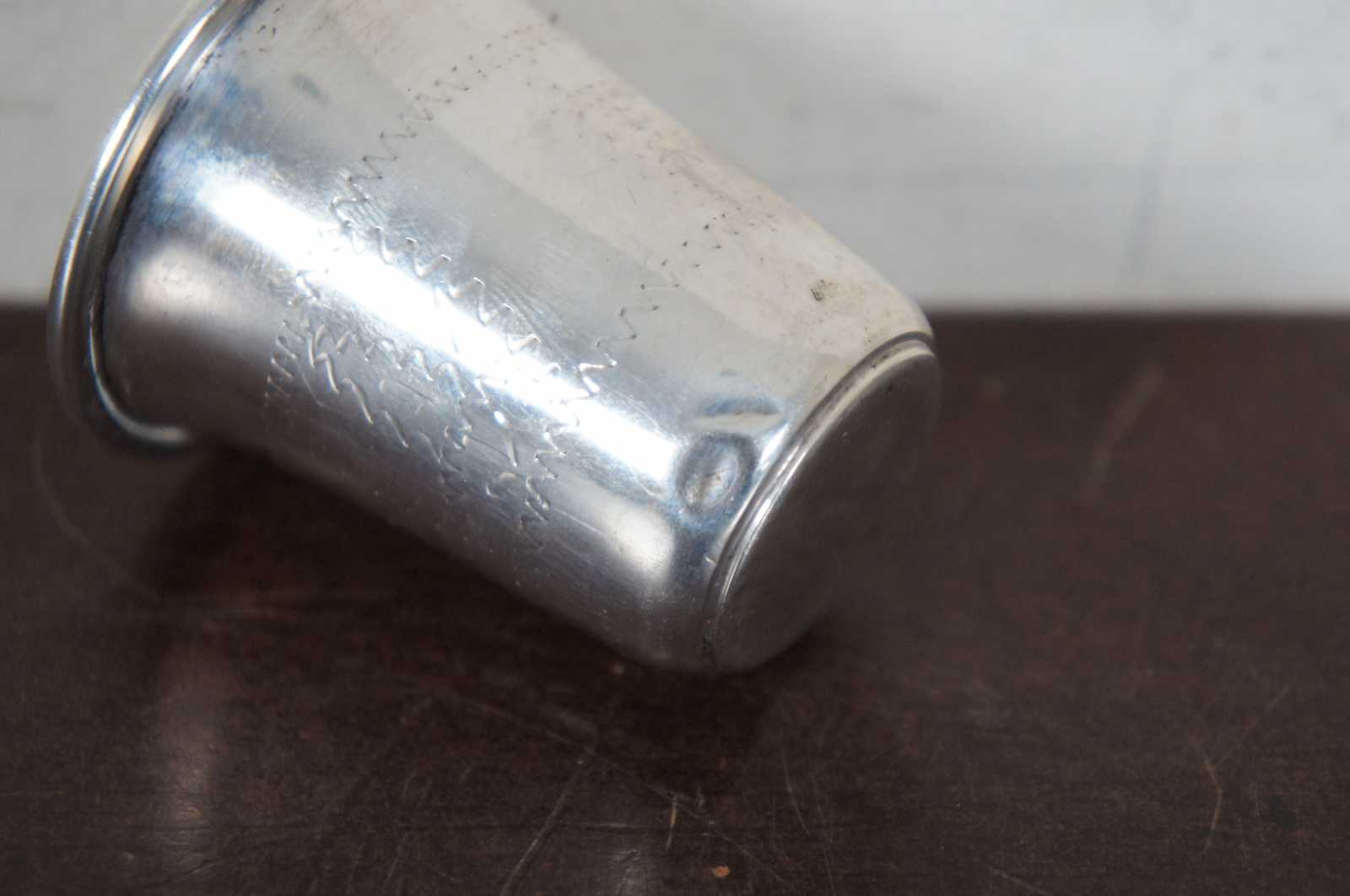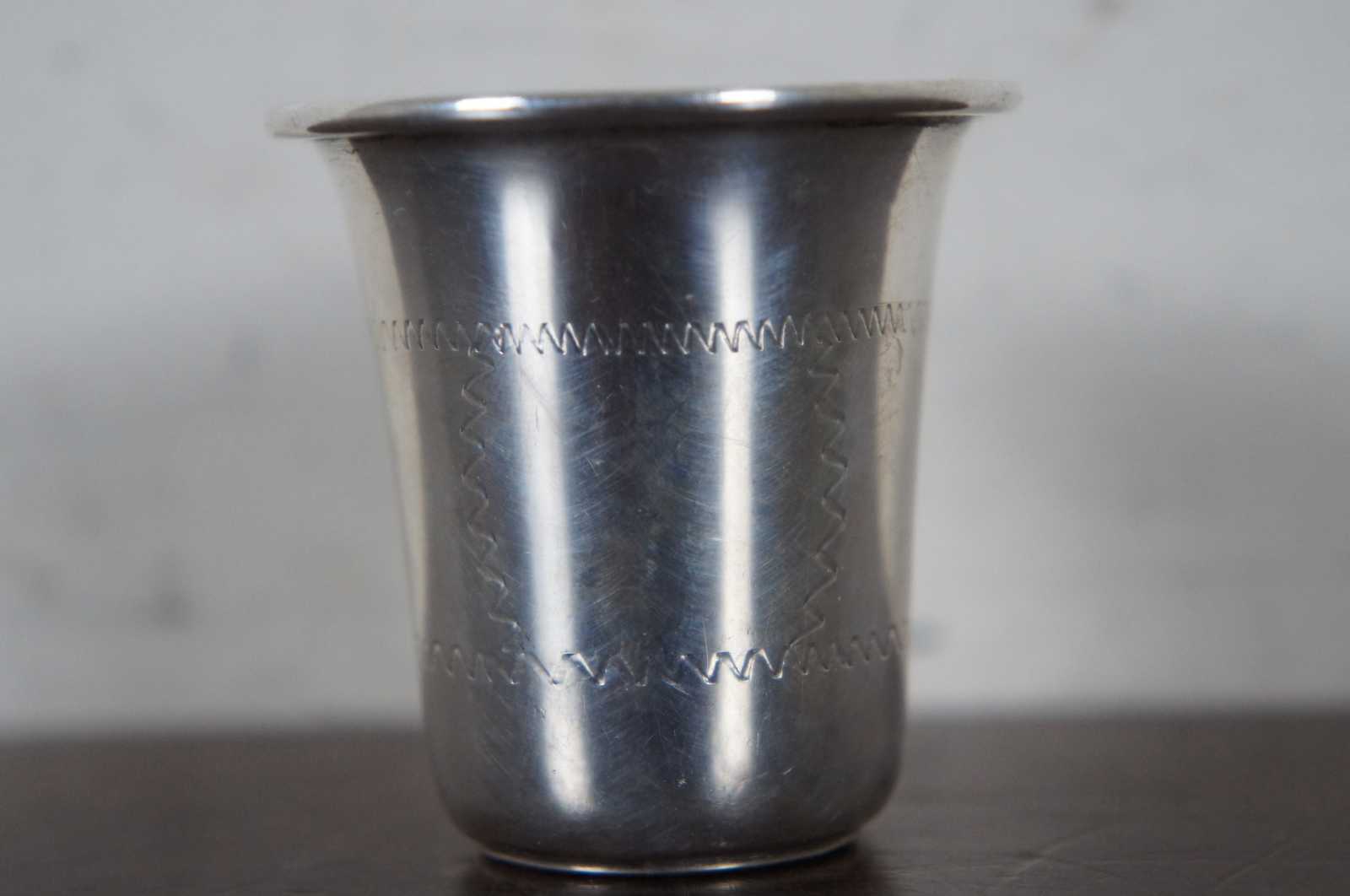 Antique sterling silver kiddush cup with engraved Star of David and leaf motif.