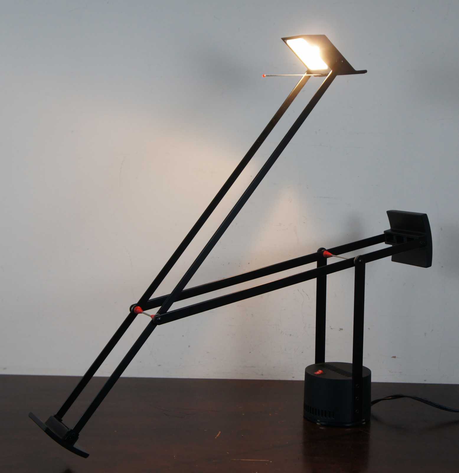 Introduced in 1972, the lamp is built with two counterweights allowing the user to direct the light at will.