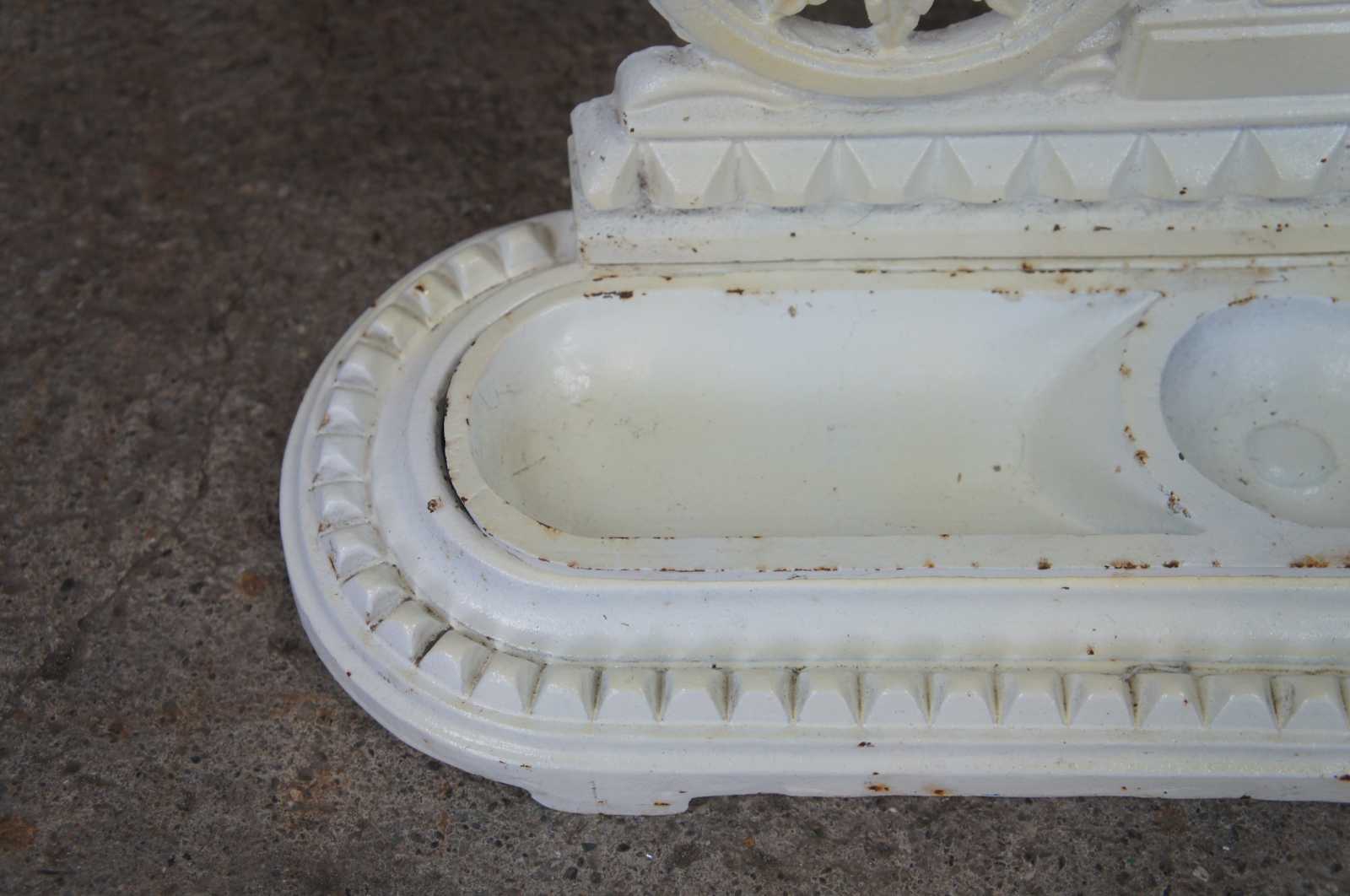 Antique Aesthetic Movement umbrella or cane stand. Made of cast iron featuring ornate detail and distressed white finish.
