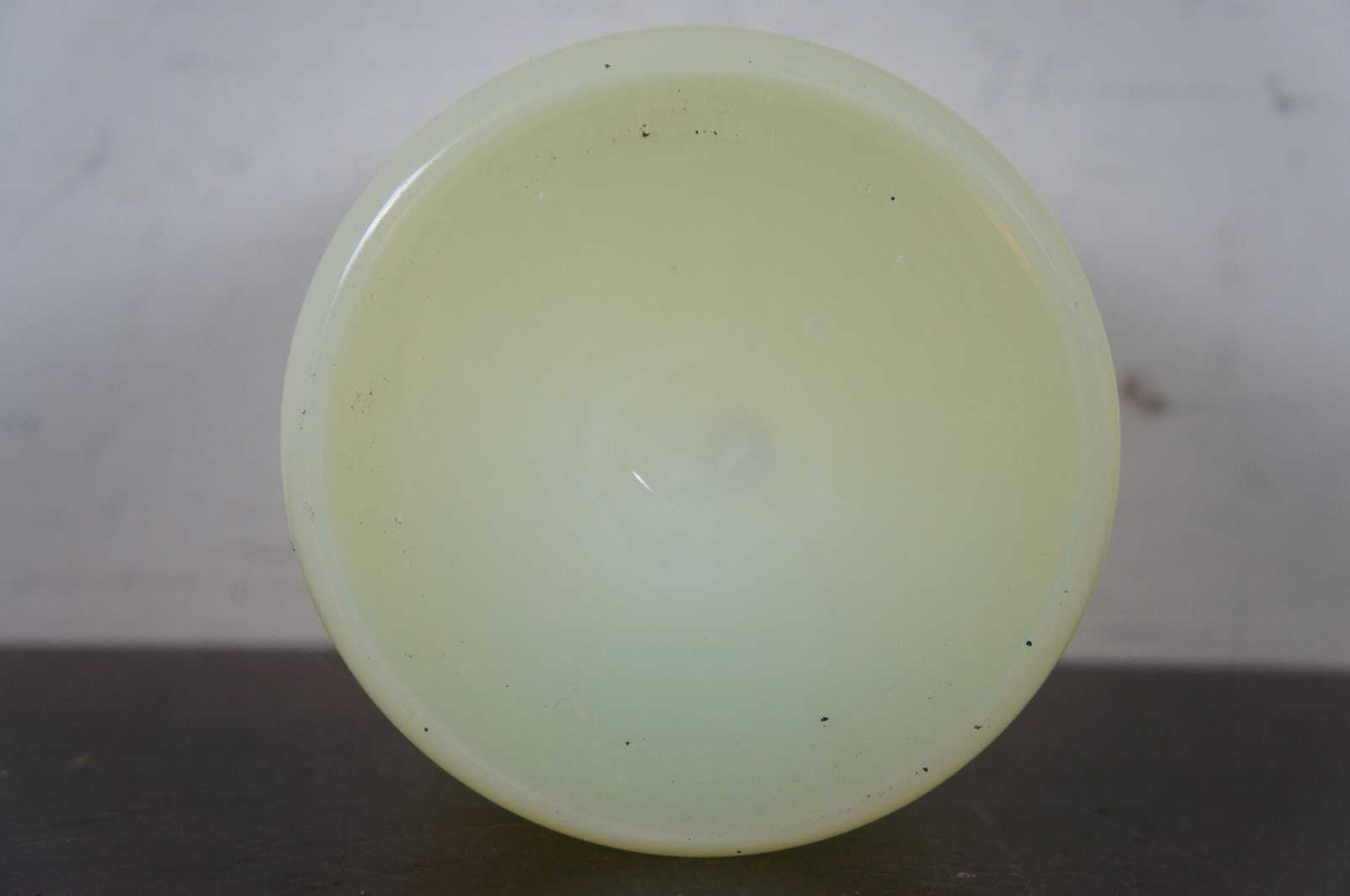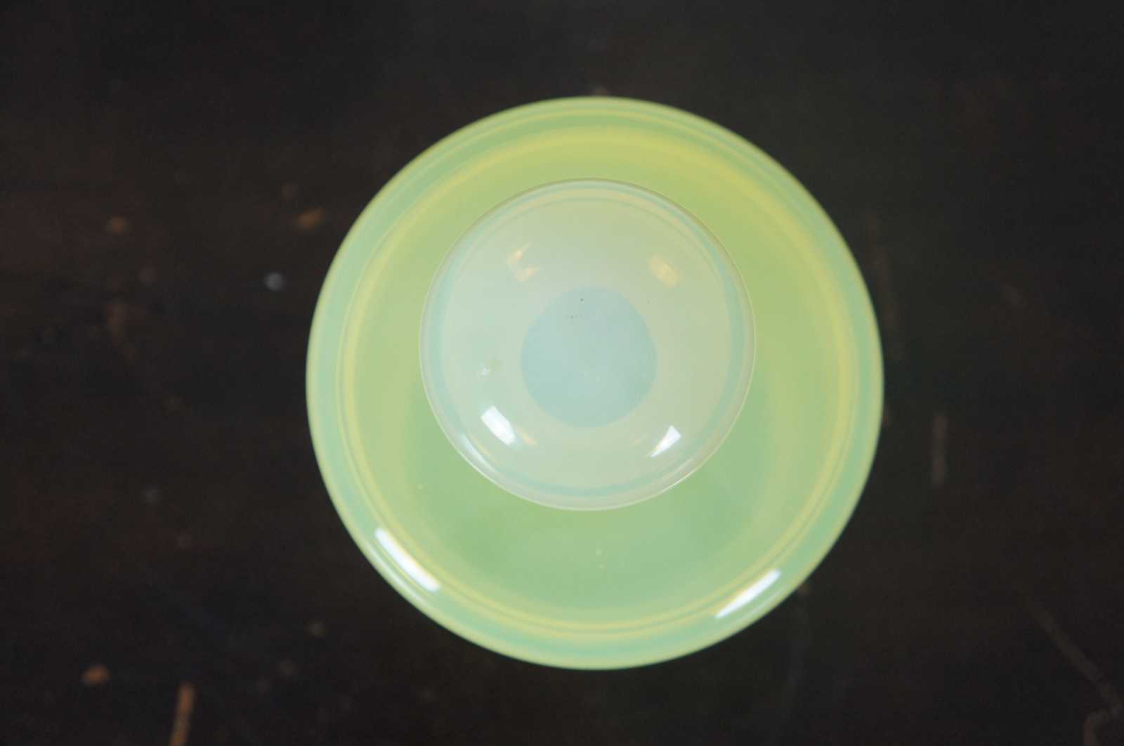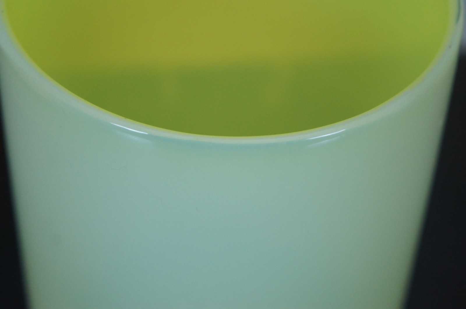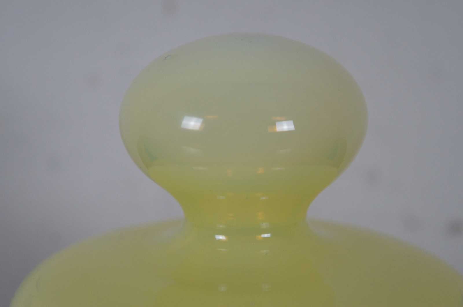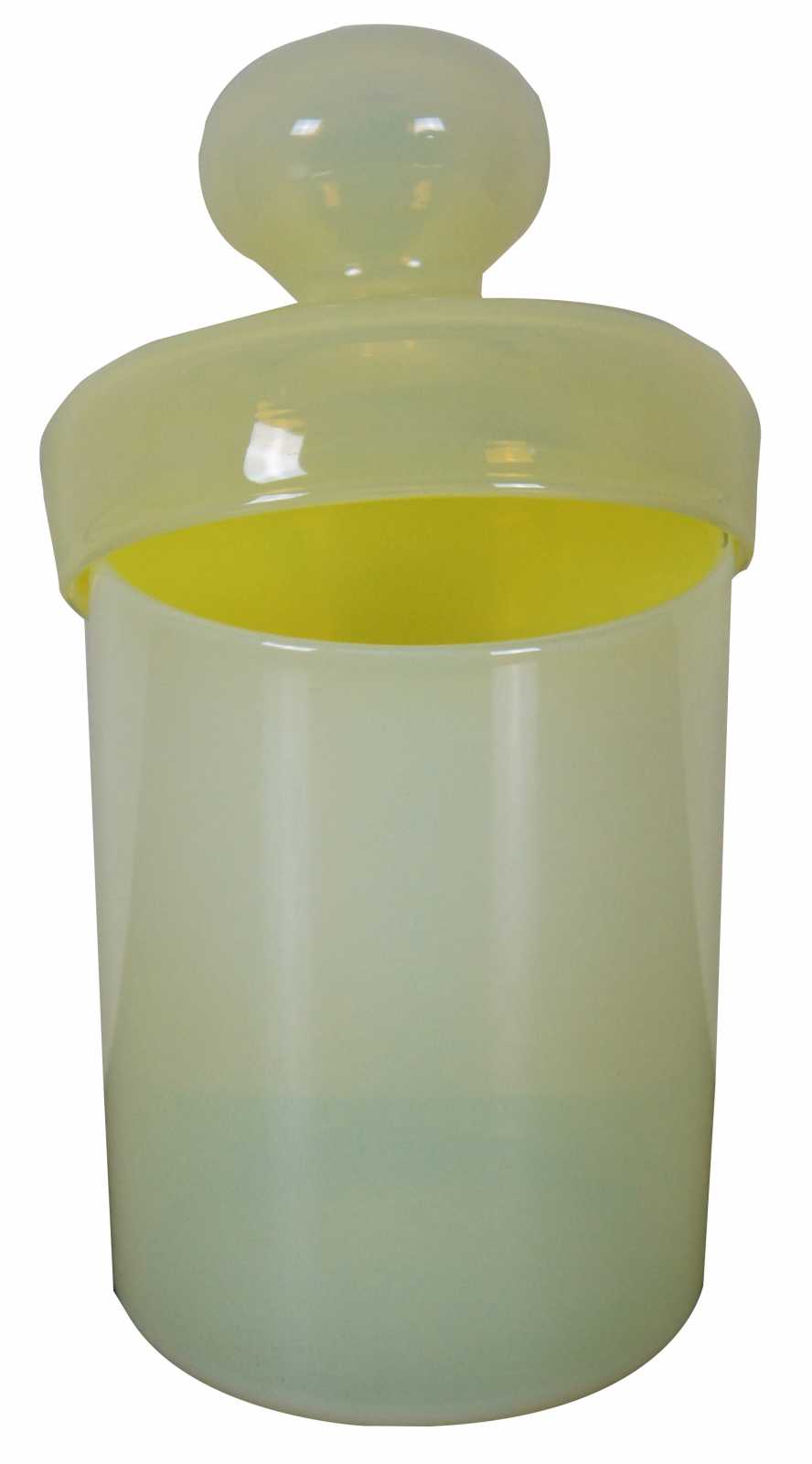 Antique yellow semi-transparent uranium / vaseline glass canister jar with knob handled lid.