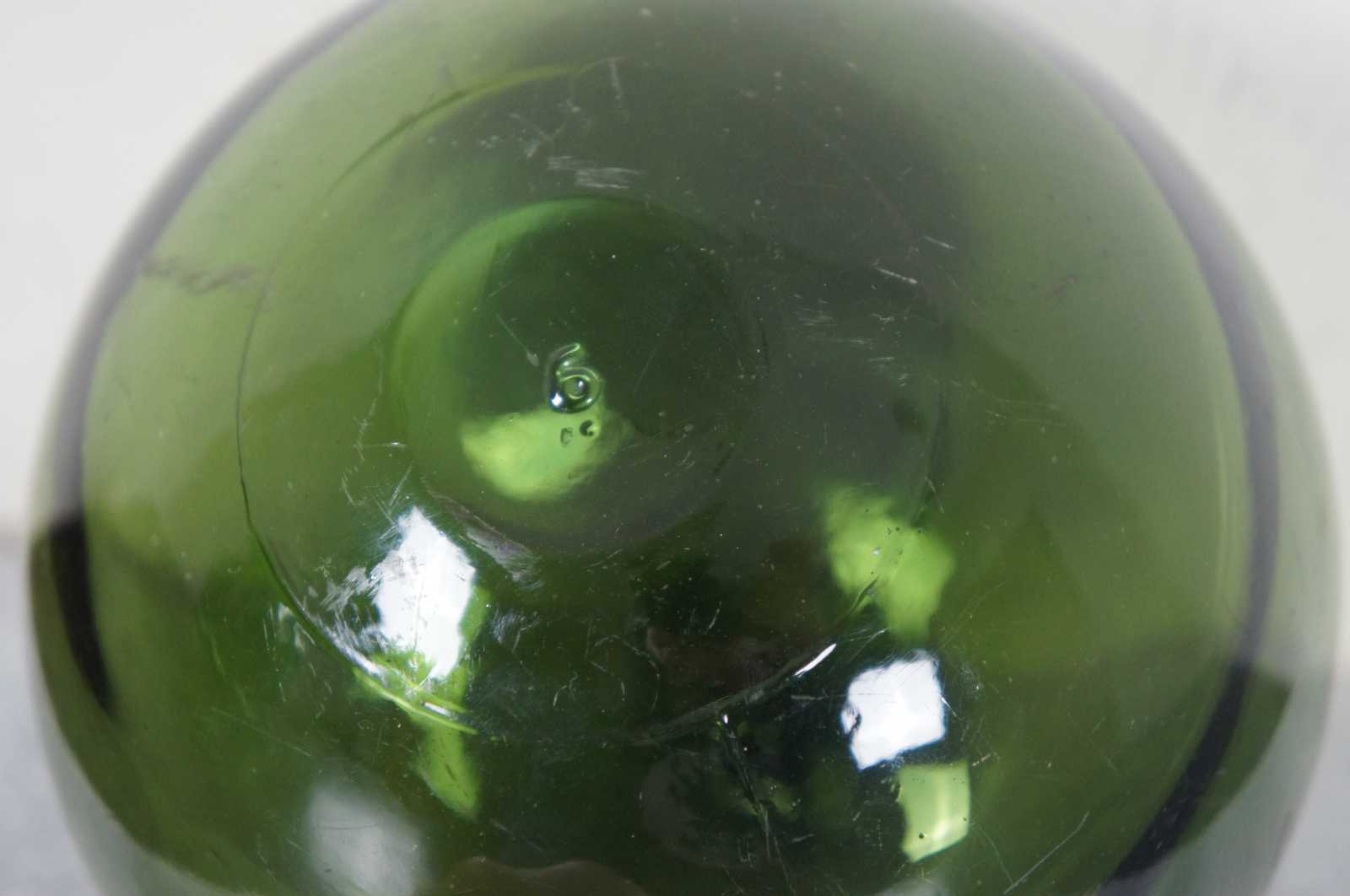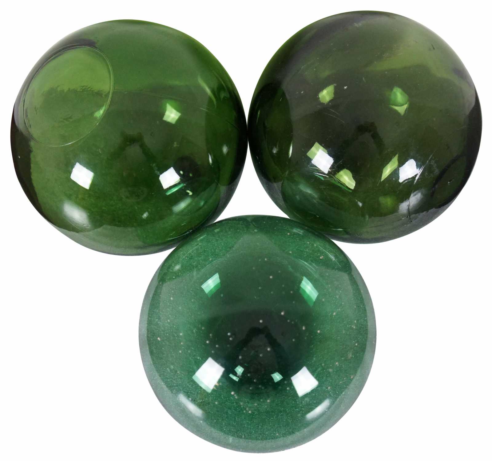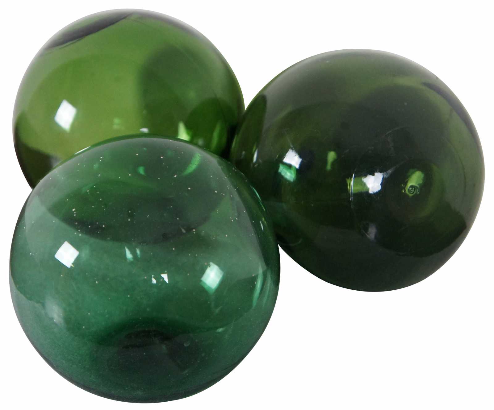 Set of three vintage green hand blown glass Japanese fishing net floats.
