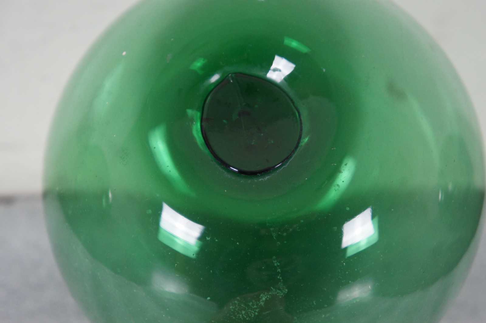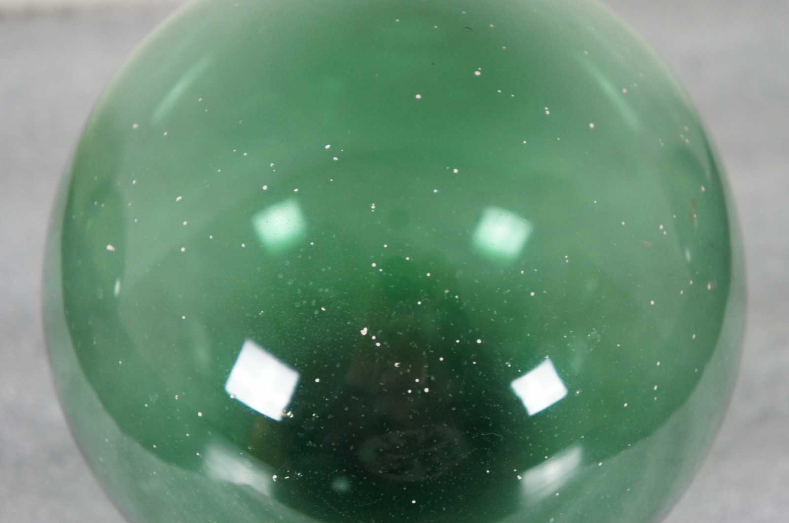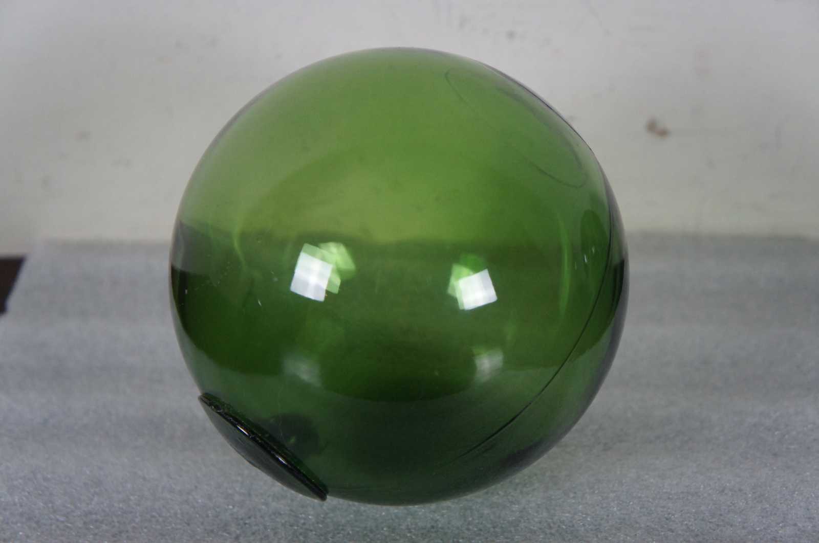 Set of three vintage green hand blown glass Japanese fishing net floats.