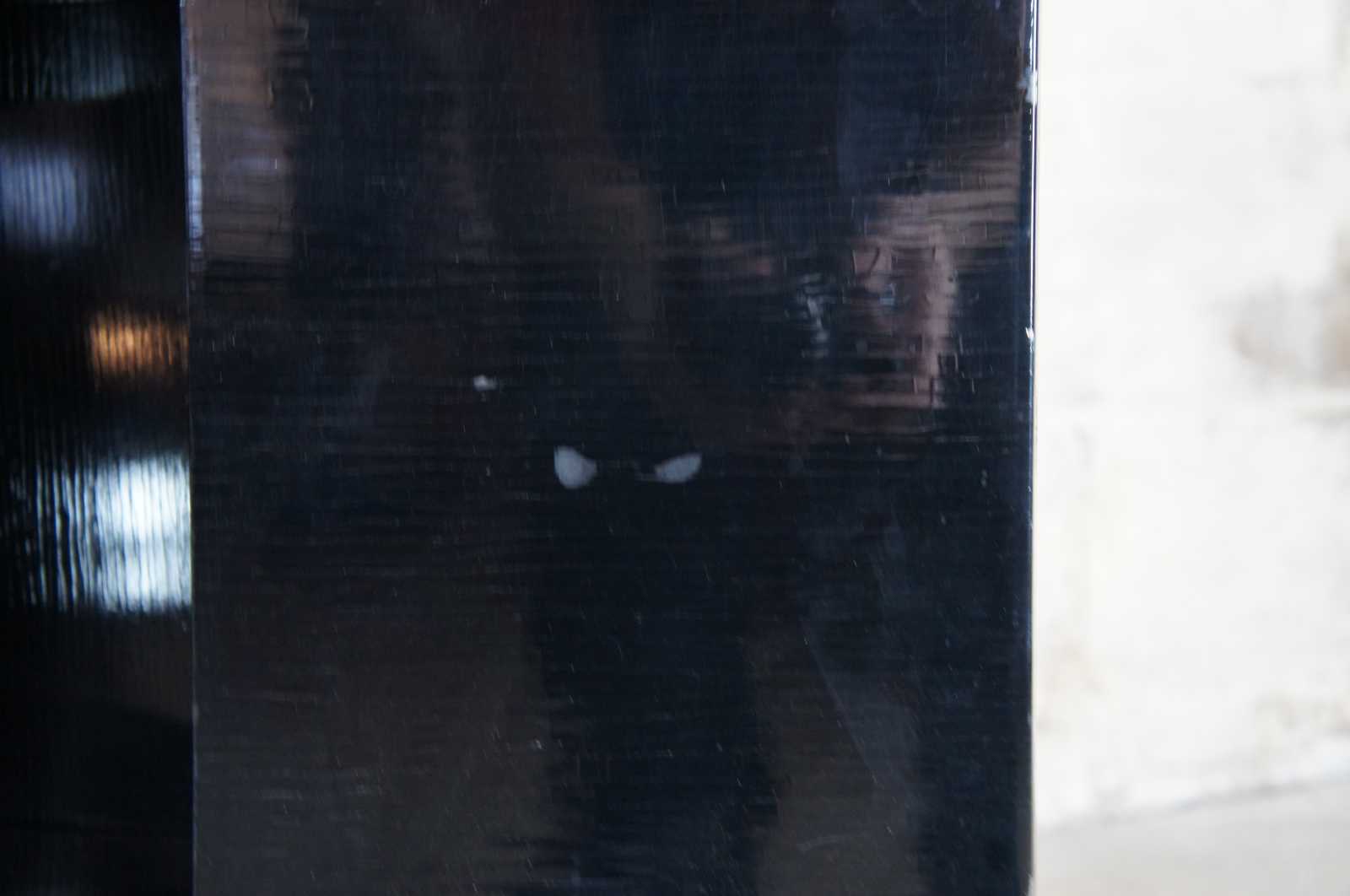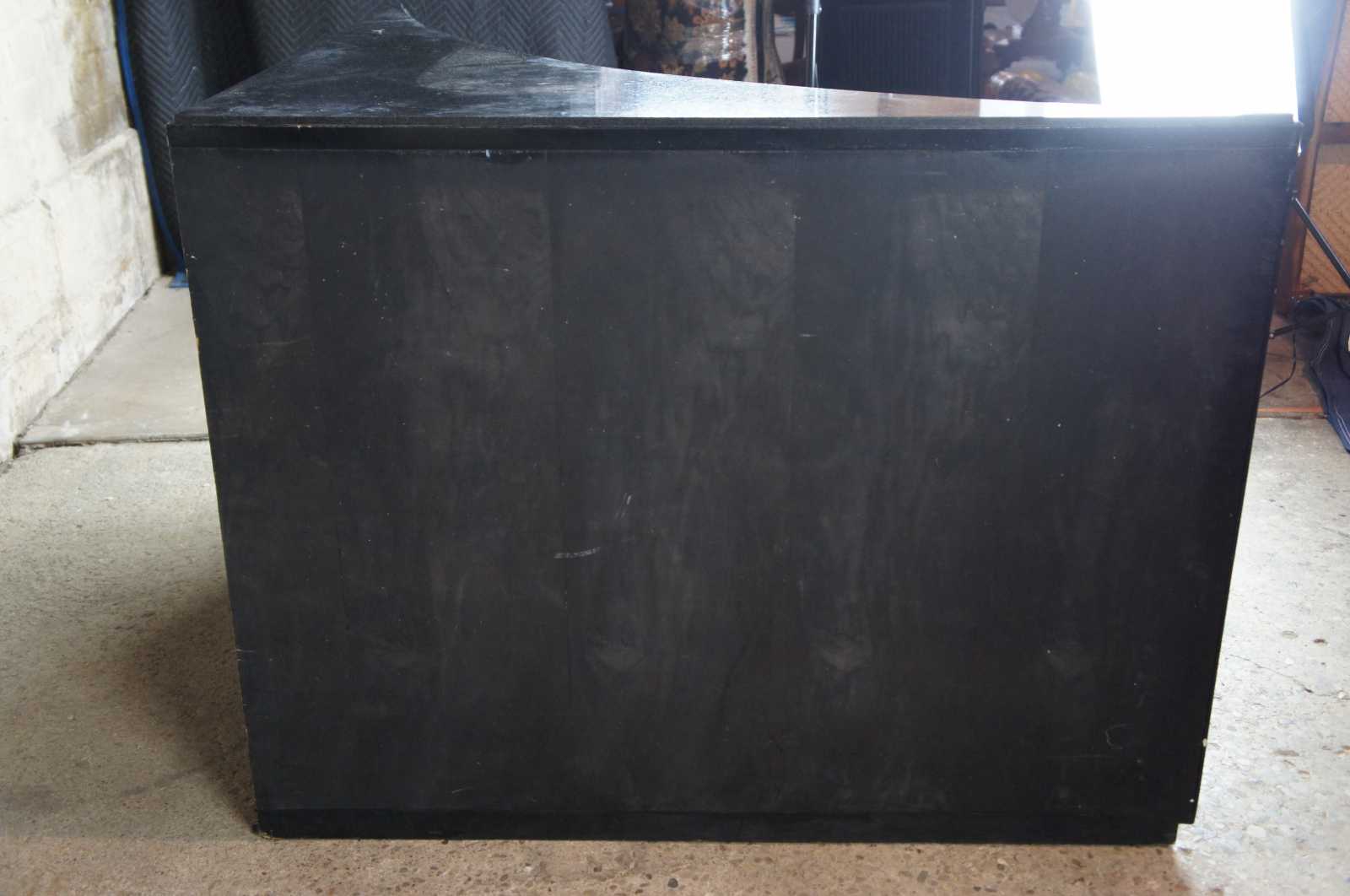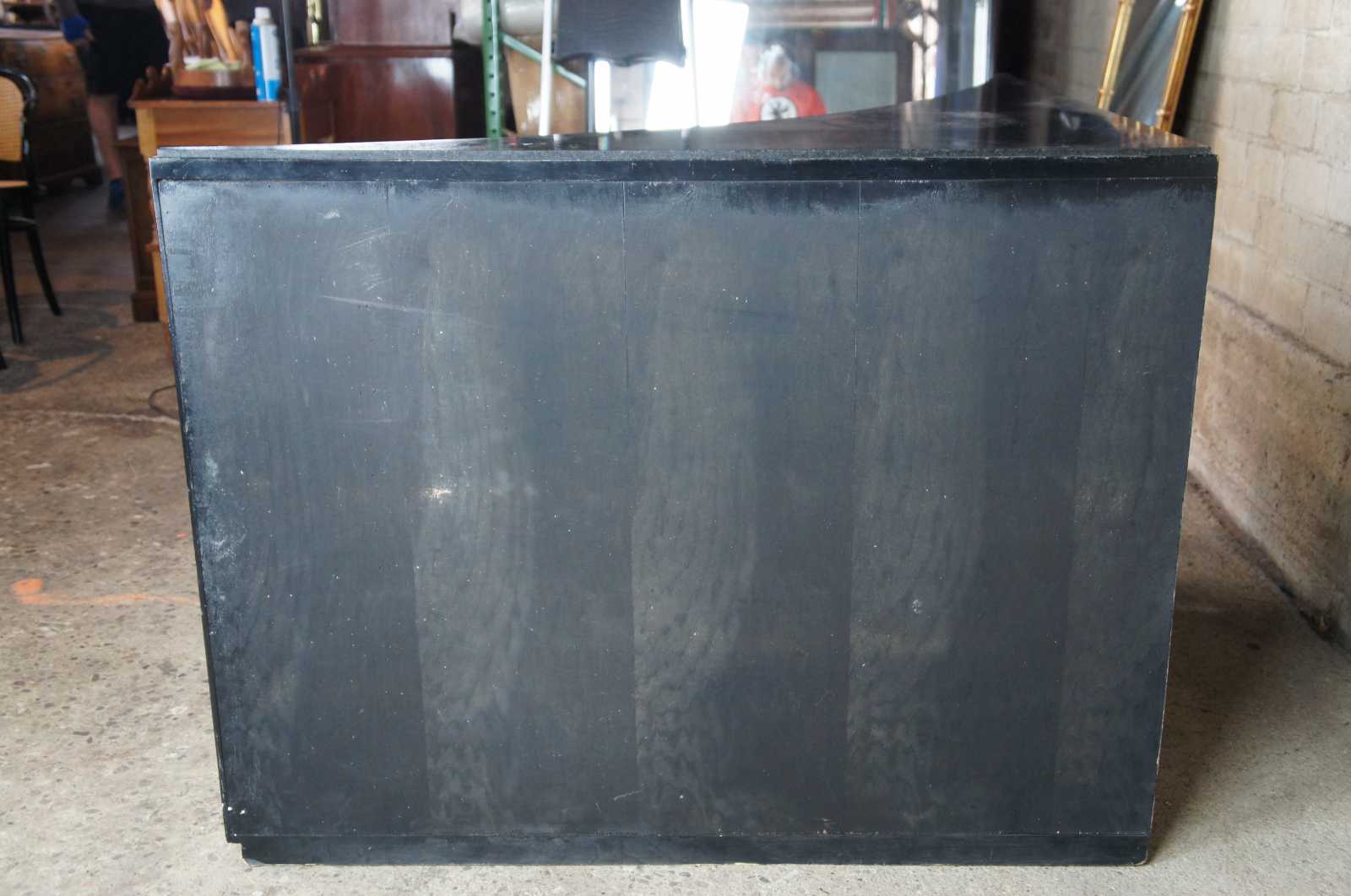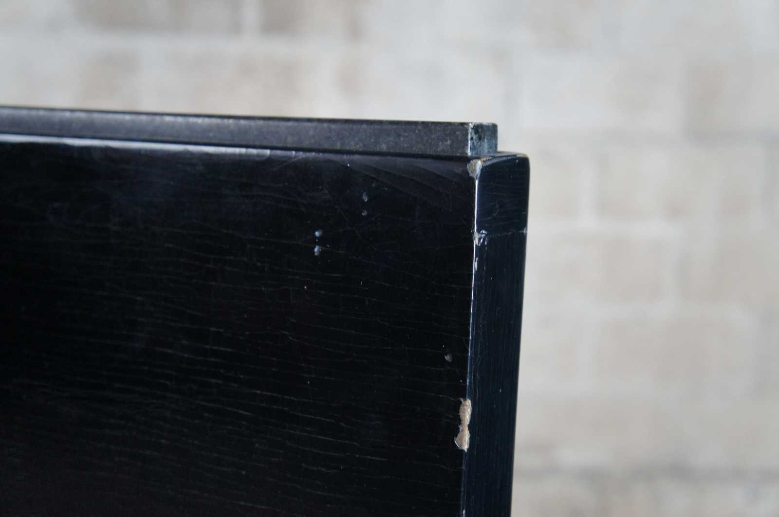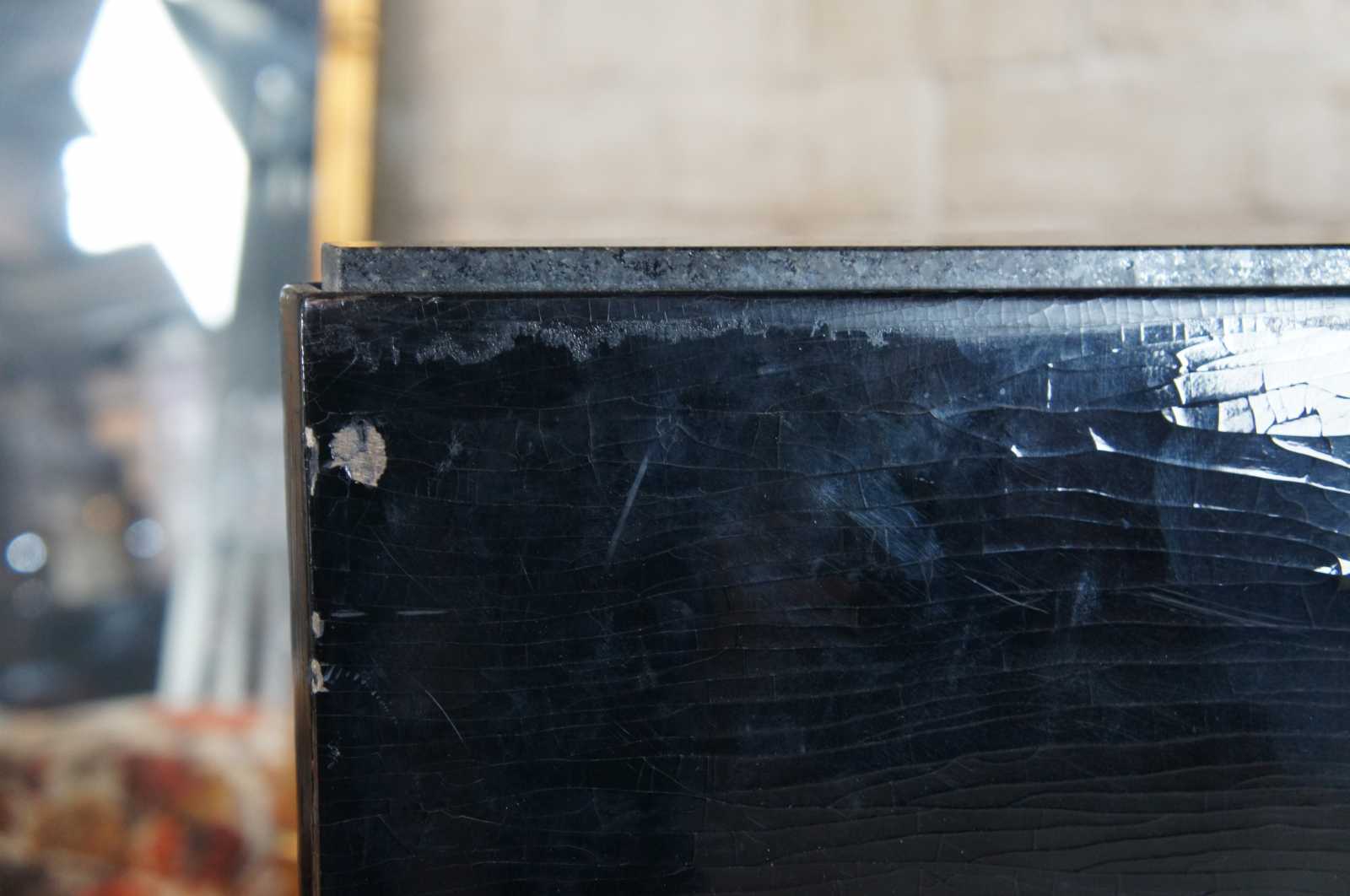 Vintage marble top corner console. Features black marble top and concave curved front with five shelves.