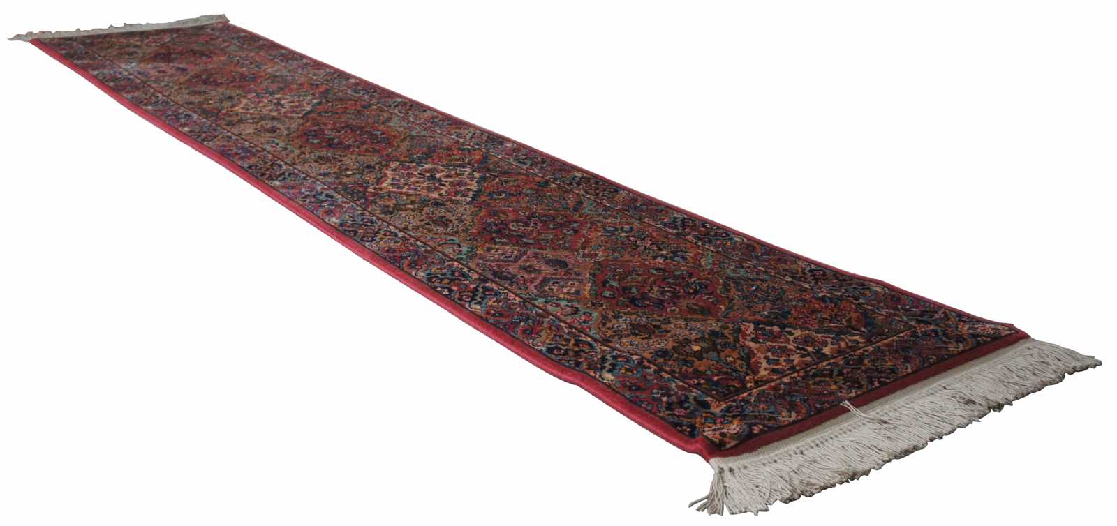 Vintage Karastan 100% worsted wool geometric multicolor panel Kirman rug or carpet. Design #717.