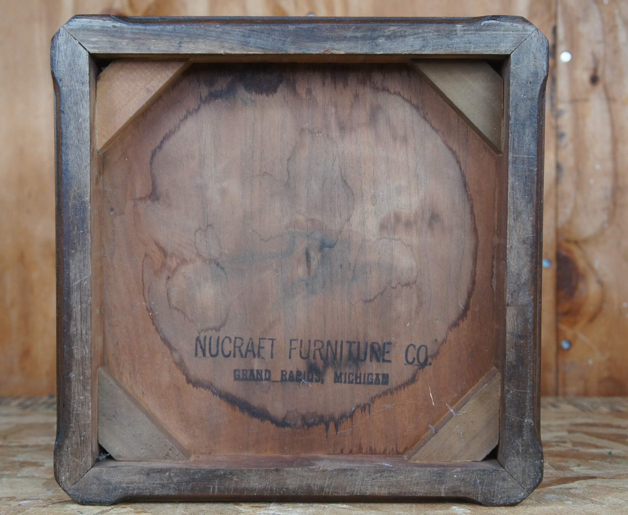 Large mid century modern executive desk walnut waste basket or wood trash can with square tapered form, attributed to Nucraft. Founded in Grand Rapids, Michigan, in 1945 by George W. Schad, Nucraft’s early days were built upon an idea to craft solid walnut Chippendale office accessories, such as coat racks, letter trays, and wastepaper baskets.