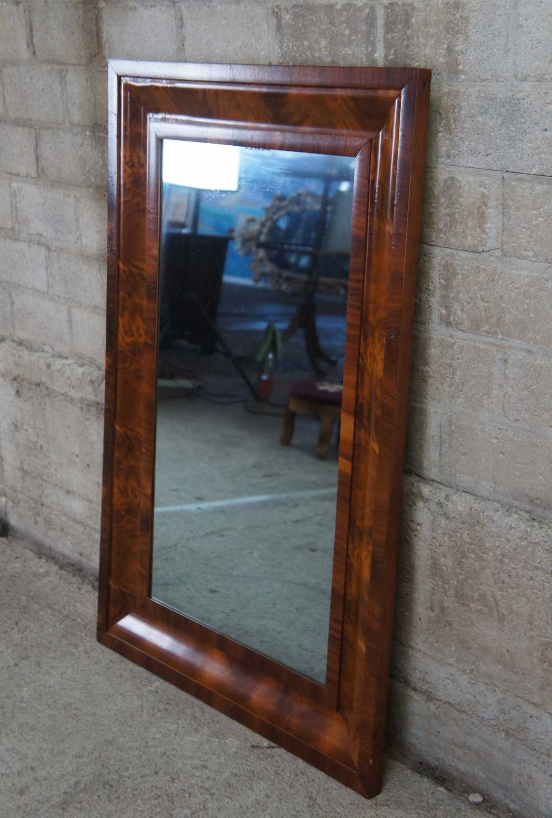 An American Empire mirror, circa 1860s. Features rectangular plate set within an ogee flame mahogany veneererd frame. The mirror can be hung vertically or horizontally.