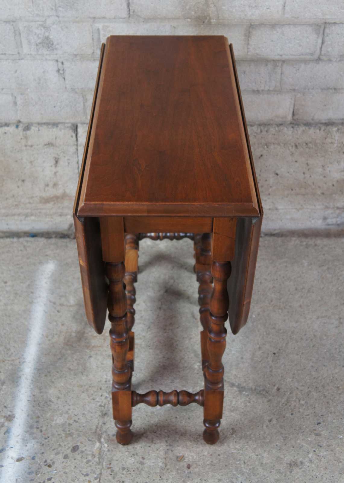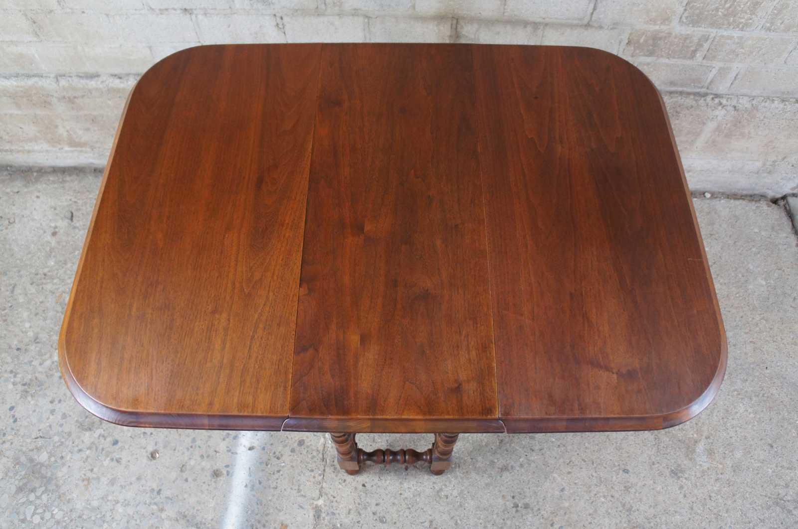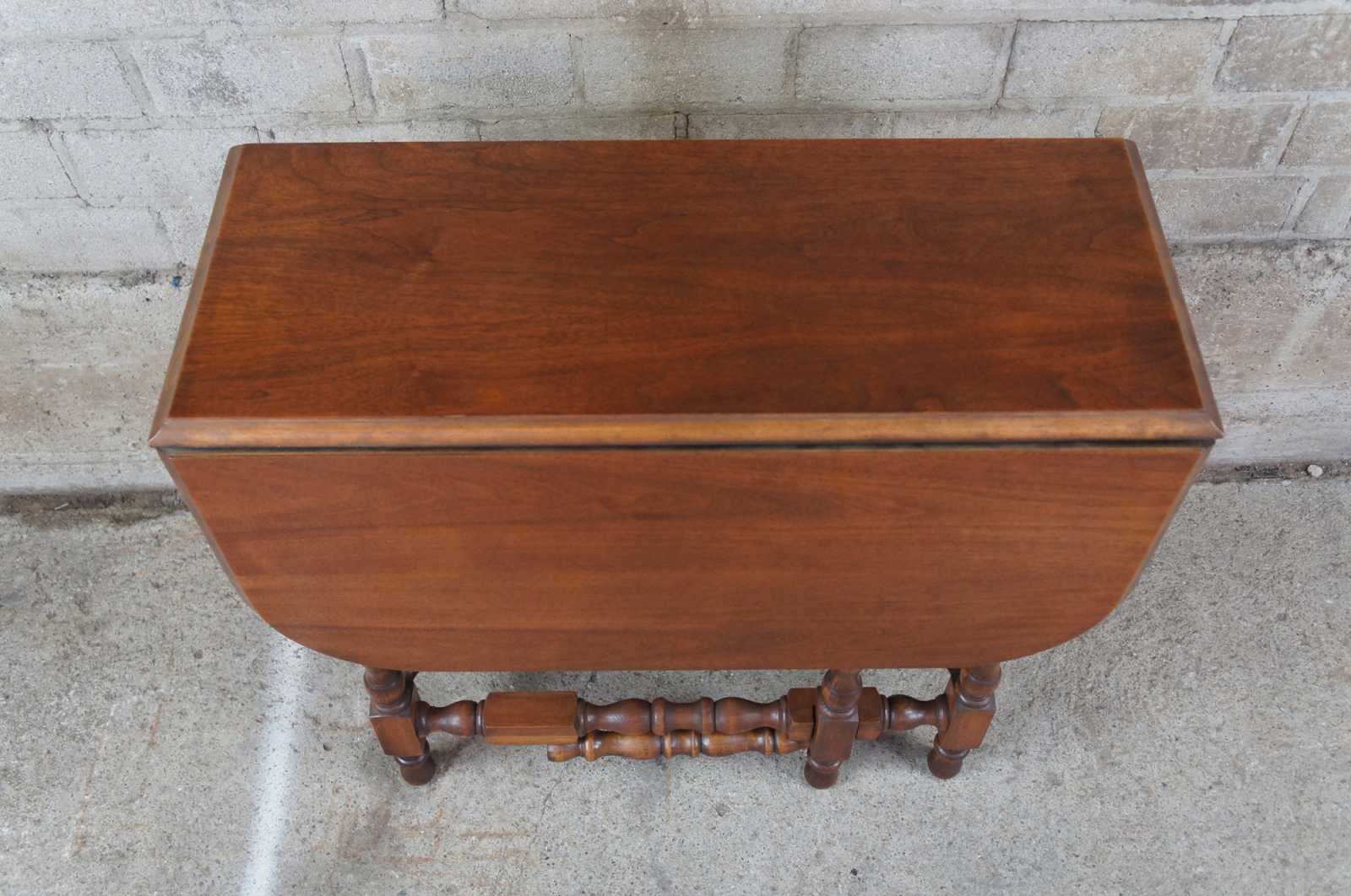 Early 20th century solid walnut drop leaf or gateleg table with drawer. Features an ogee edge and turned supports in William & Mary style.