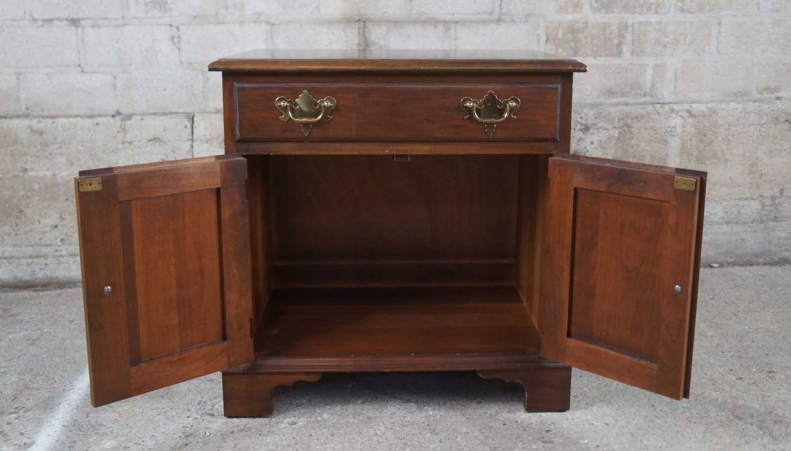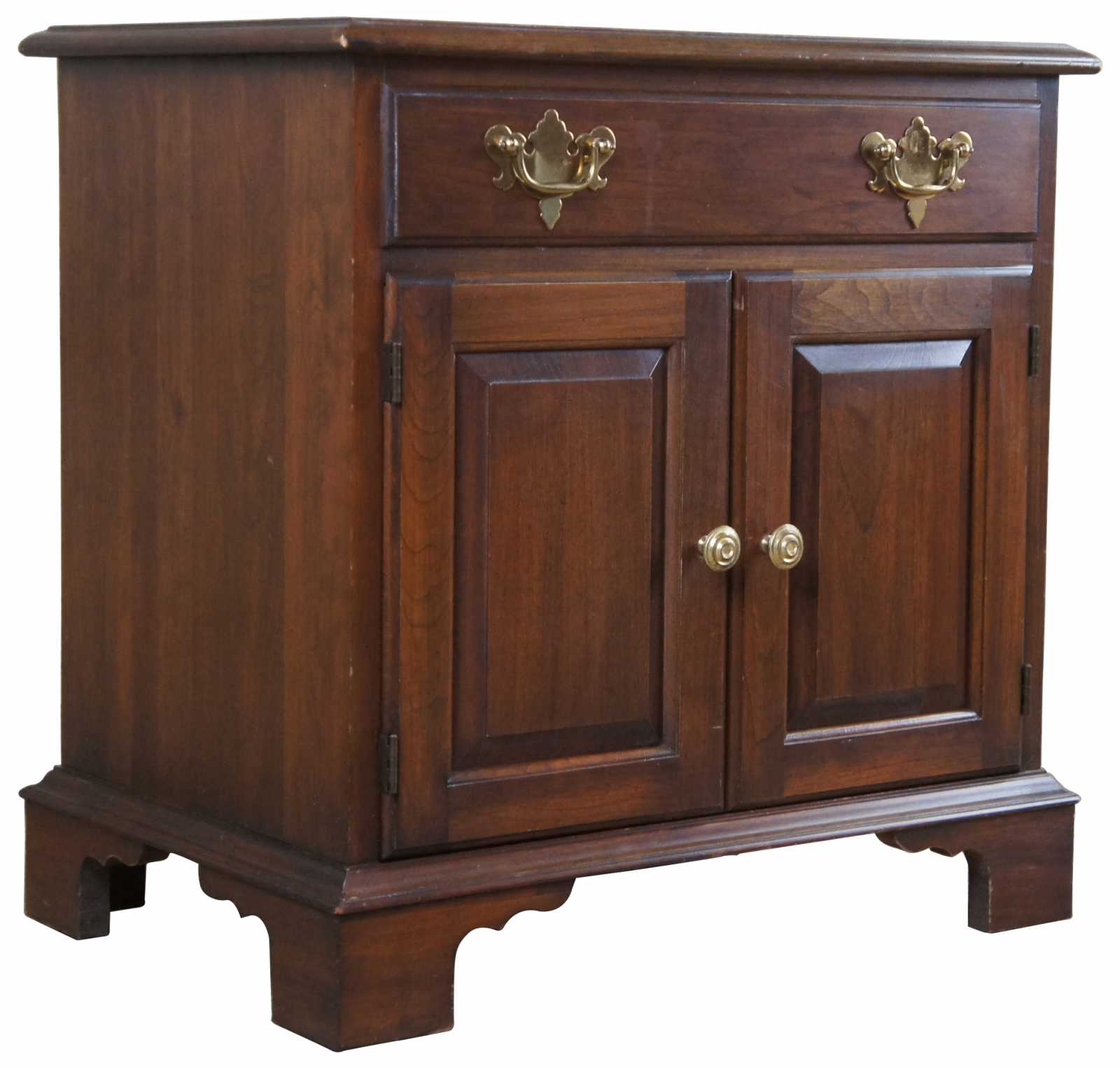 Vinrage Pennsylvania House nightstand or cabinet. Made of cherry featuring one upper drawer and a cabinet with two doors and brass federal style hardware.