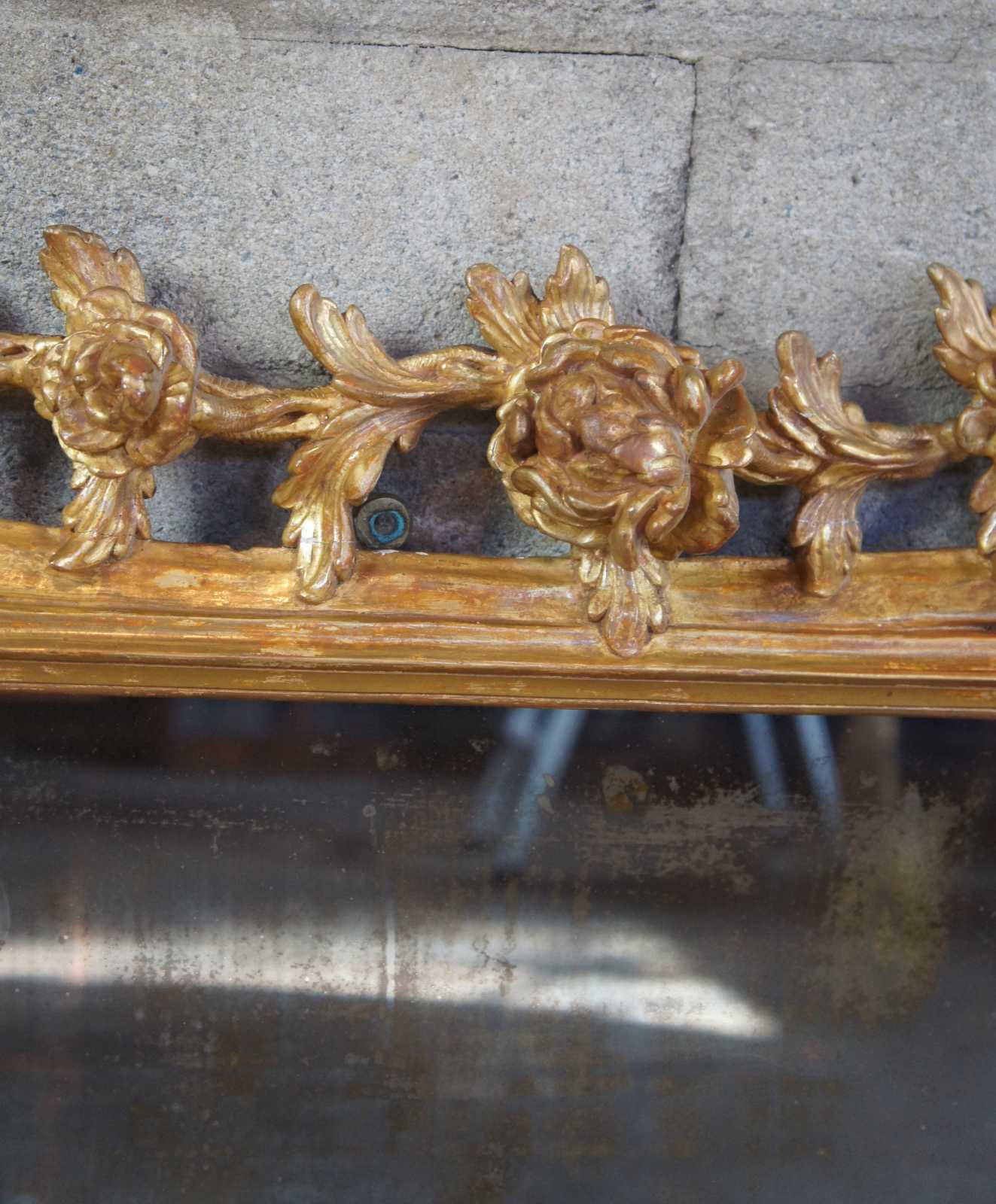 Good antique condition, light wear and distressing commensurate with age and use, few chips to frame, silver loss / clouding to mirror, see pictures.