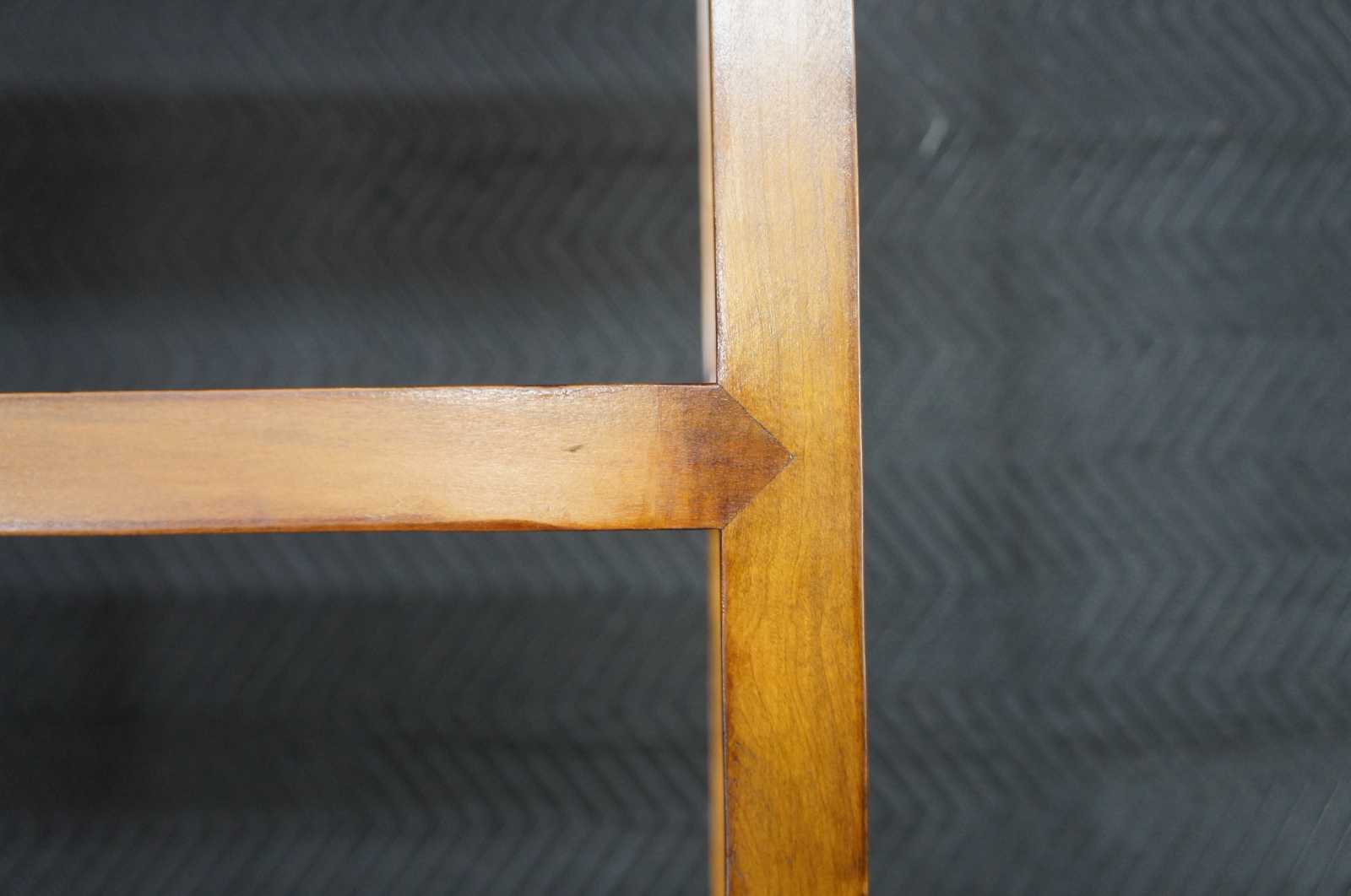 Late 20th century large scale mission style oak bookcase or etagere. Iconic open design with 5 shelves allowing for a plethora of storage.