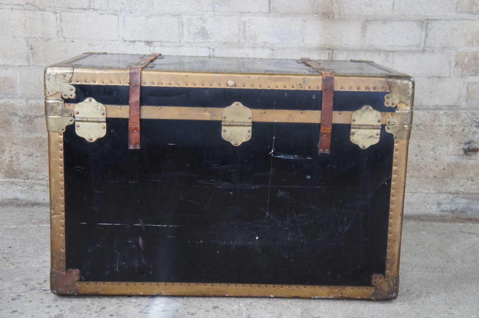 Fair condition, functions well, wear and distressing, heavy wear to bottom, scratching, scuffing, some rust, wear to leather, no lock or key, see pictures.