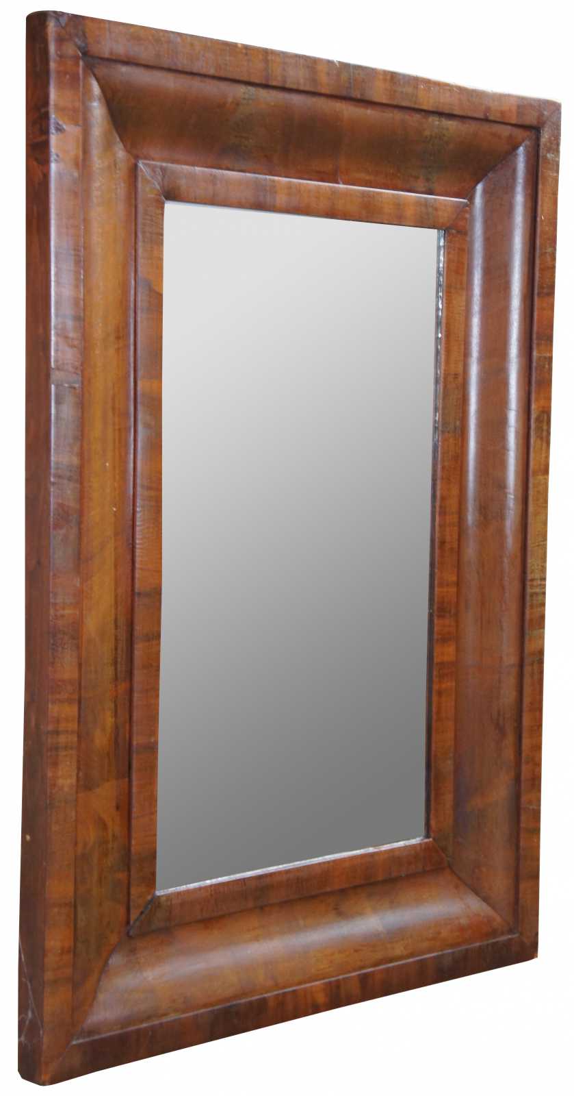 An American Empire mirror, circa 1880s. Features rectangular plate set within an ogee mahogany veneererd frame.