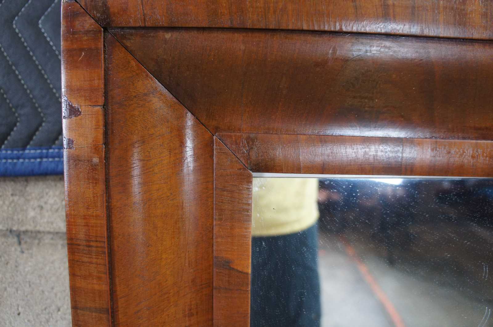 Good antique condition, light wear and distressing, some veneer wear, slight separation at one corner, few scuffs on mirror, see pictures