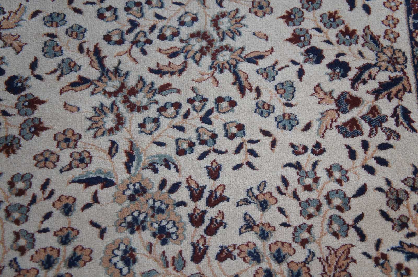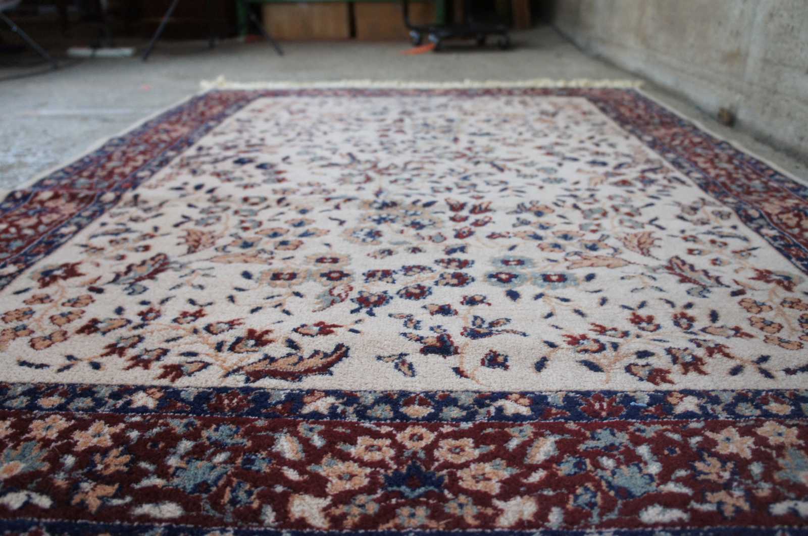 Vintage Karastan KaraMar area rug, carpet or mat. Made of 100% worsted wool in Belgium, this beauty features the floral Kirman pattern, design number 300-1020, RN 14837.