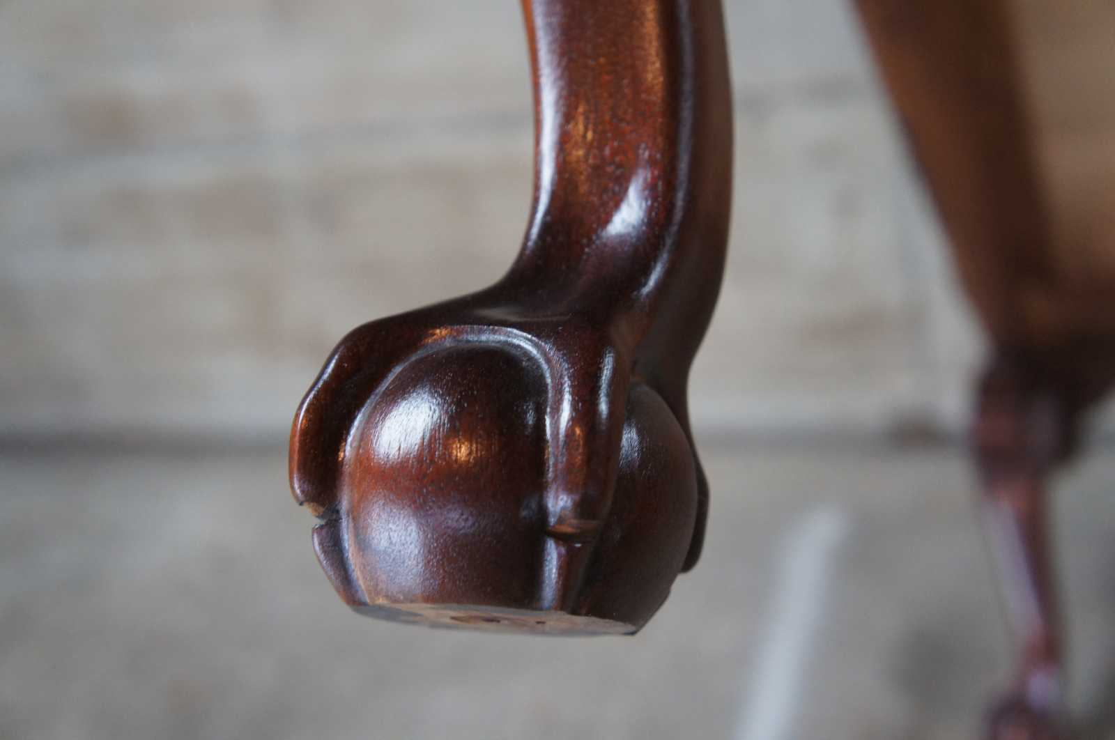 Vintage 1994 Thomasville coffee table. Made of mahogany with a rectangular form and crotch mahogany top. Features gadrooning along the apron, cabriole legs with acanthus accents and ball and claw feet.