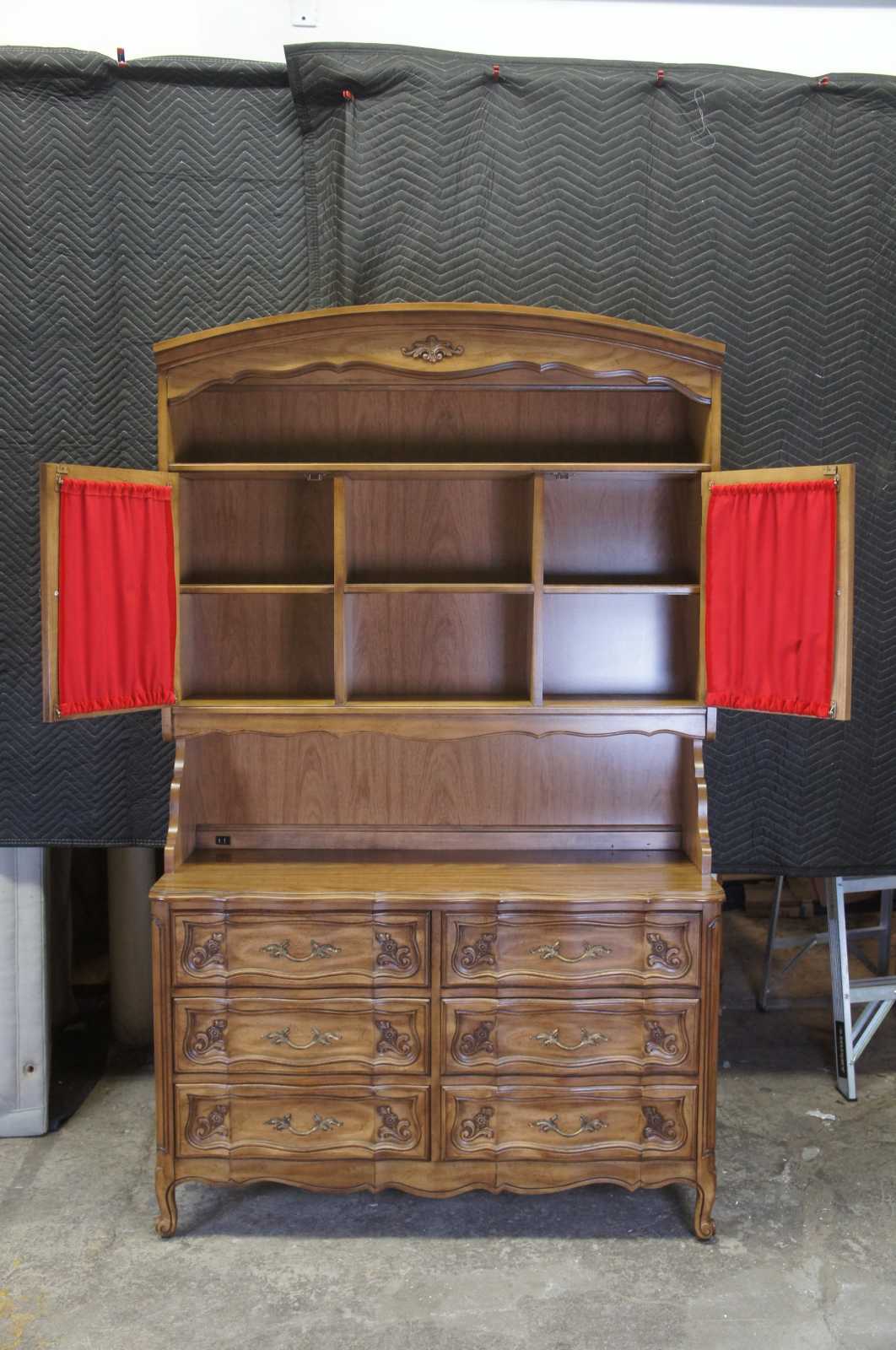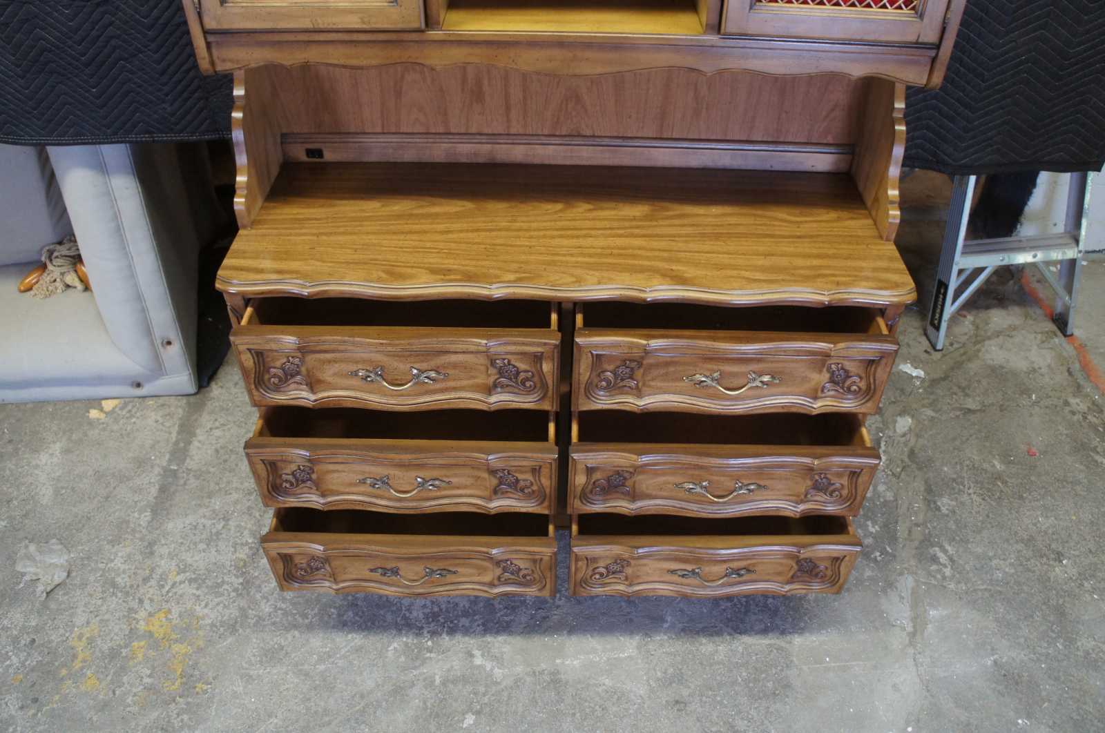 Circa 1960s French Provincial dresser with hutch by Basic Witz. Made from fruitwood with a serpentine form and carved accents.
