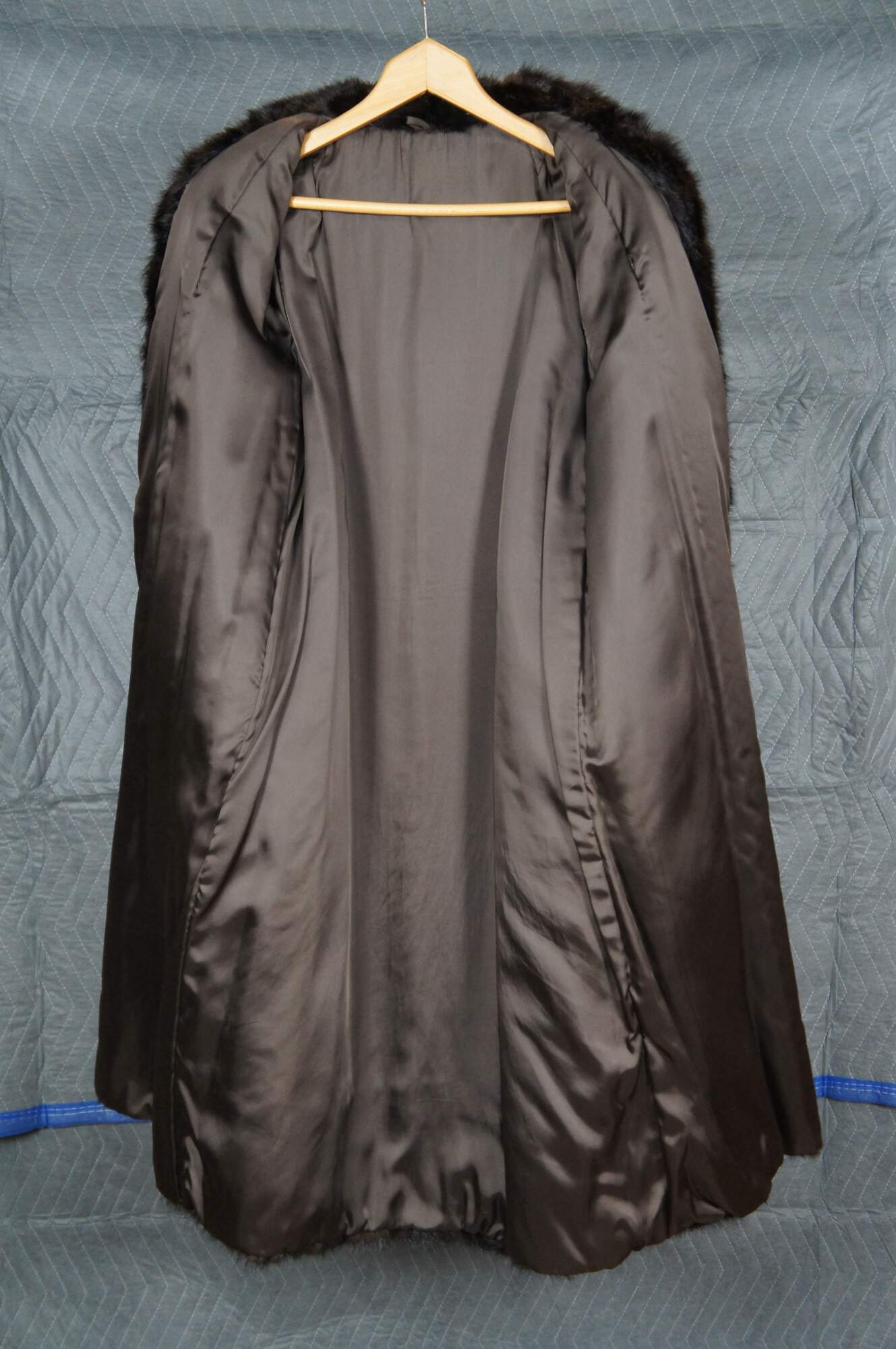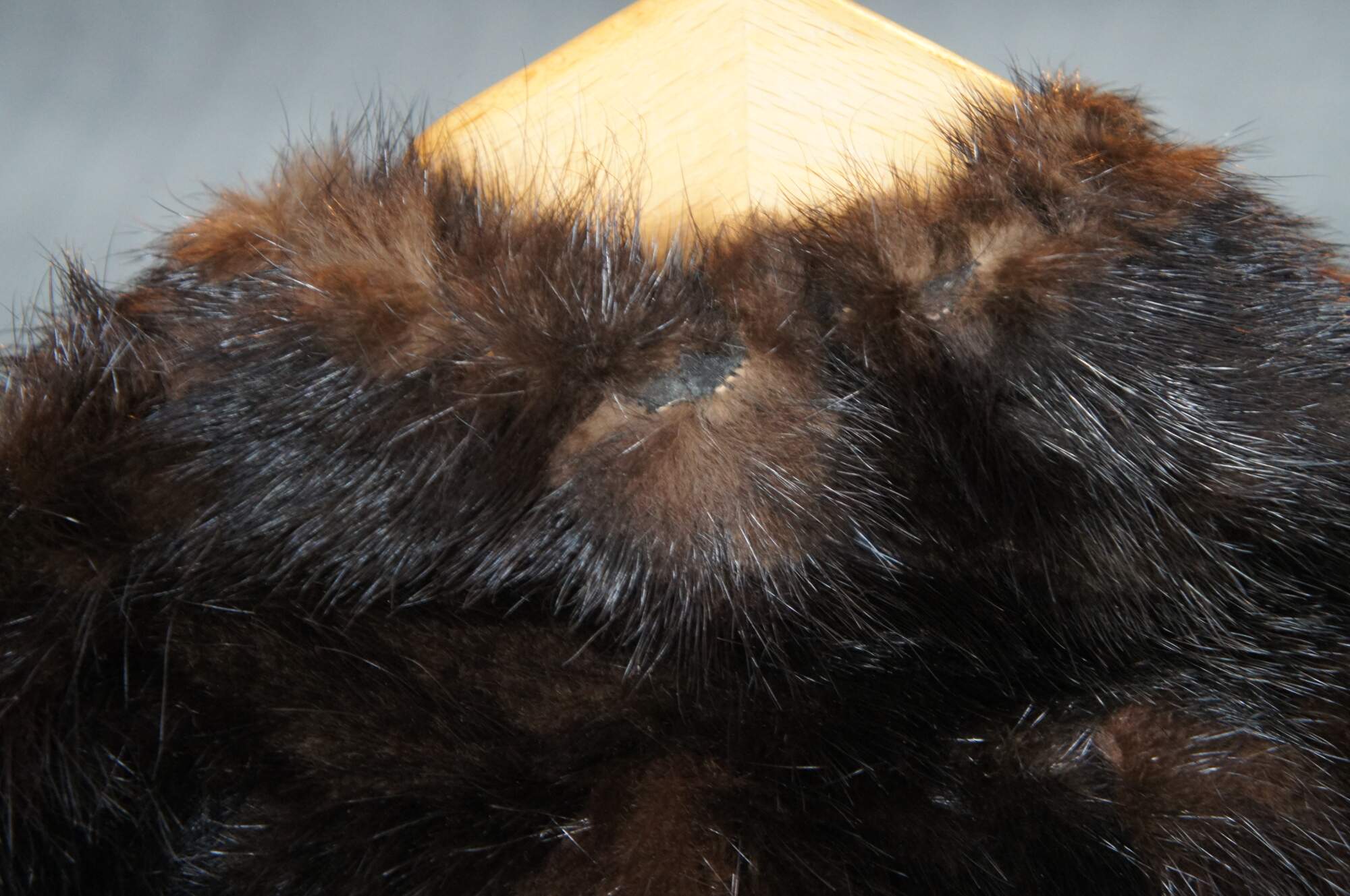 Good overall - One loose hook; small hole in seam, fur loss back of collar.