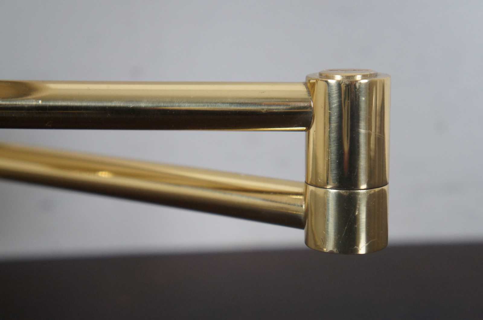 Pair of brass swing arm wall sconces made in Spain by Metalarte for George W. Hansen Lamps of New York.