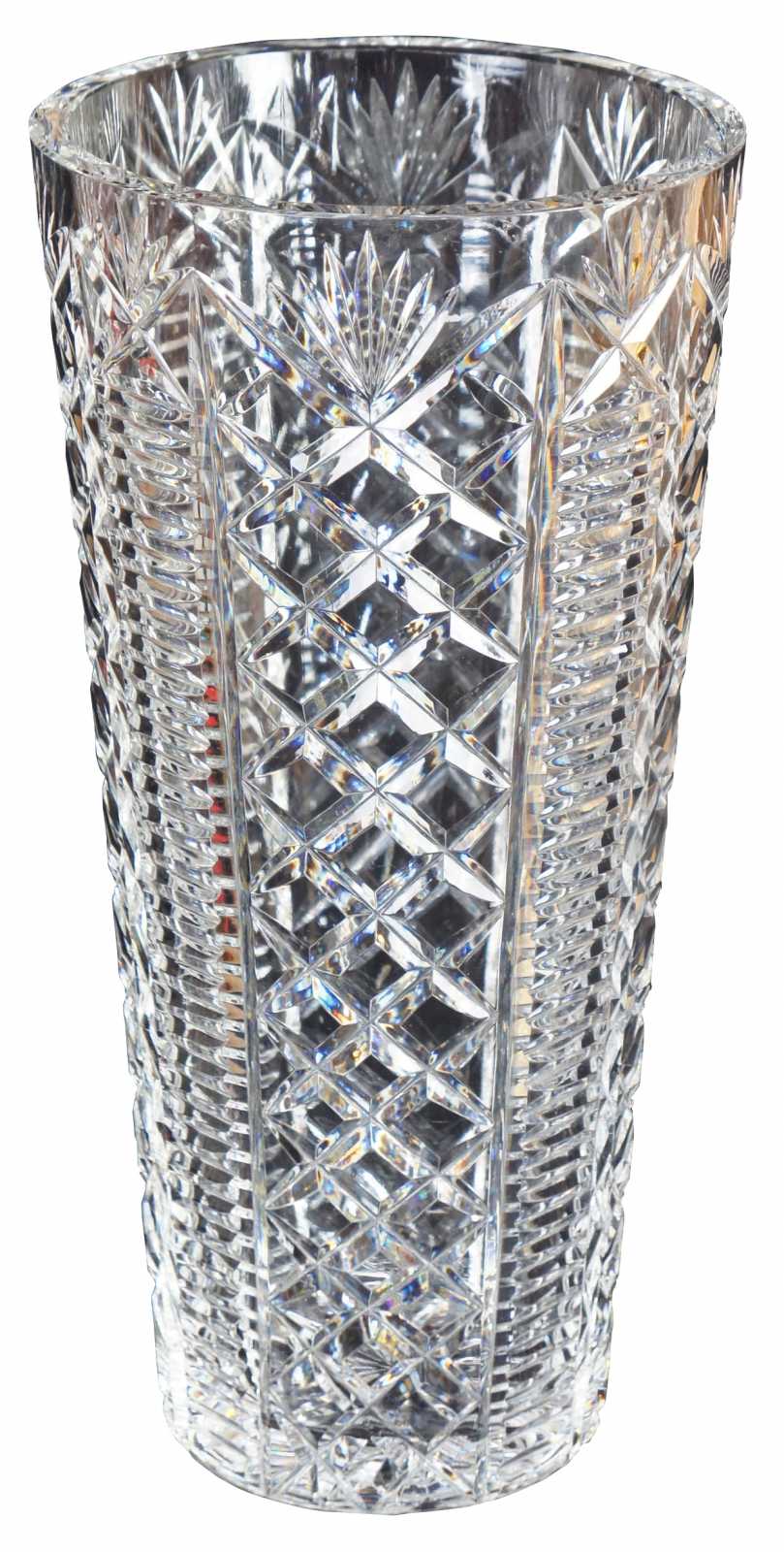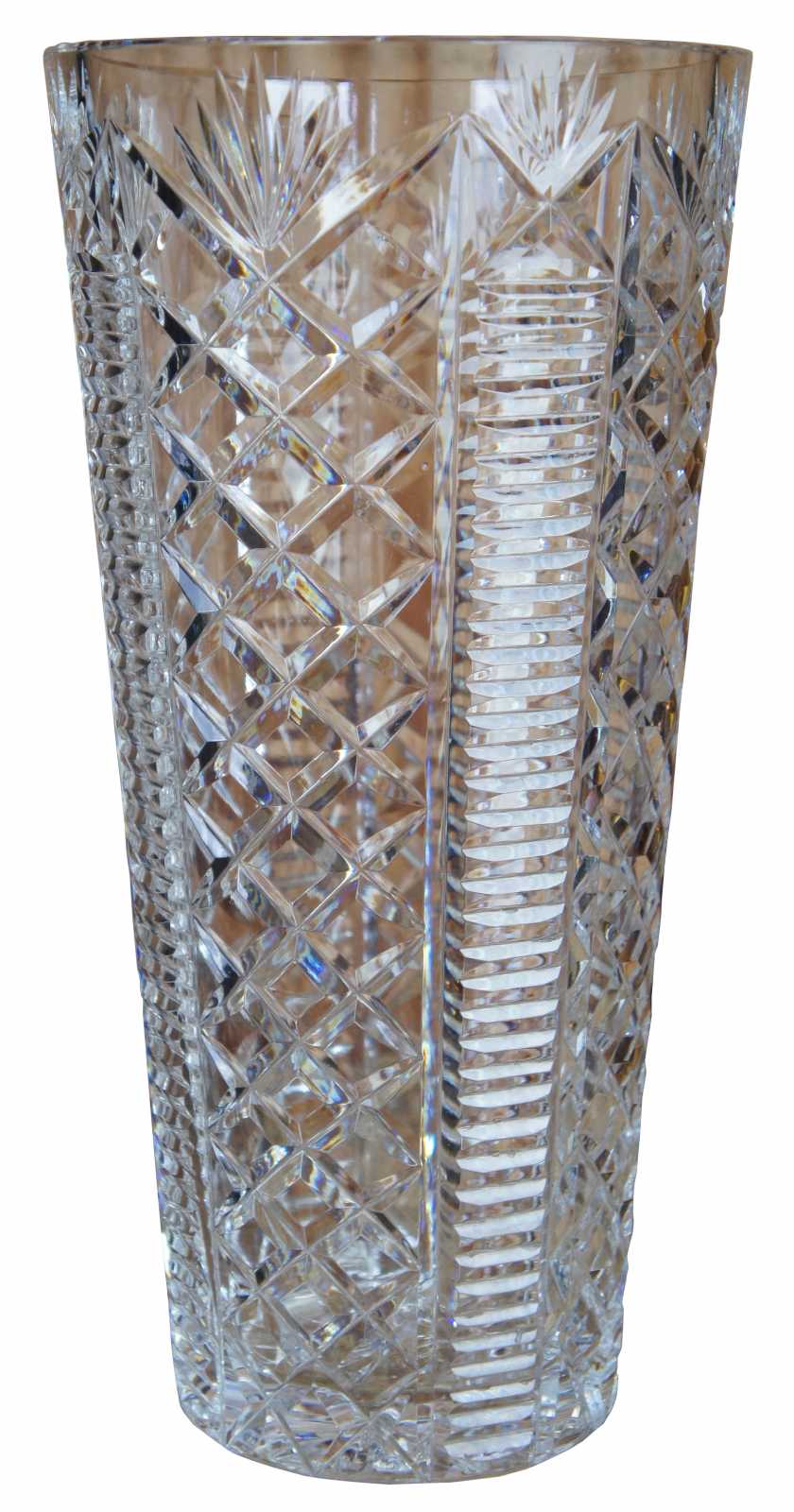Vintage Waterford cut crystal glass flower vase in the Clare pattern.