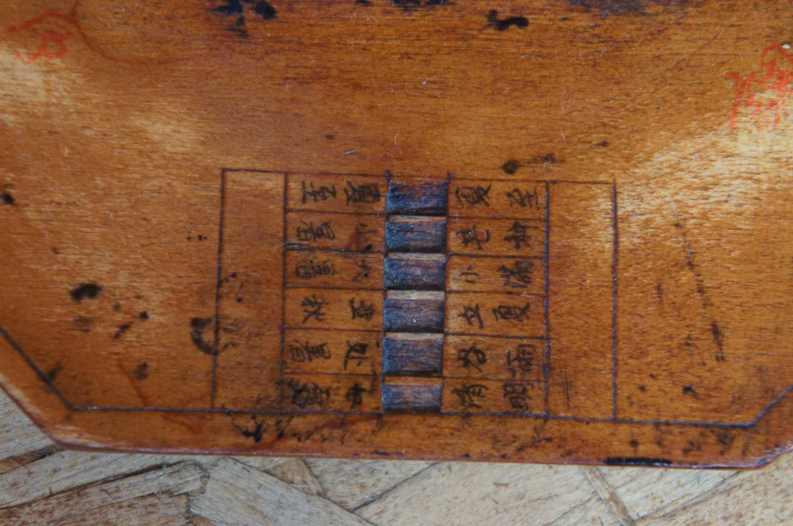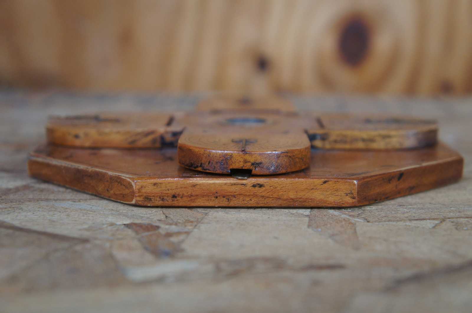 Antique Chinese carved fruitwood compass and four folding sundials.
