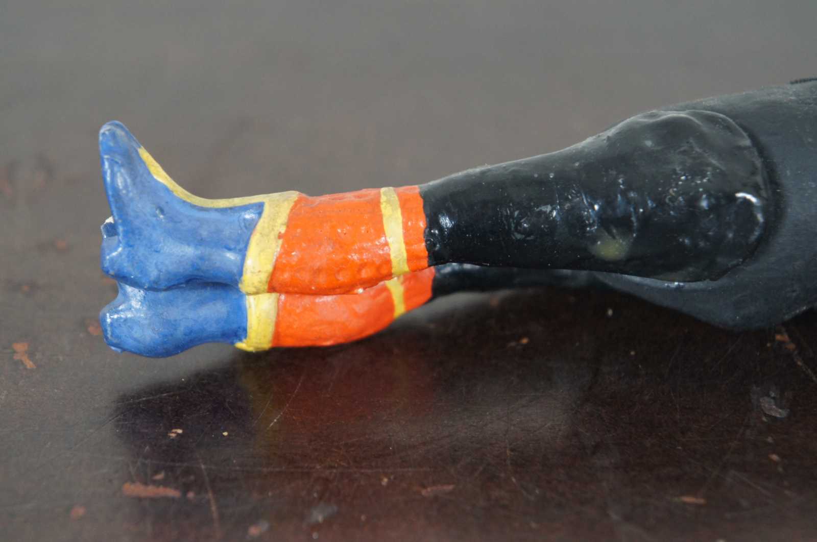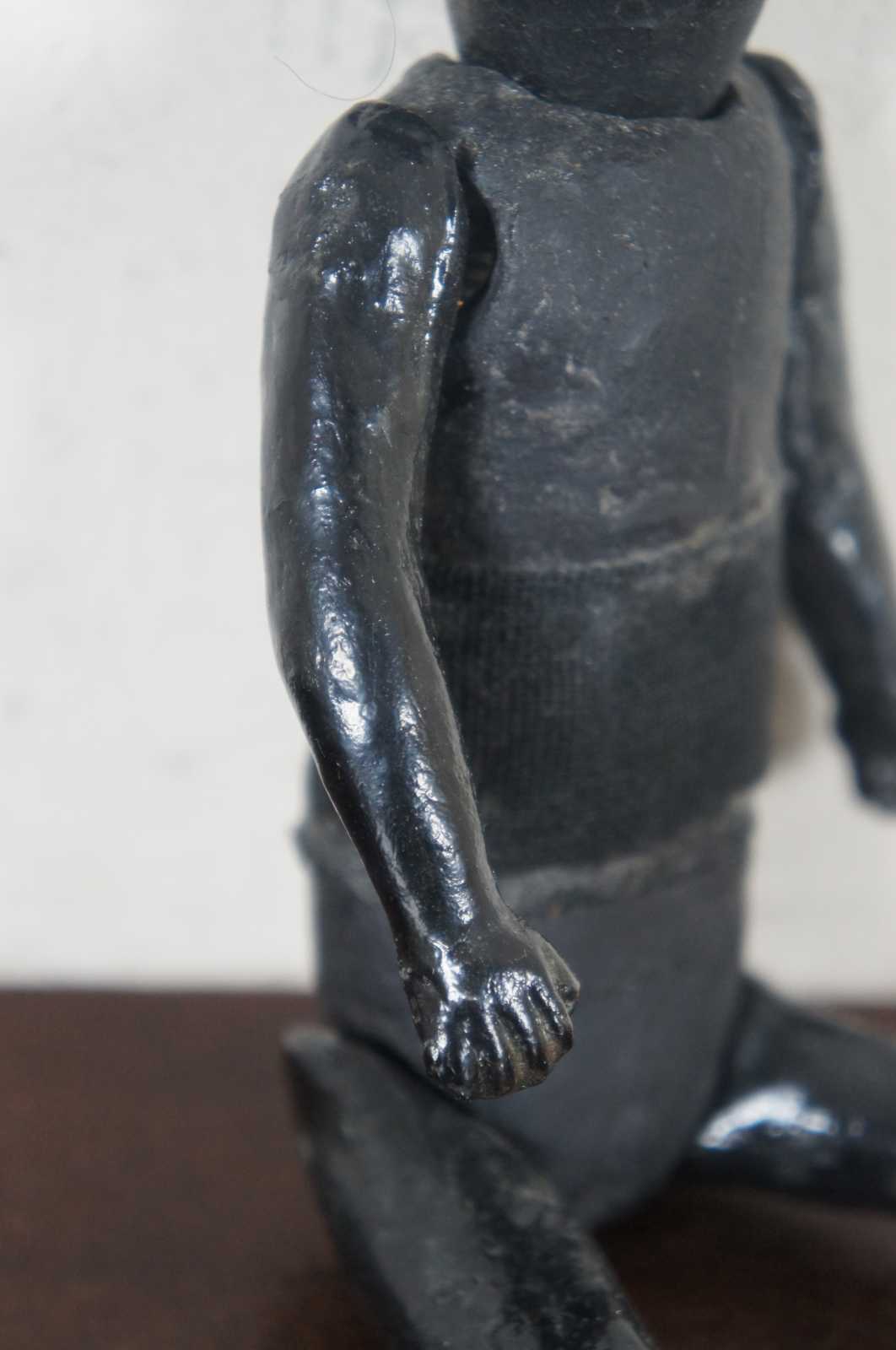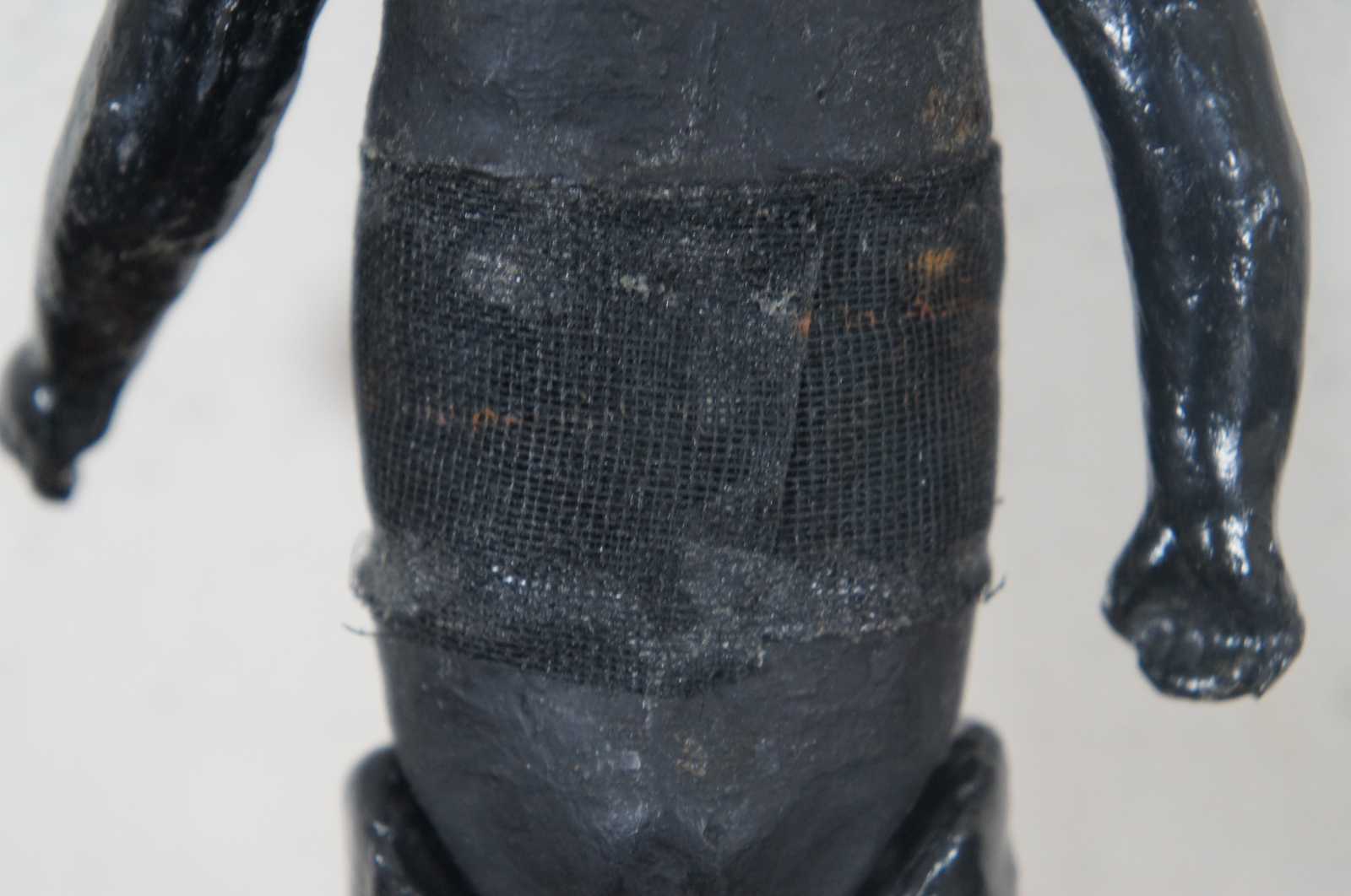 Antique 19th century black doll with full bisque body, jointed limbs and blue and red painted boots.
