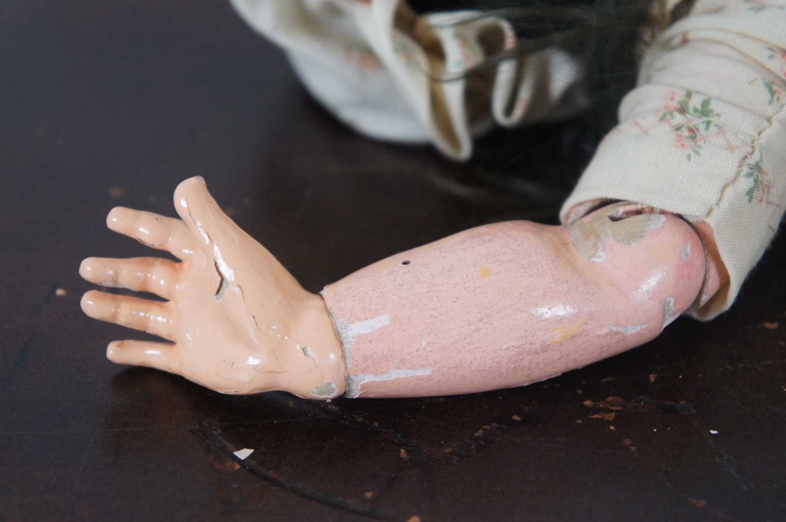 Good Overall - Staining/chipping to legs; yellowing to clothes; couple of small holes in dress/bonnet; some chipping to hands; see pictures