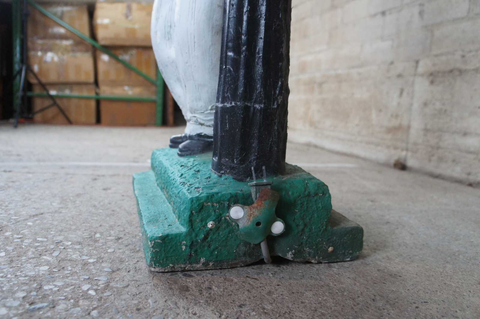 Mid 20th century Charlie Chaplin electrified concrete post light. Great for indoor or outdoor use. Features Charlie dressed in white and black with red scarf and top hat. He is leaning against a street light holding a bottle marked Tea. Wiring and lighting are all intact.