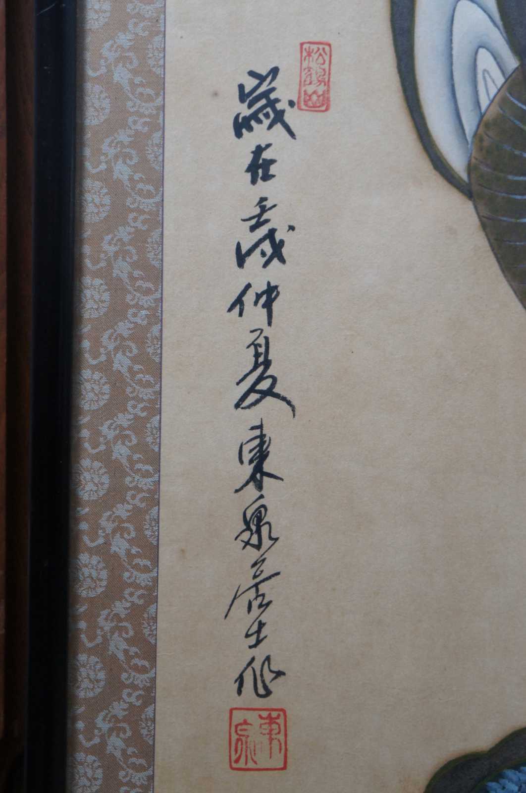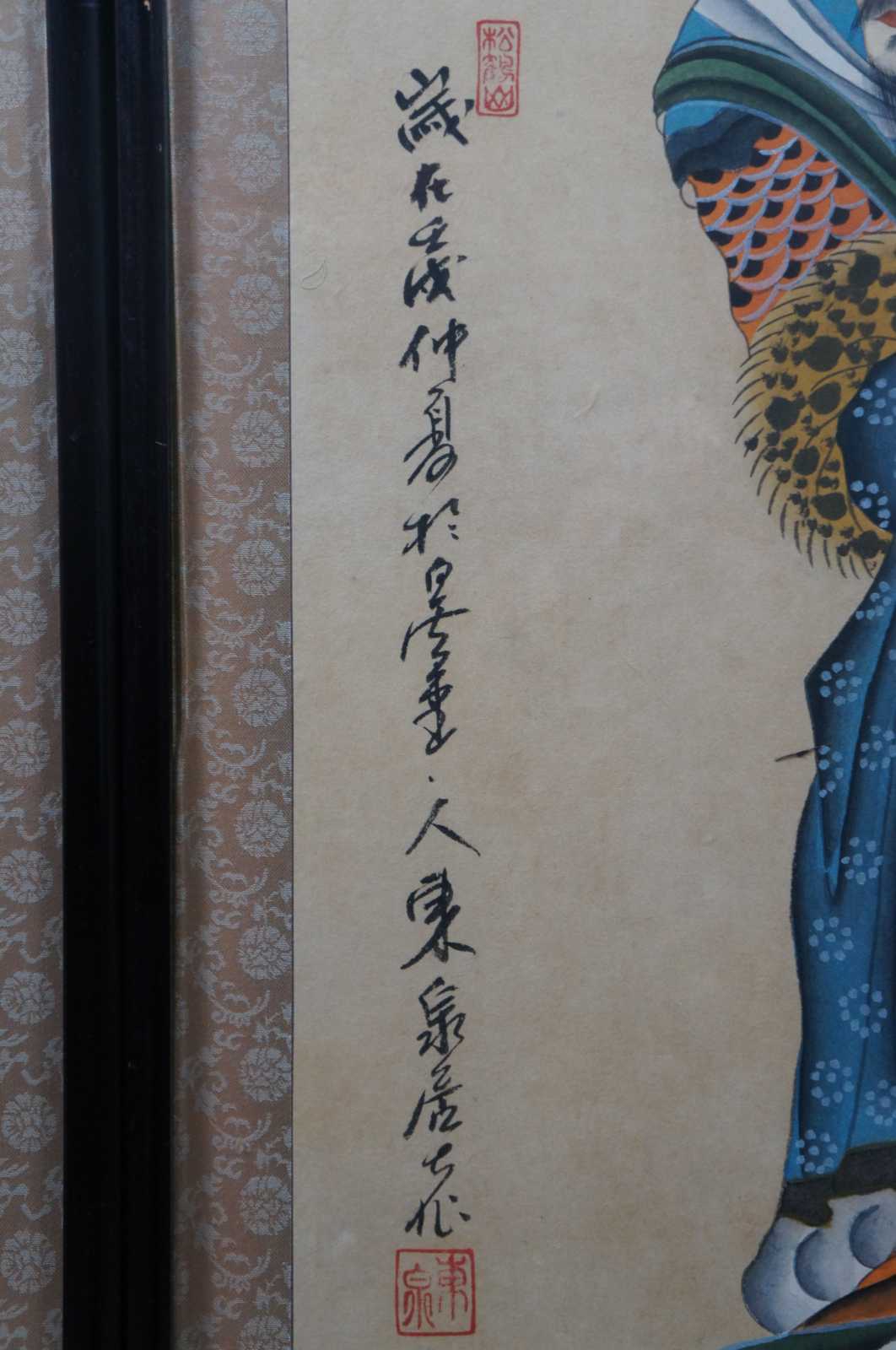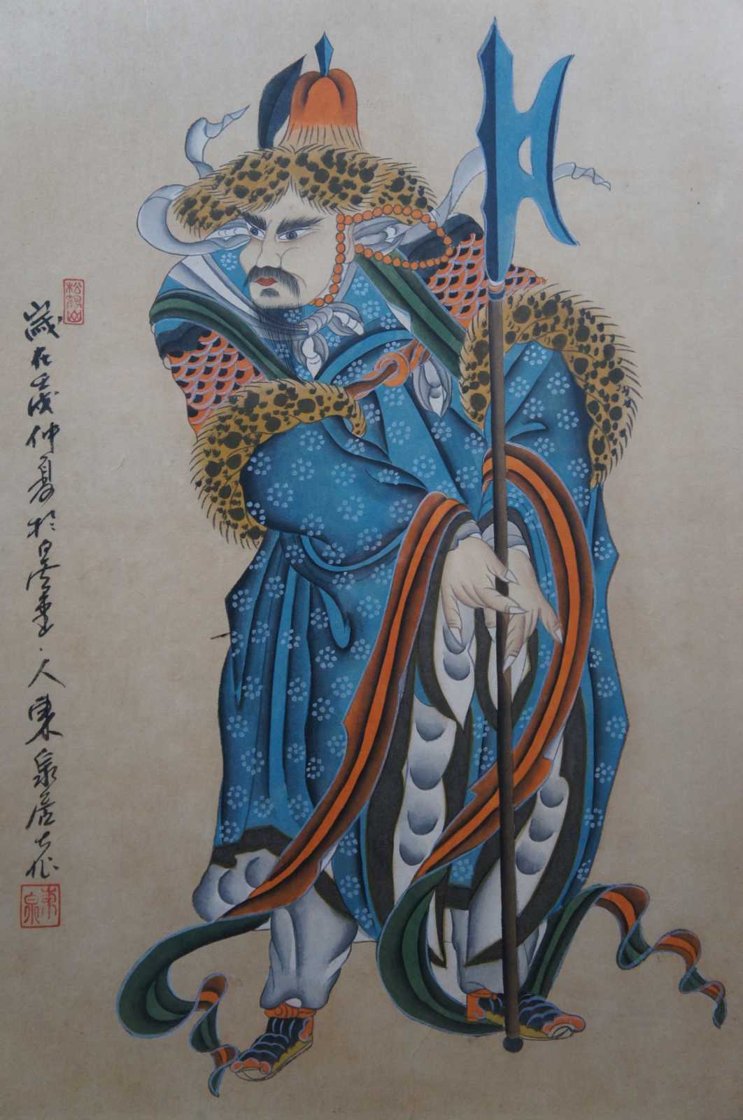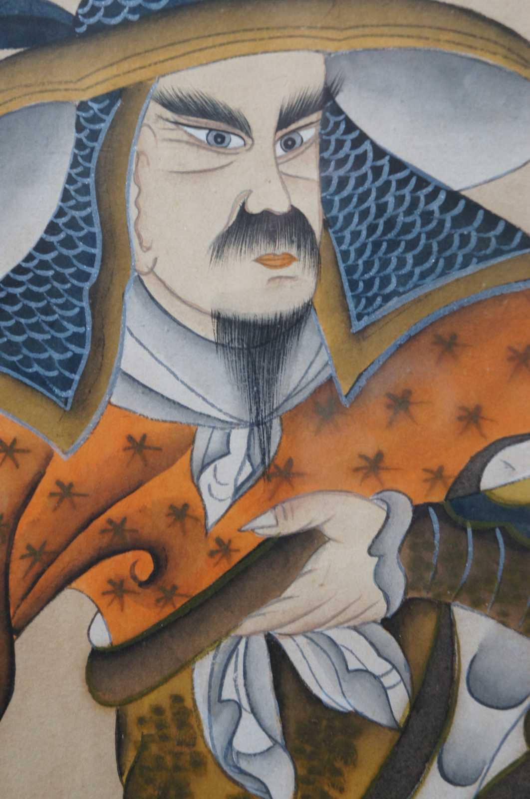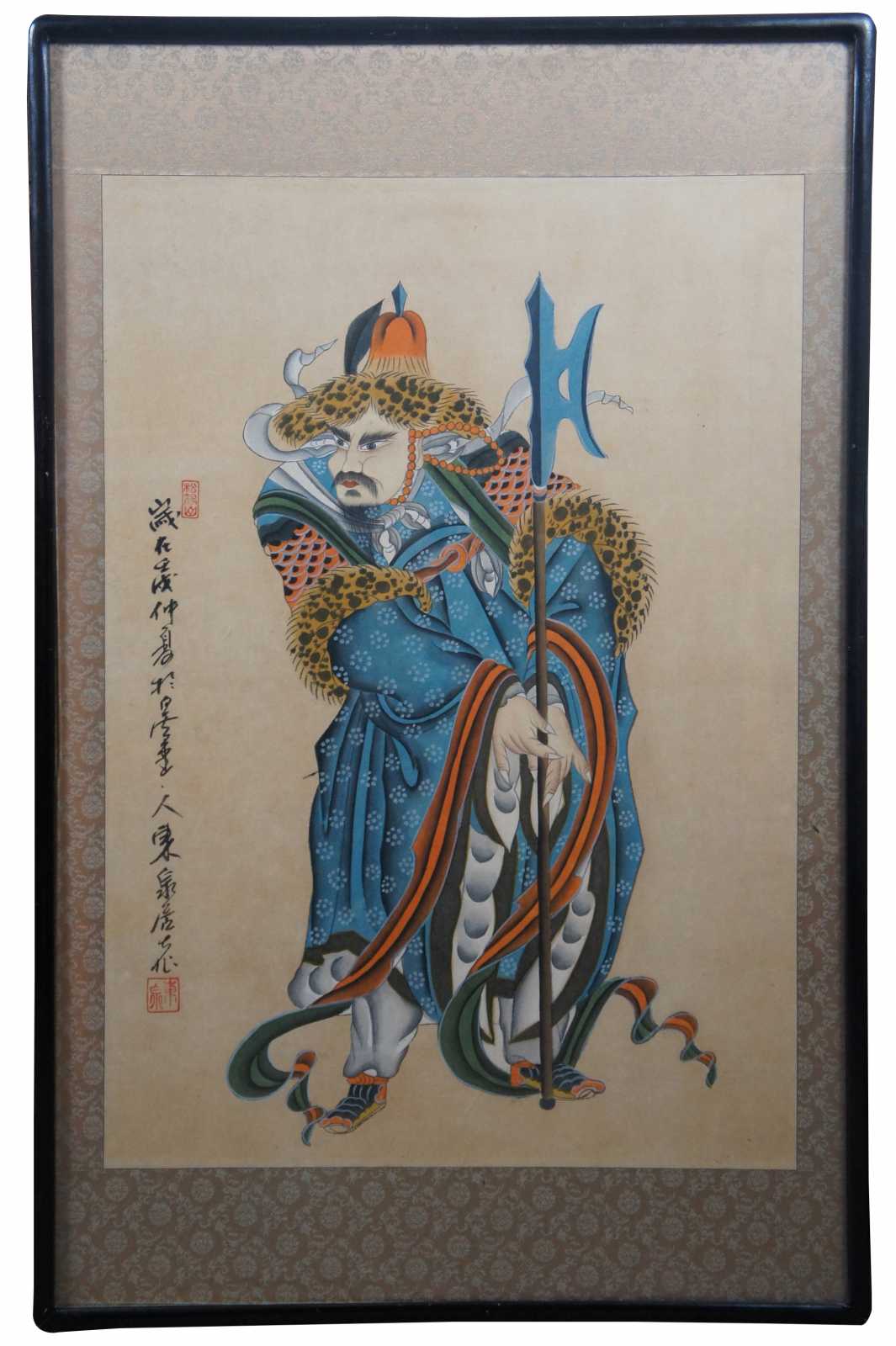 Pair of antique woodblock prints showing warriors in Mongolian armor/clothing. Signed along the left side.
