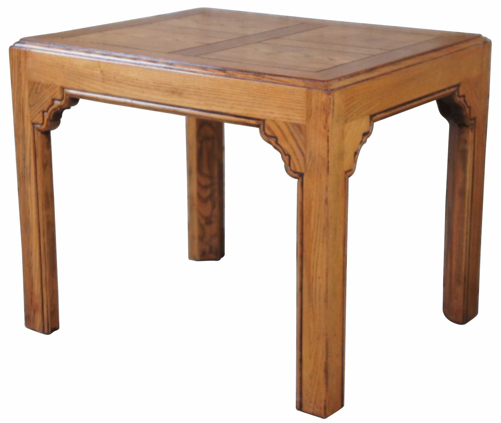 Henredon Four Centuries side table, circa 1975. Made from solid oak with a rectangular form and panelled top over straight legs.