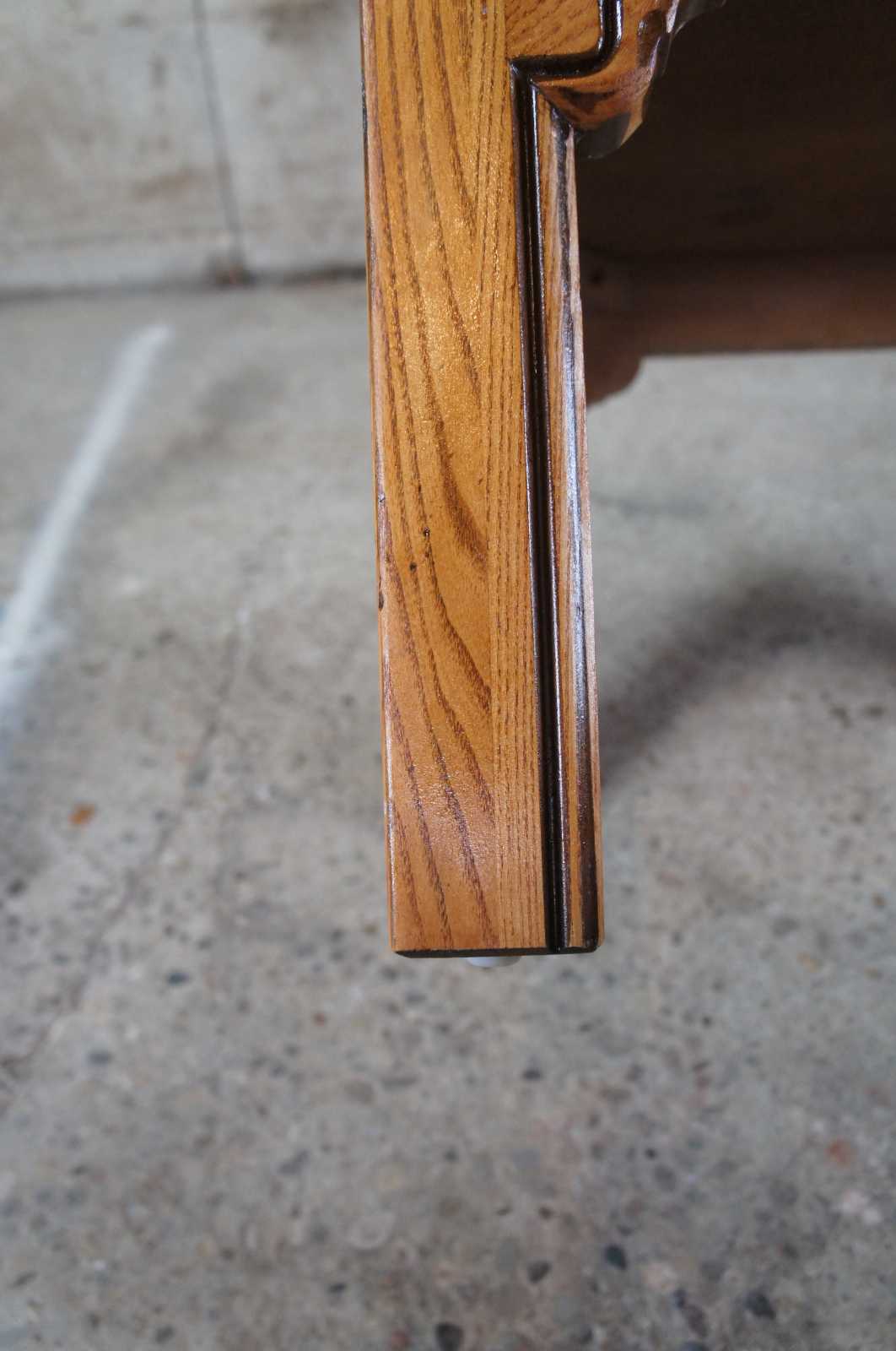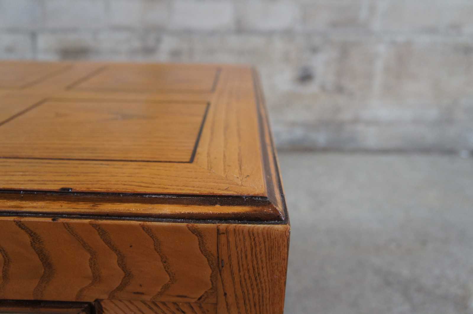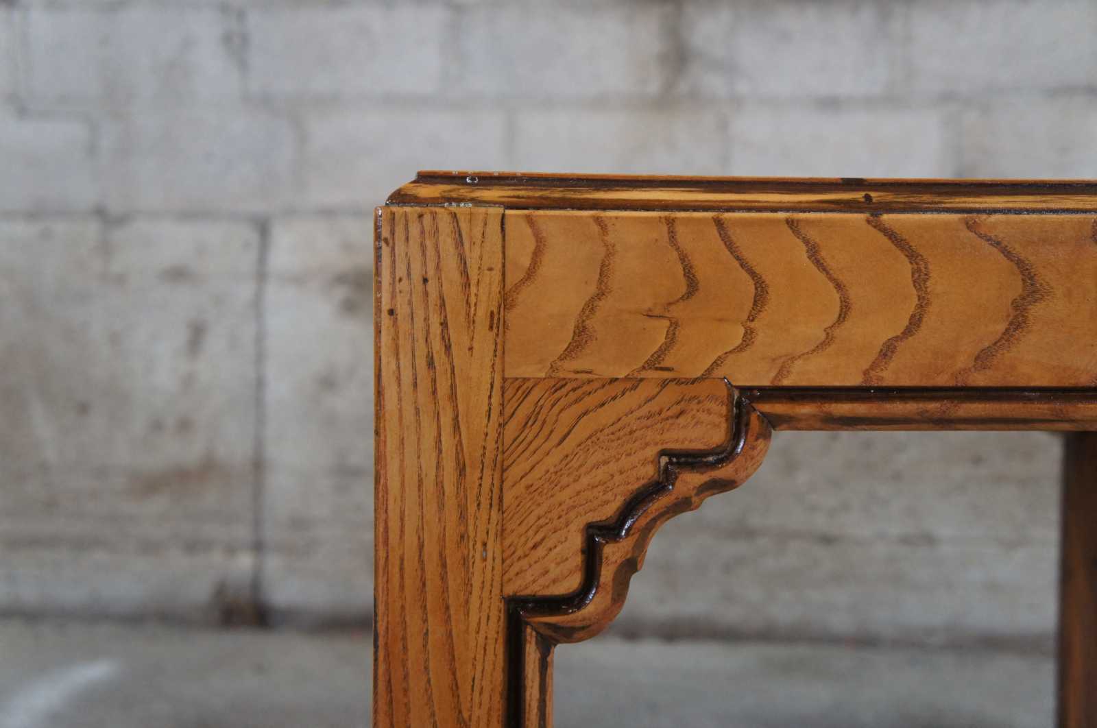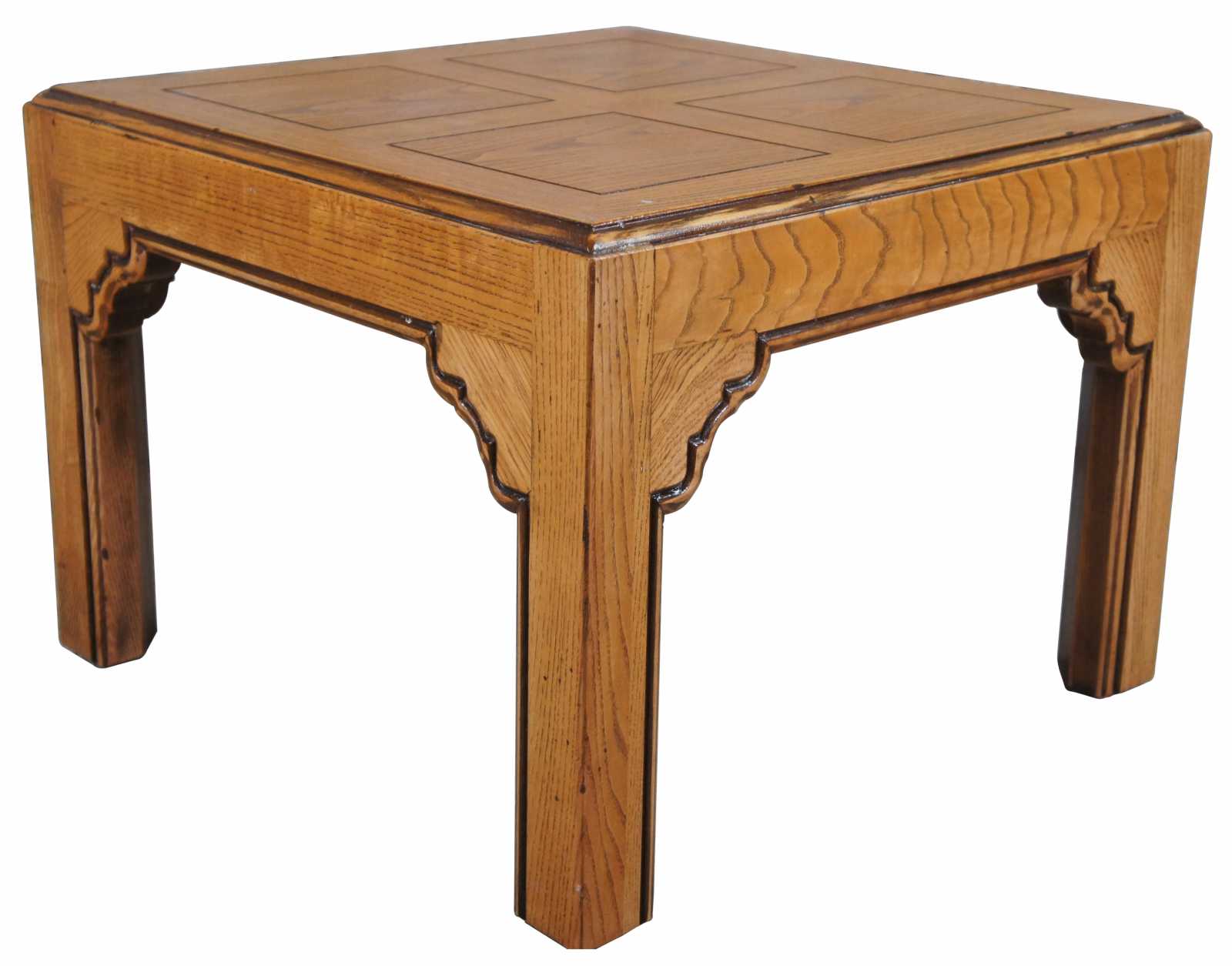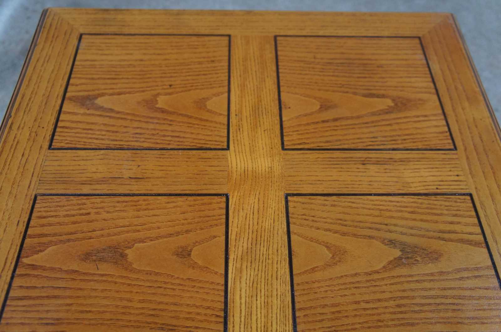 2 Henredon Four Centuries side tables, circa 1970s. Made from solid oak with a square form and panelled top over straight legs.